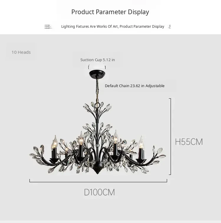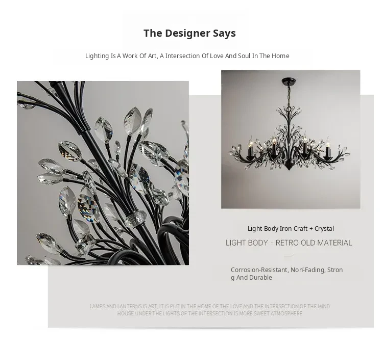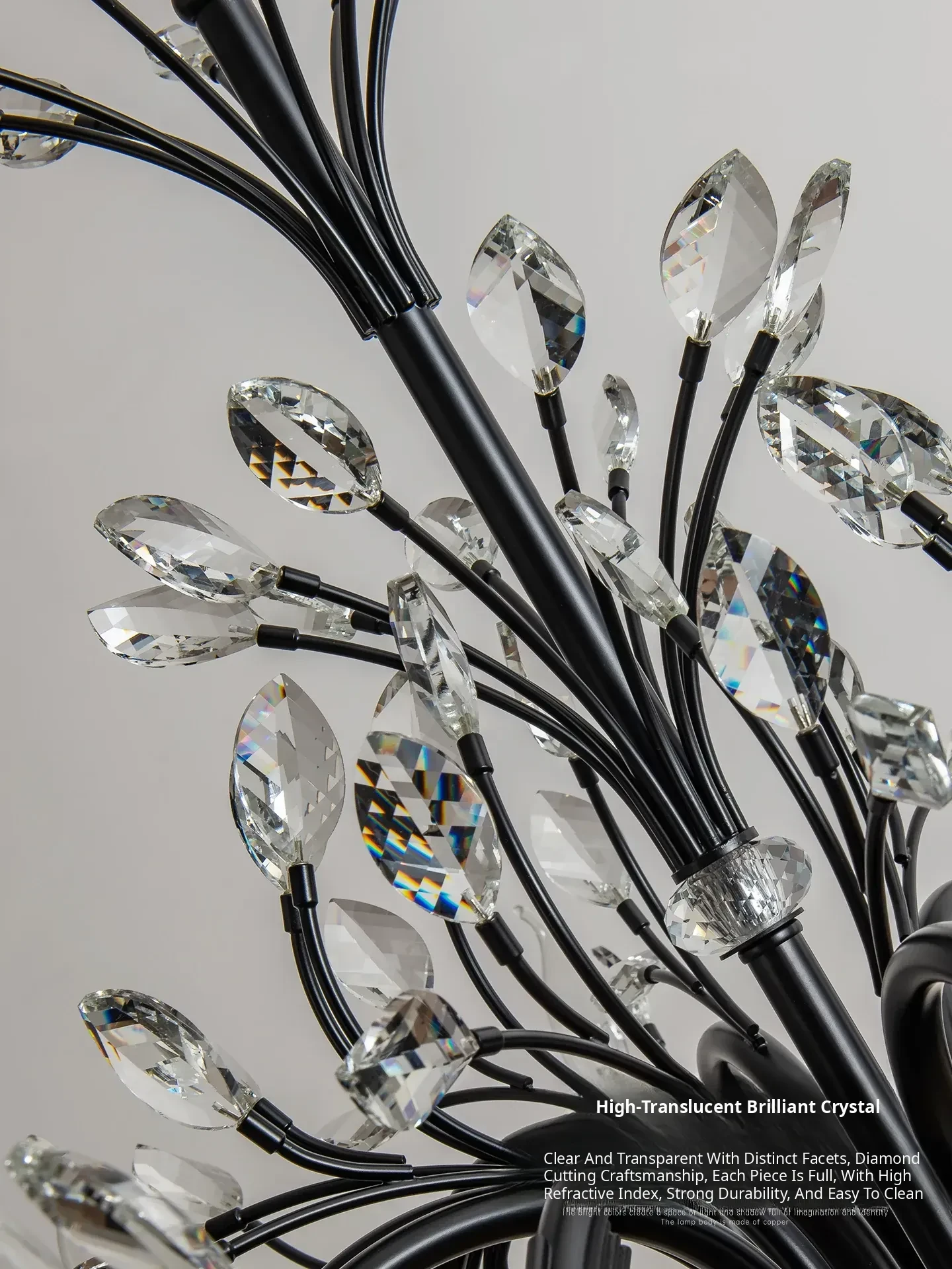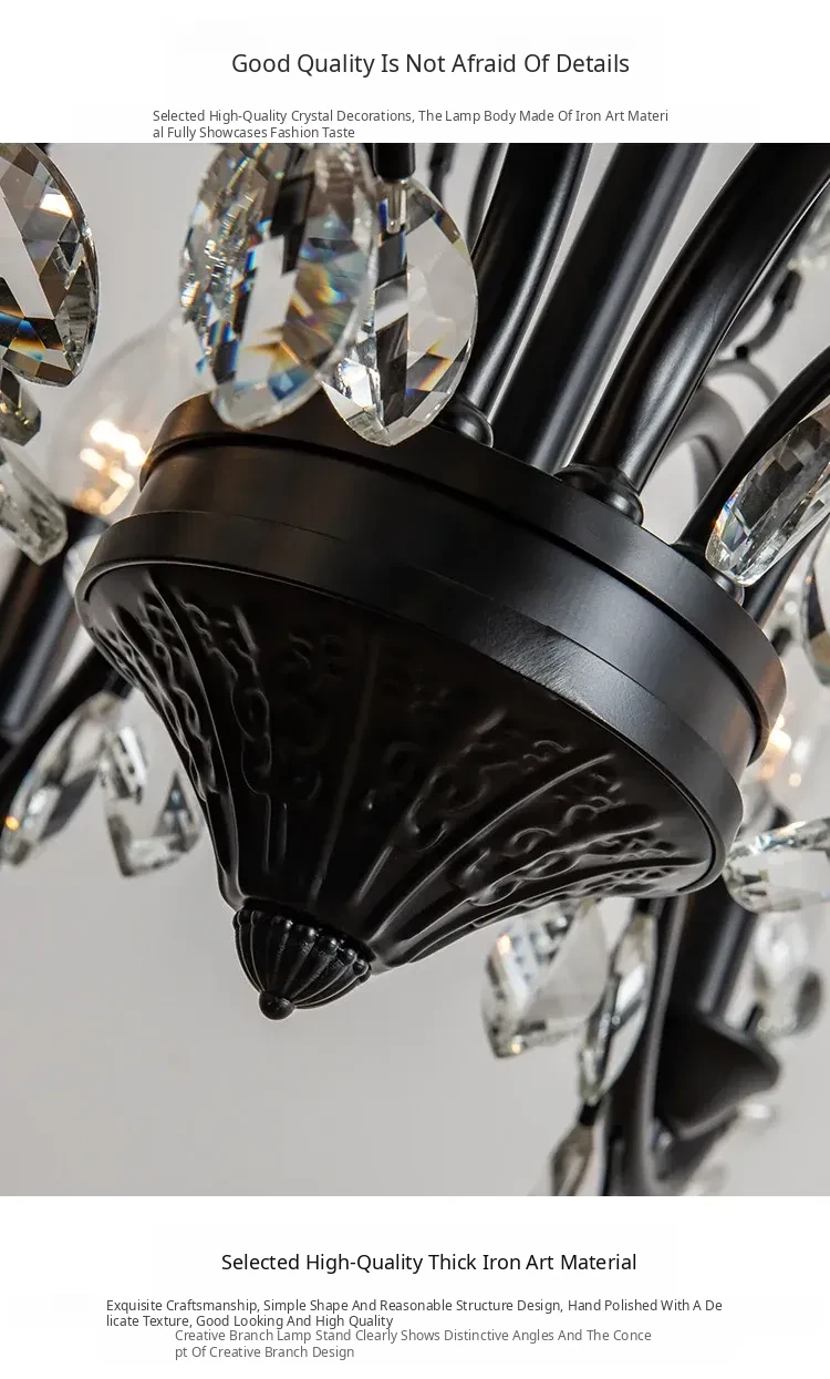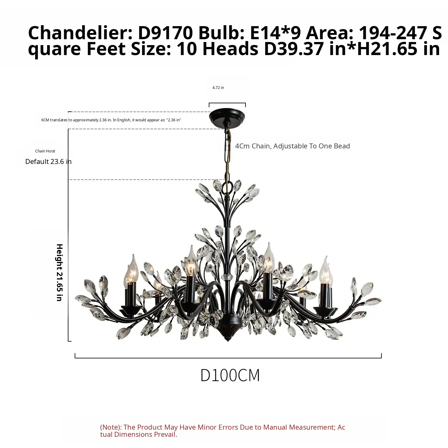 French Style Luxurious Crystal Chandelier - Elegant Black Minimalist Lighting for Living Room, Bedroom, and Dining Room Ambiance