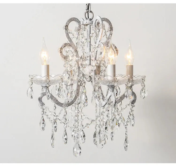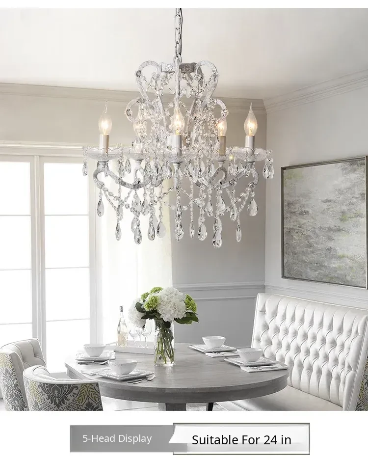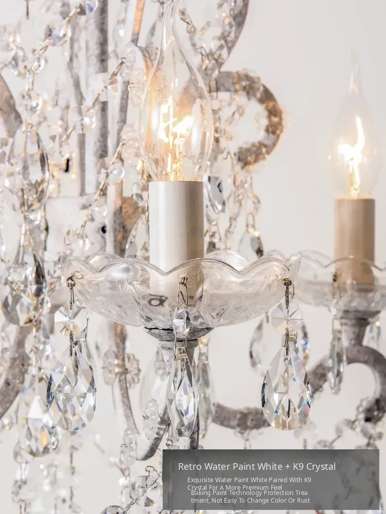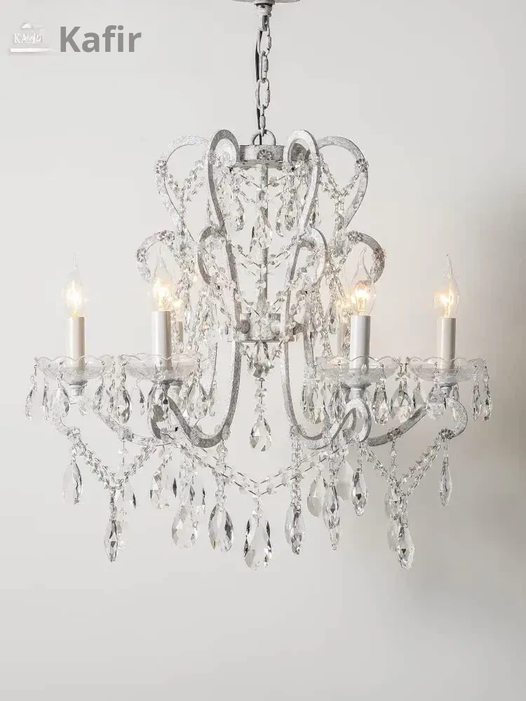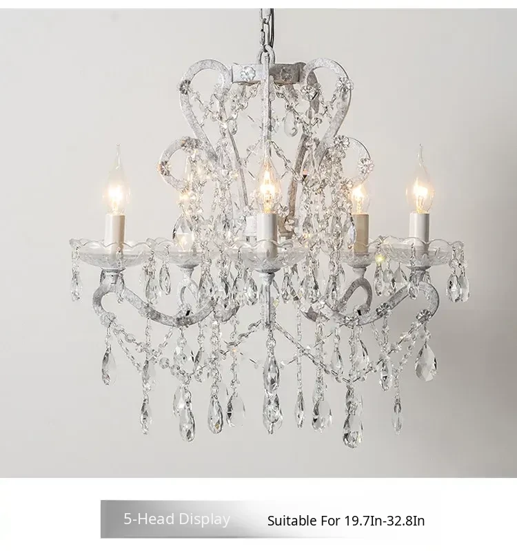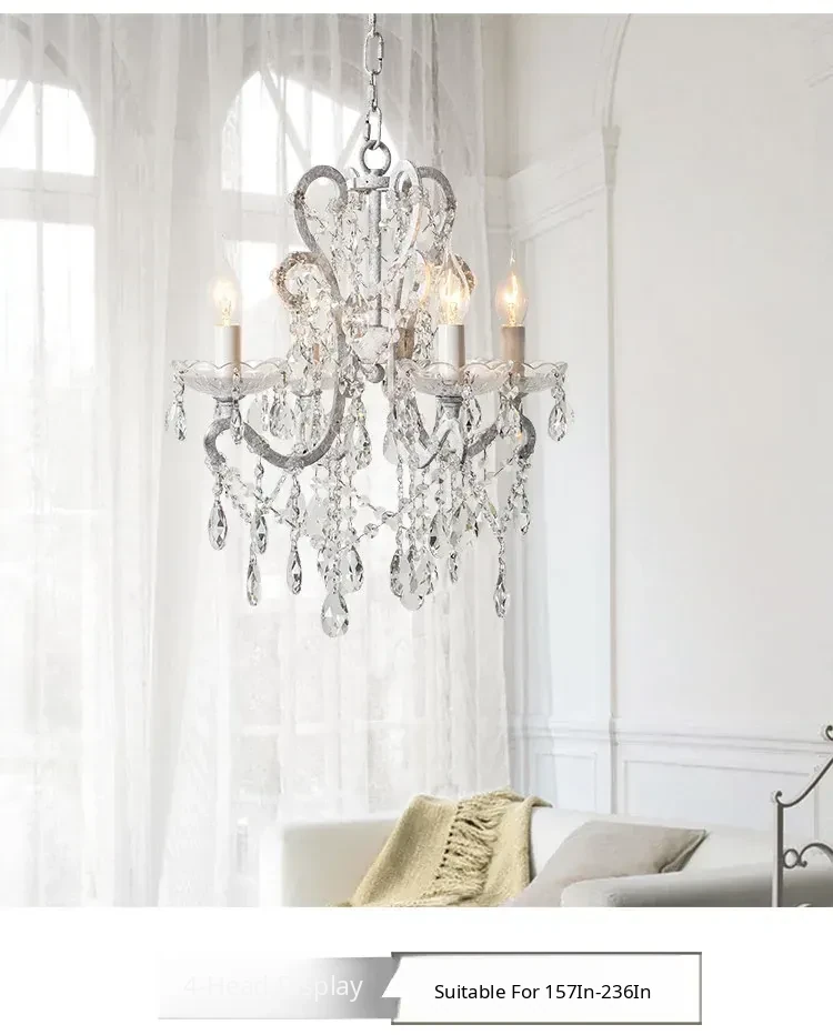 French Vintage Chandelier - American Retro Crystal Pendant Light in Creamy White for a Cozy Atmosphere in Bedrooms, Studies, and Dining Rooms