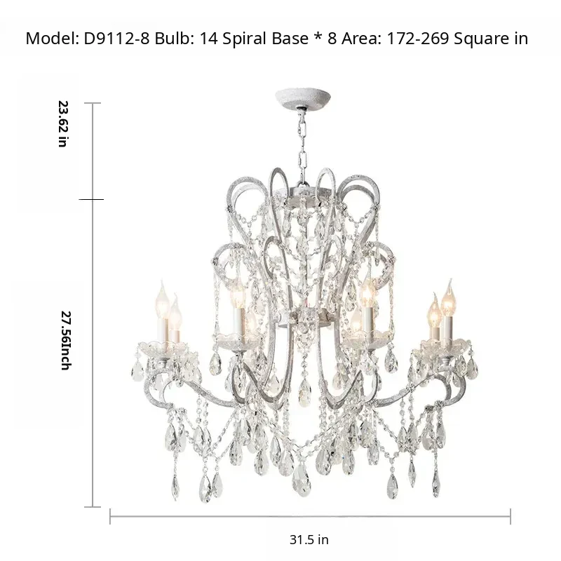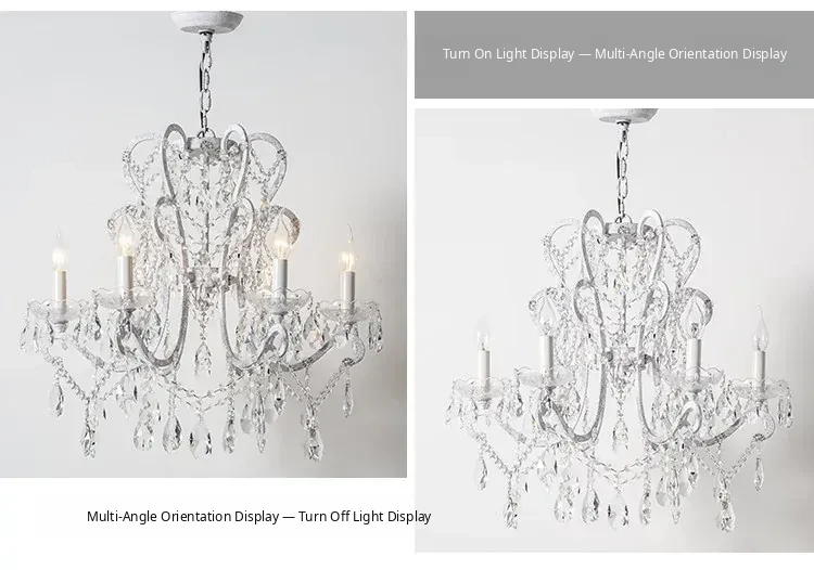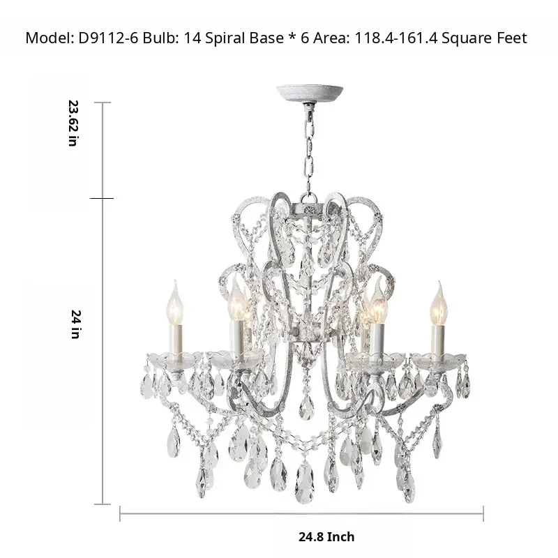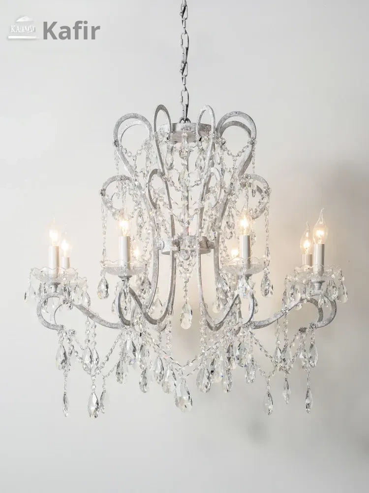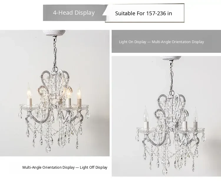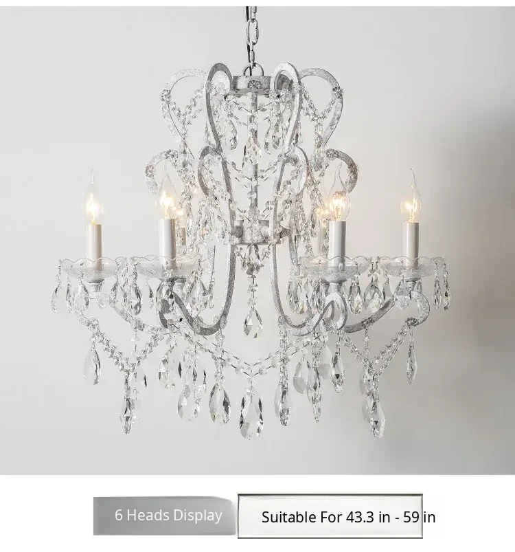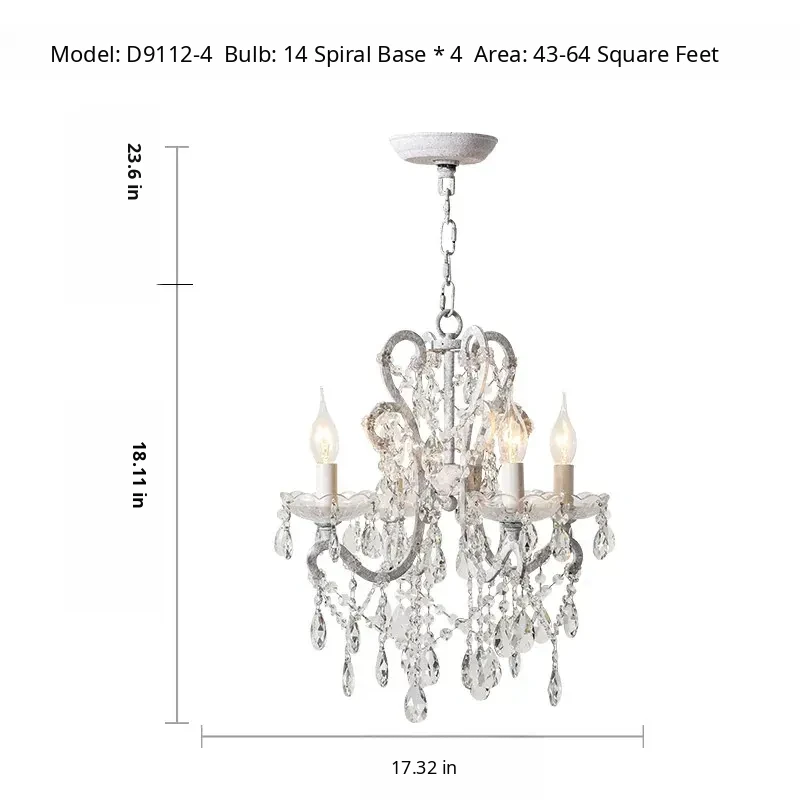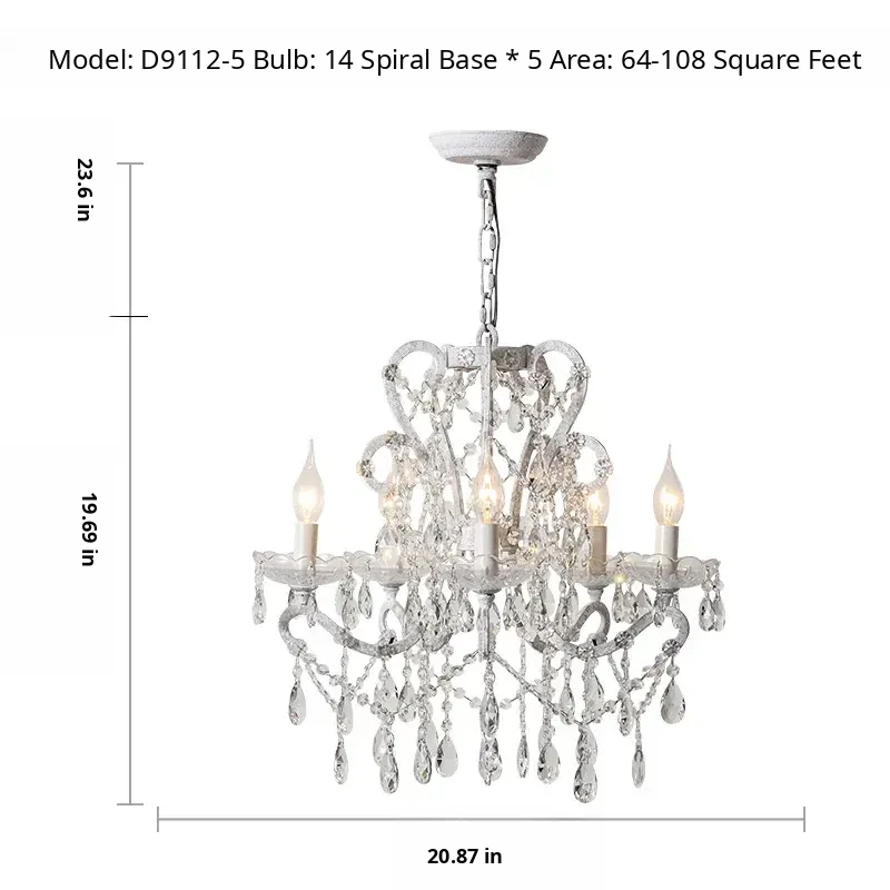 French Vintage Chandelier - American Retro Crystal Pendant Light in Creamy White for a Cozy Atmosphere in Bedrooms, Studies, and Dining Rooms