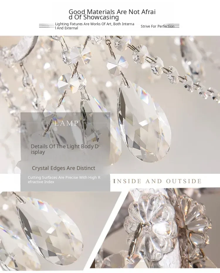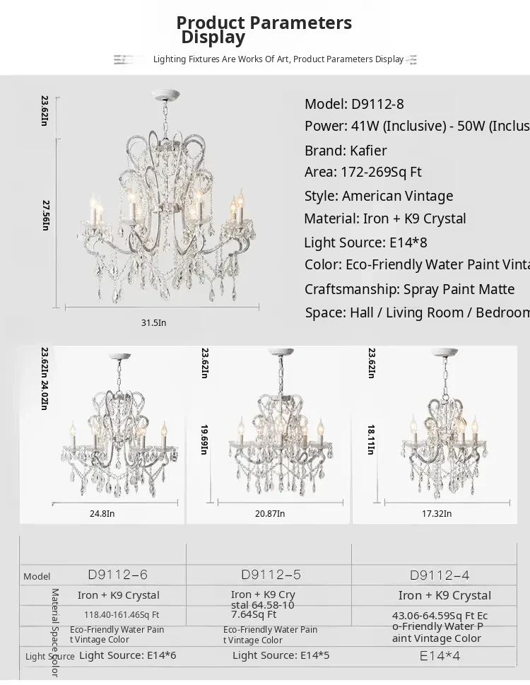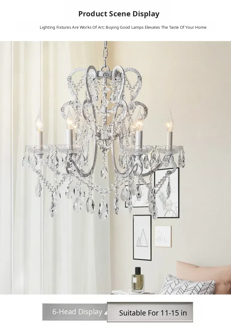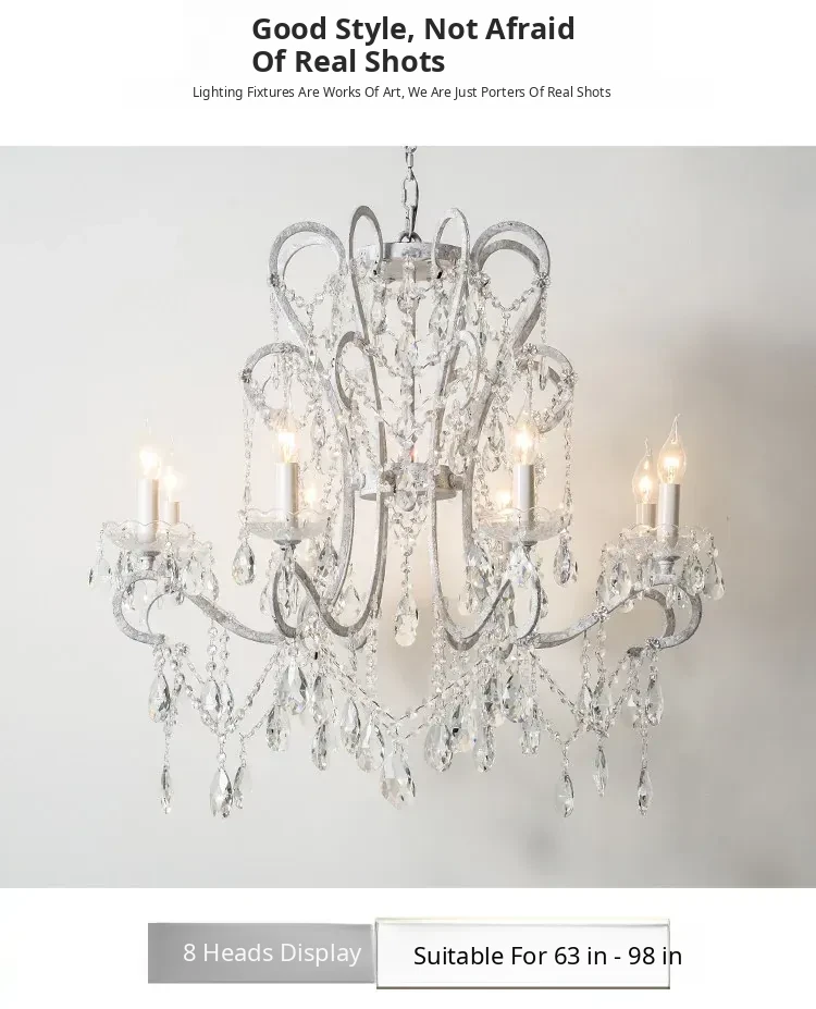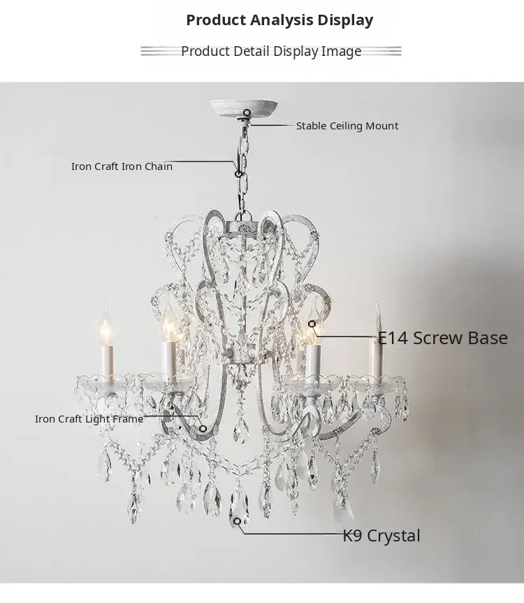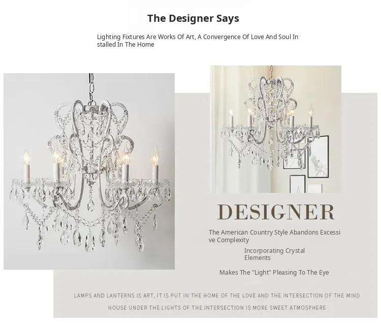 French Vintage Chandelier - American Retro Crystal Pendant Light in Creamy White for a Cozy Atmosphere in Bedrooms, Studies, and Dining Rooms