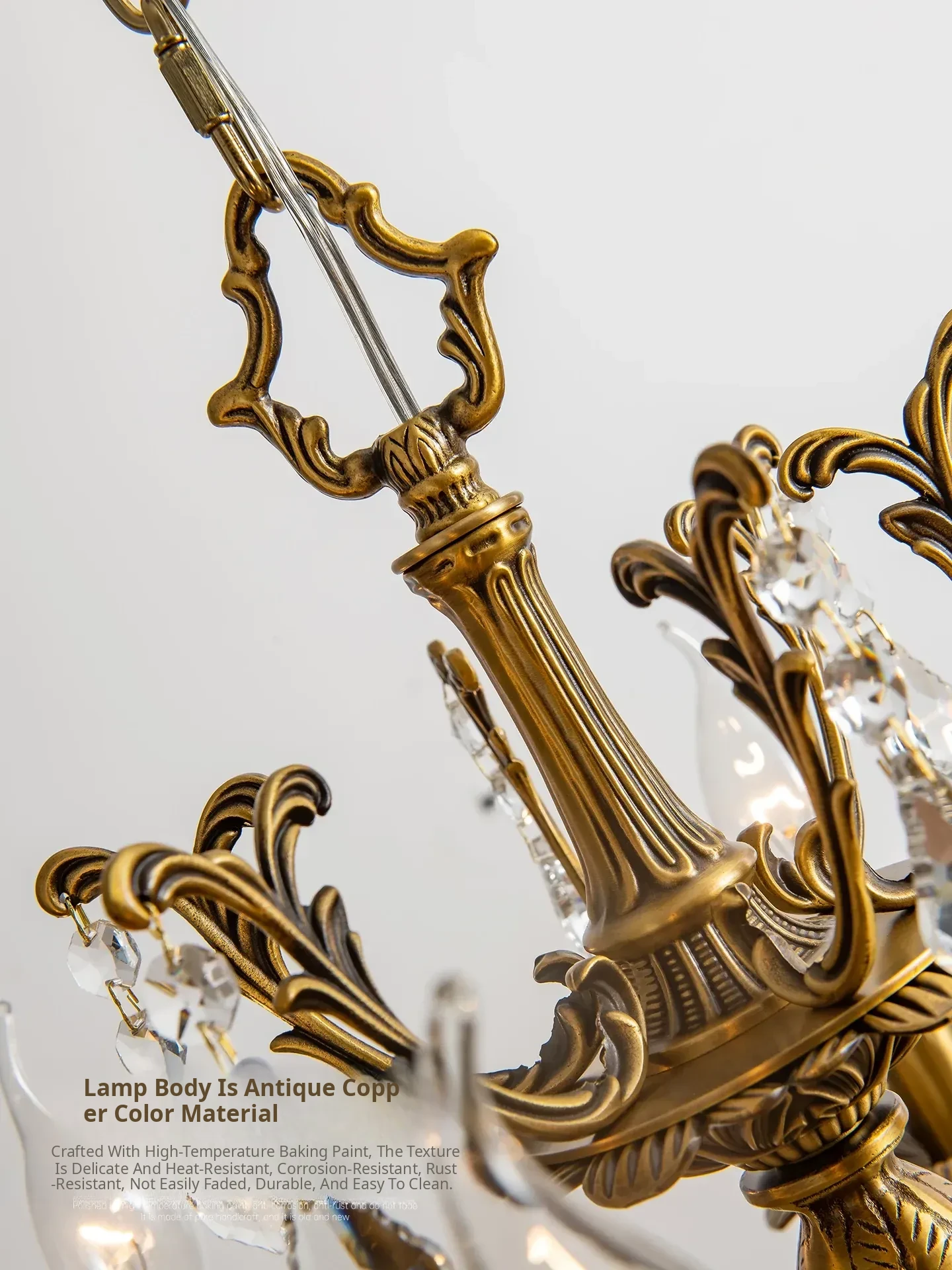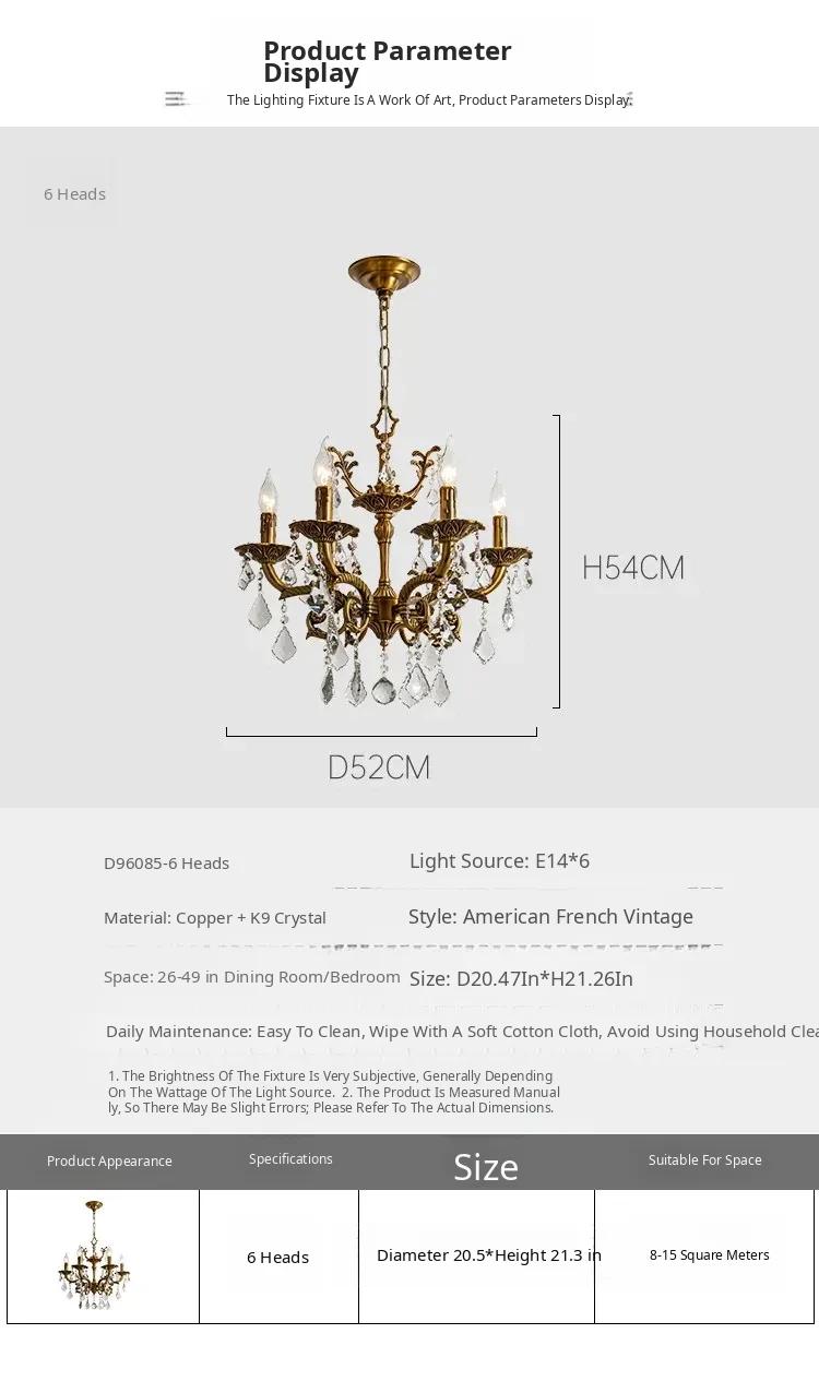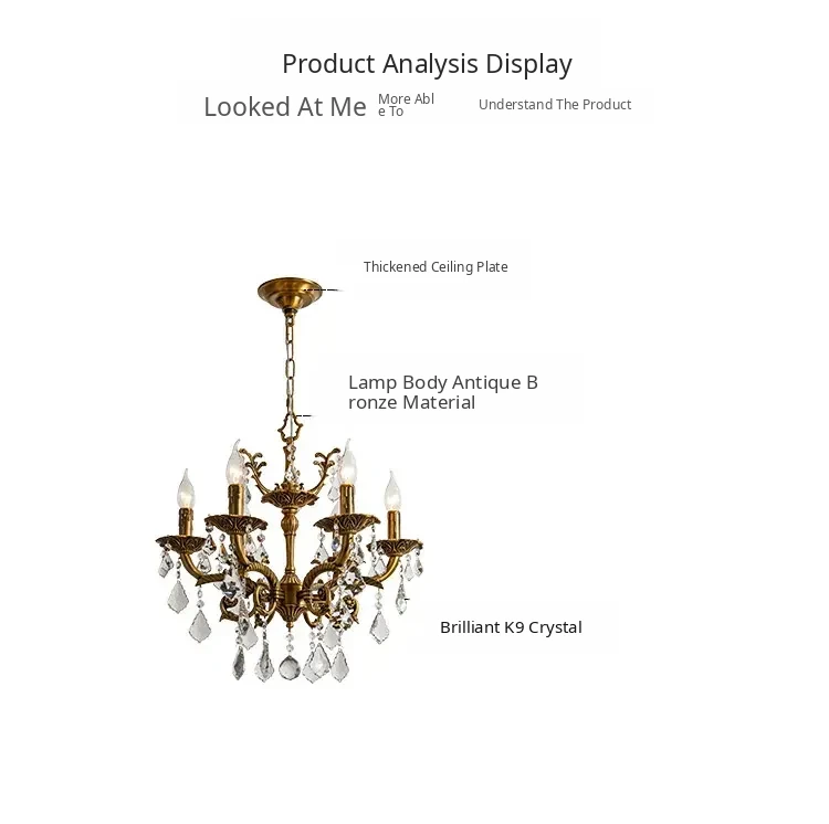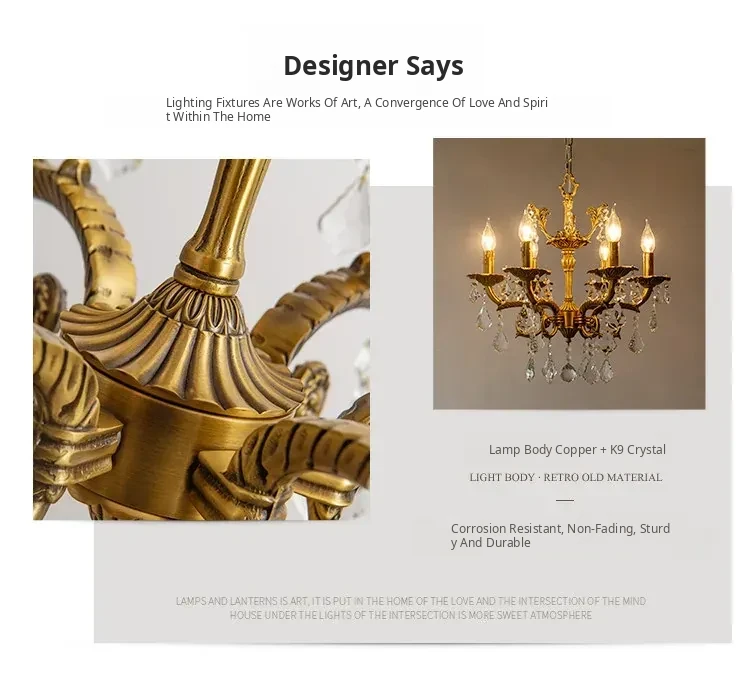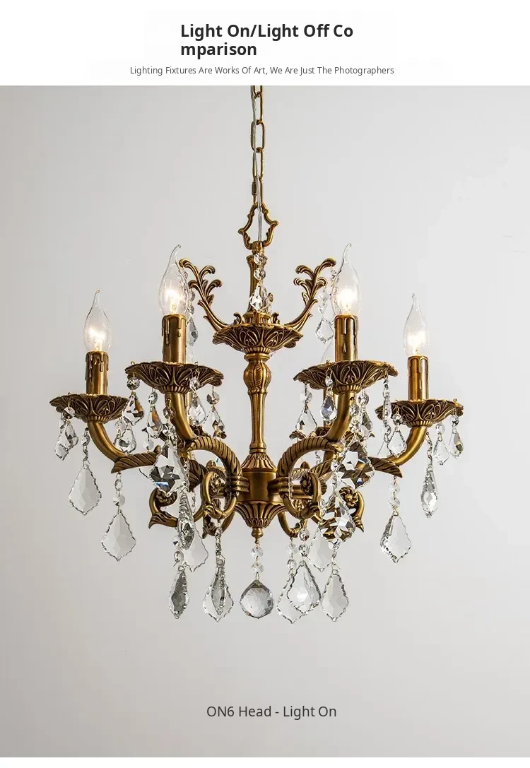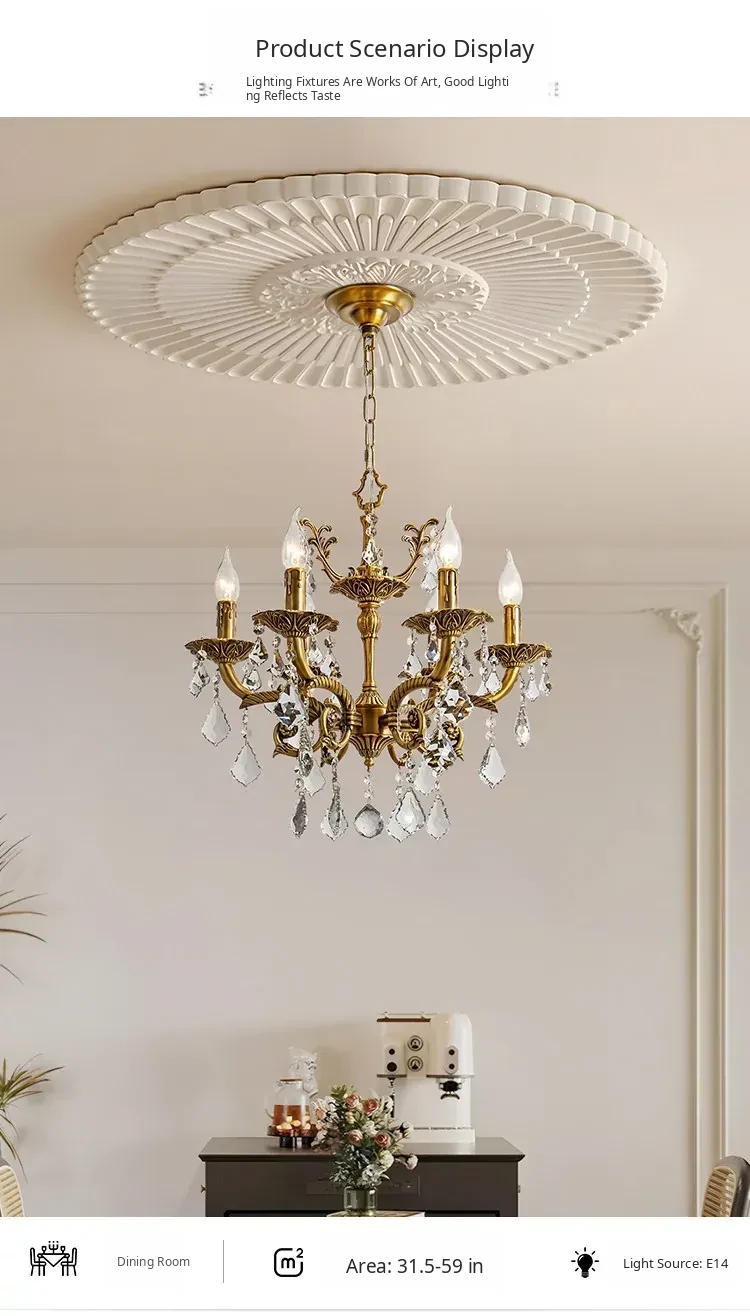 French Vintage Chandelier - Elegant Bedroom and Study Lighting, American Retro Crystal Pendant Light, Full Copper Candle Fixtures for Dining Room - Perfect Blend of Classic Charm and Modern Style!