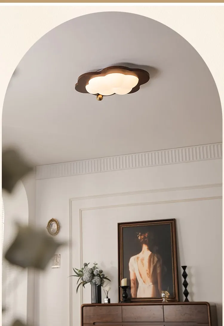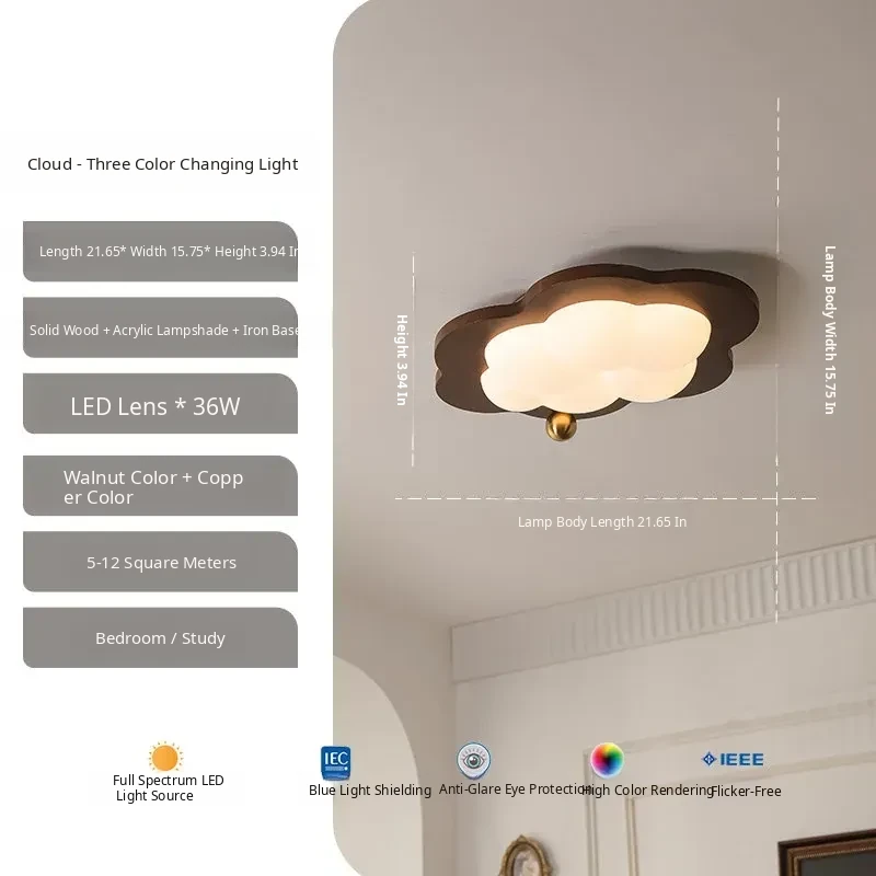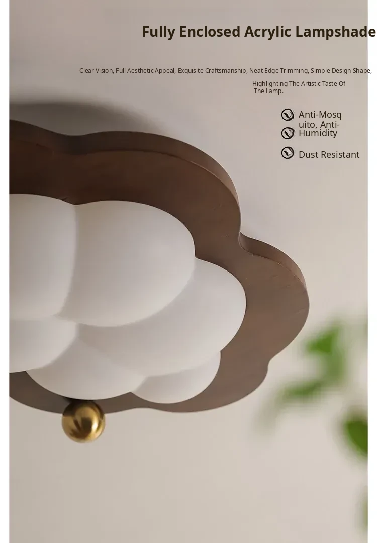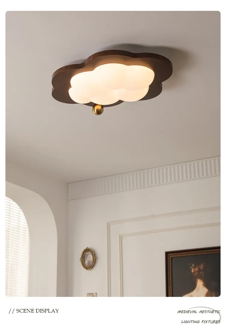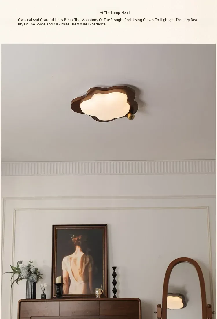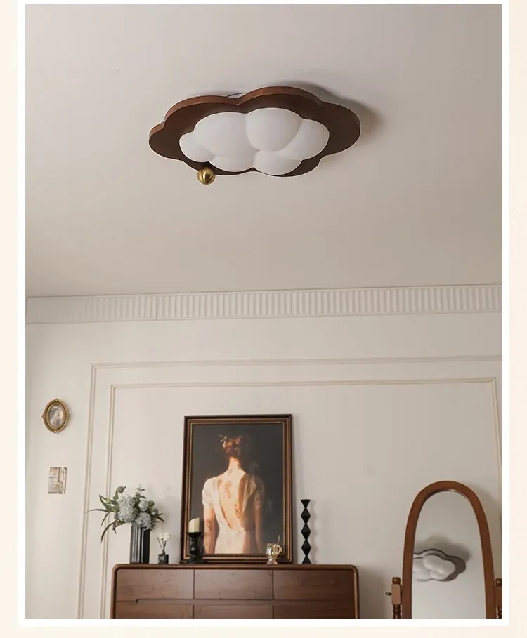 French Vintage Creative Cloud Children's Room Light - Retro American Walnut Eye-Caring LED Ceiling Lamp for Bedroom