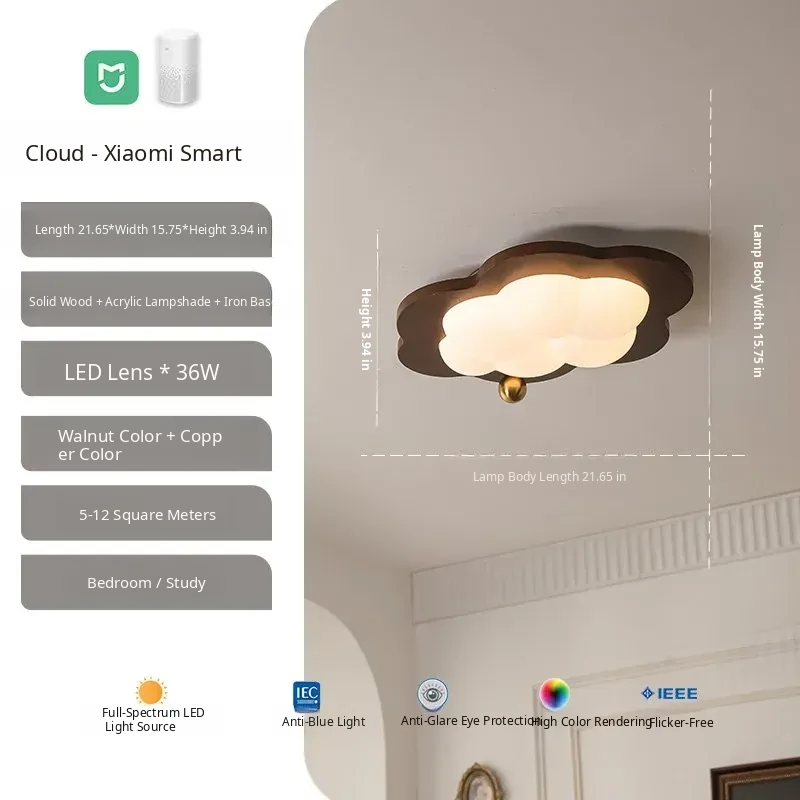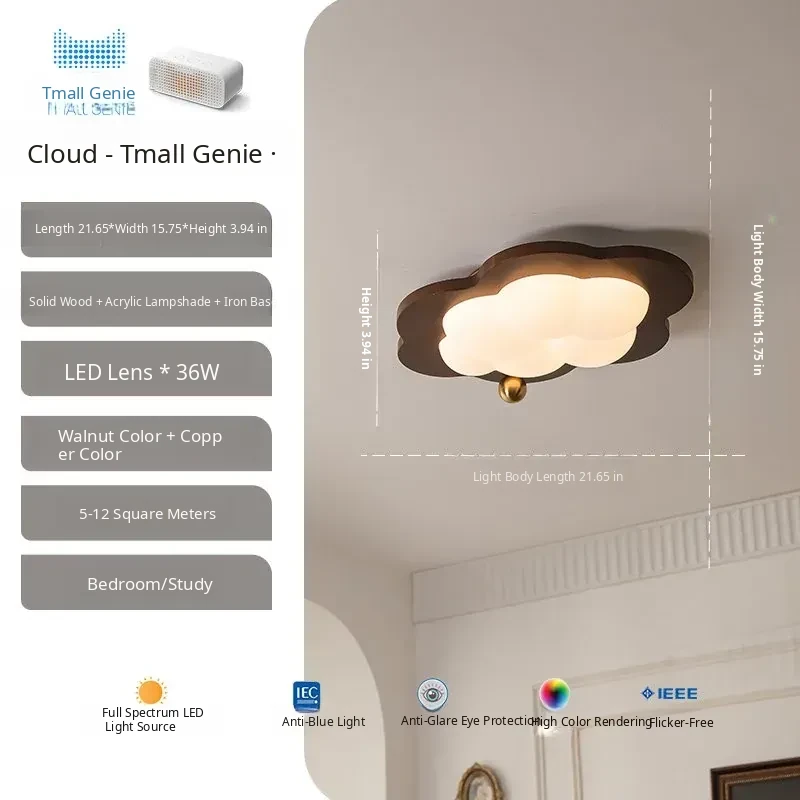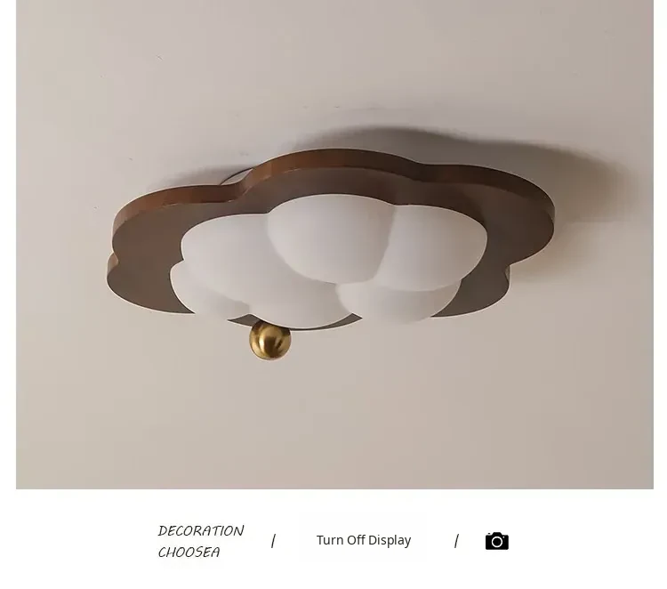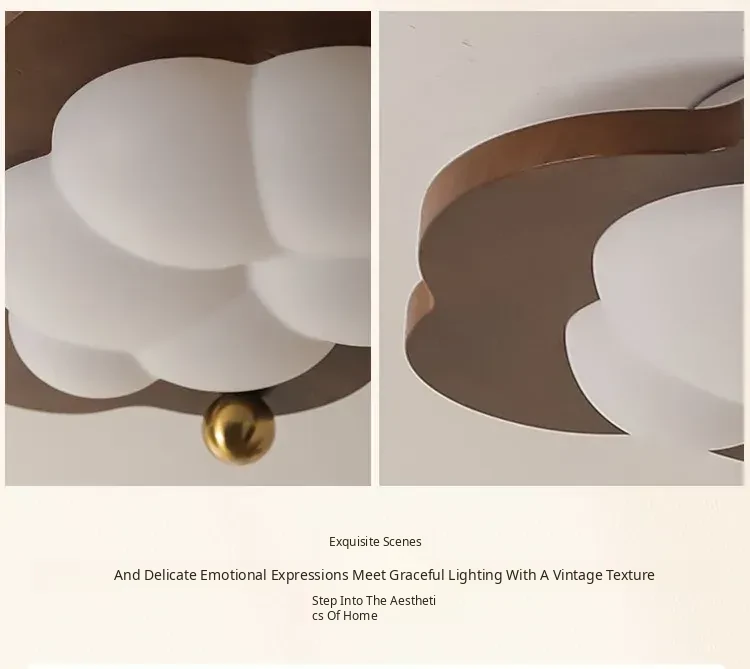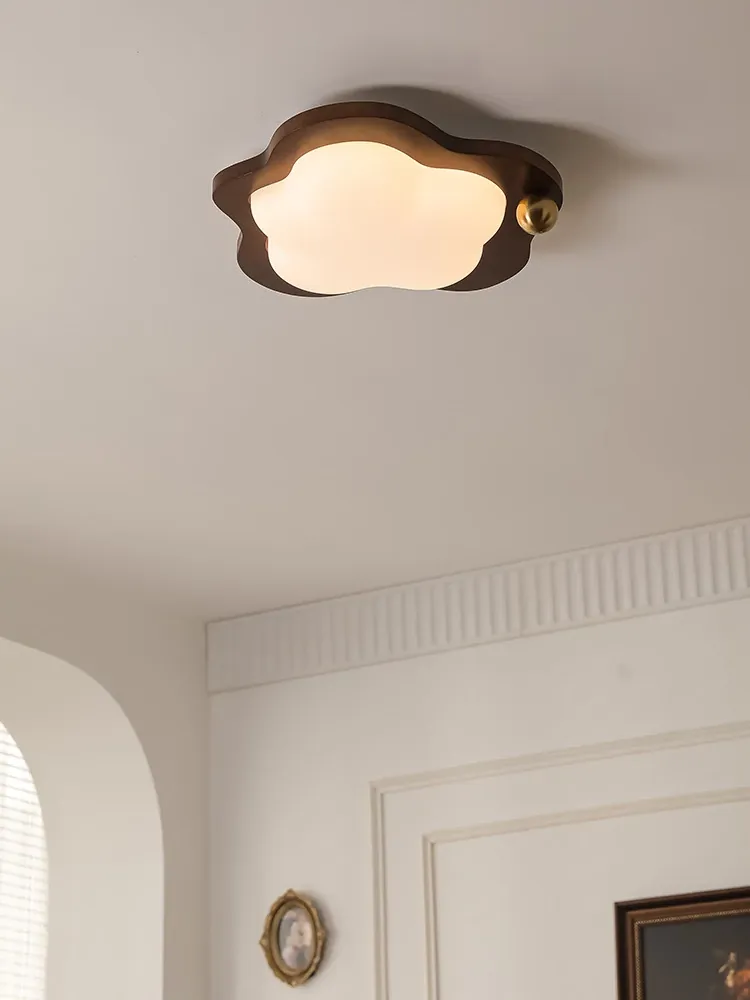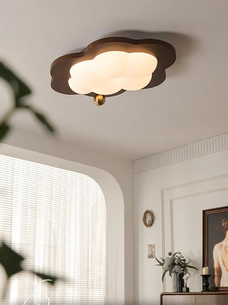 French Vintage Creative Cloud Children's Room Light - Retro American Walnut Eye-Caring LED Ceiling Lamp for Bedroom