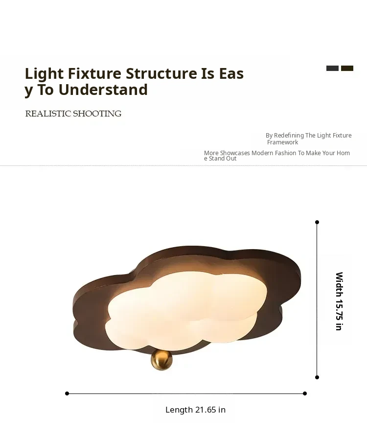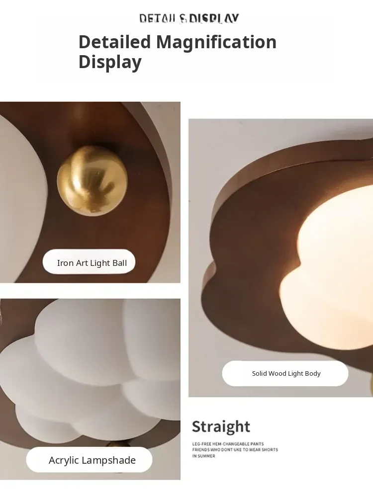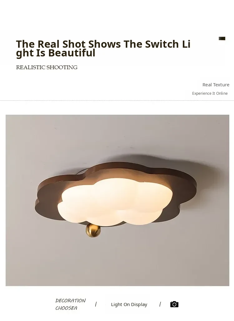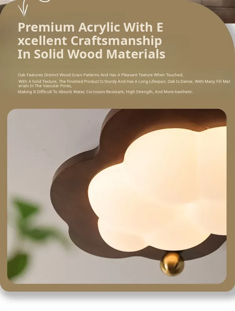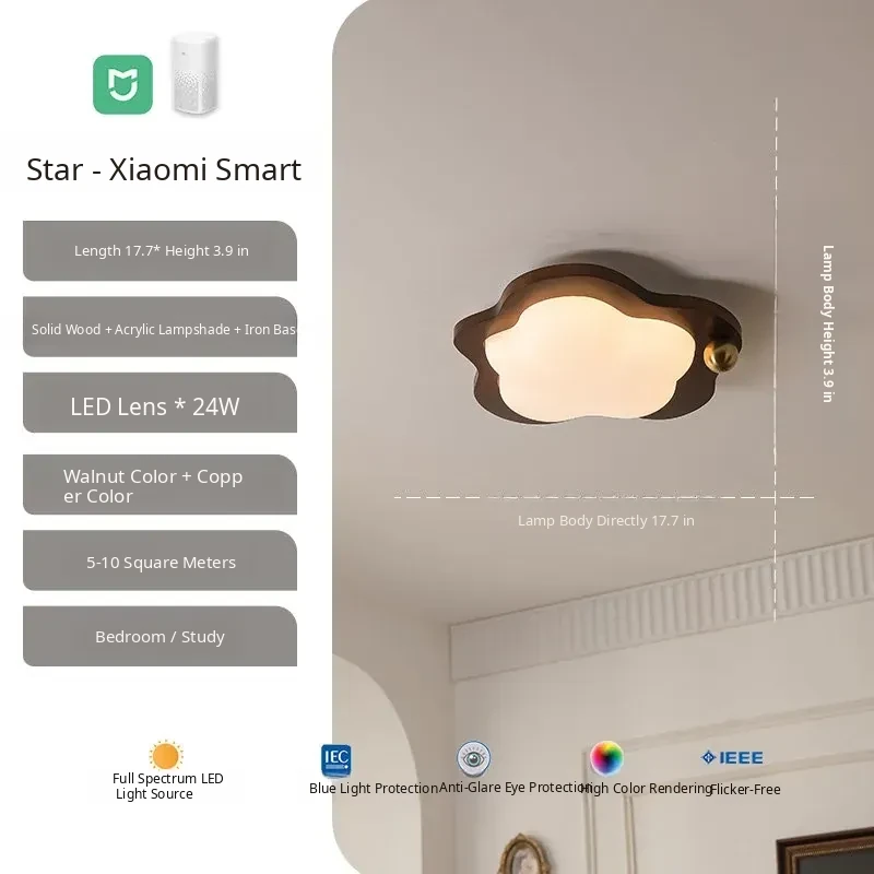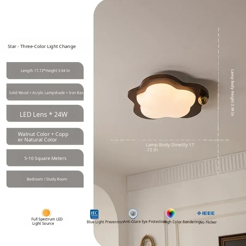 French Vintage Creative Cloud Children's Room Light - Retro American Walnut Eye-Caring LED Ceiling Lamp for Bedroom