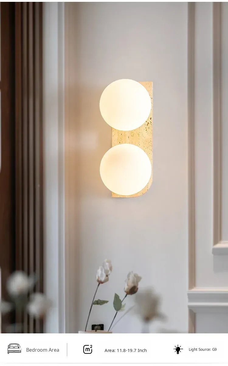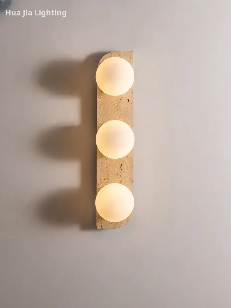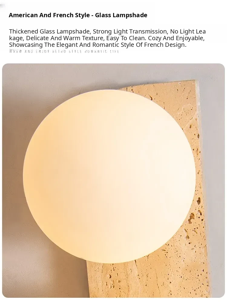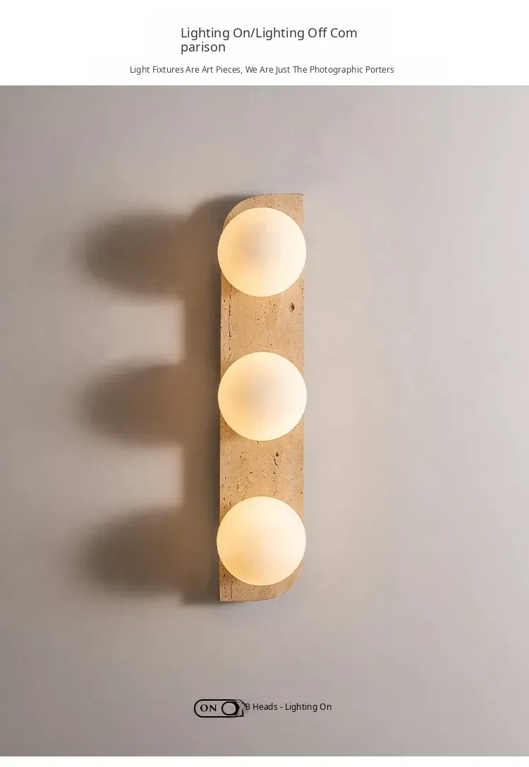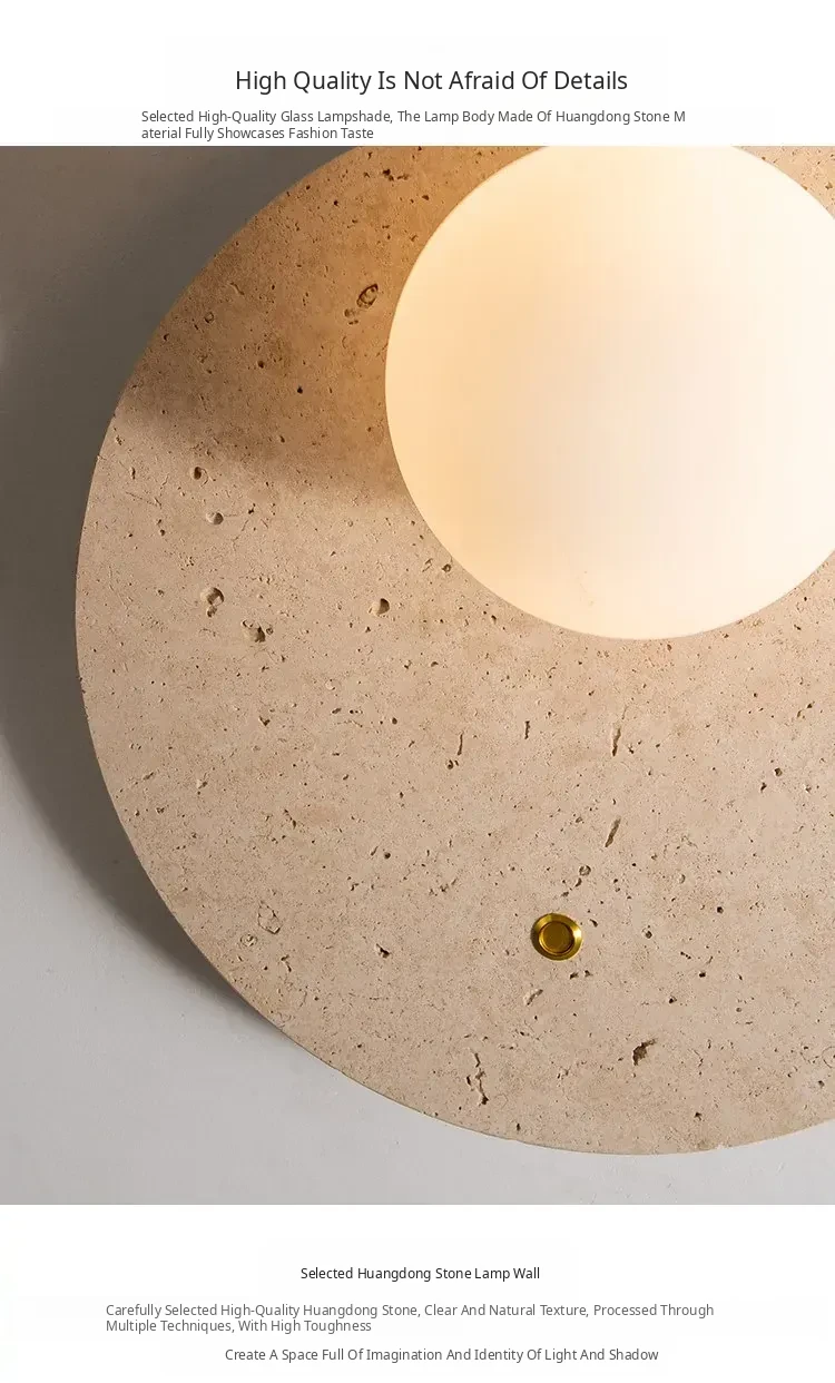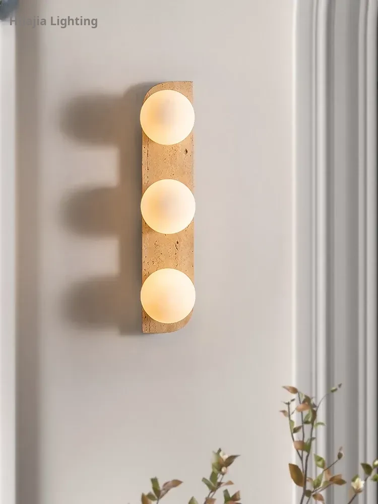 French Vintage Long Bedside Lamp with Yellow Cave Stone Cream Design - Japanese Wabi-Sabi Style Background Wall Sconce for Living Room