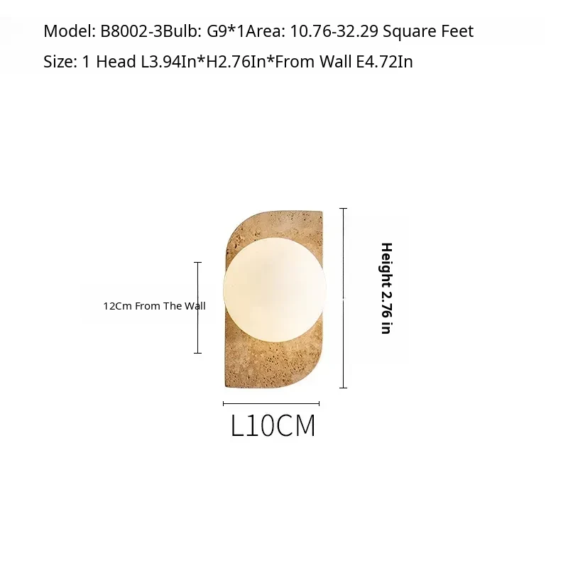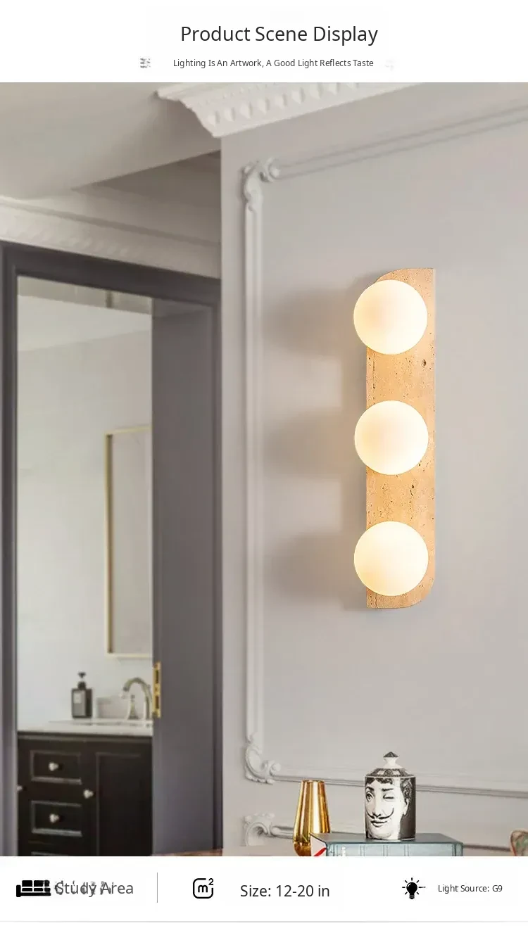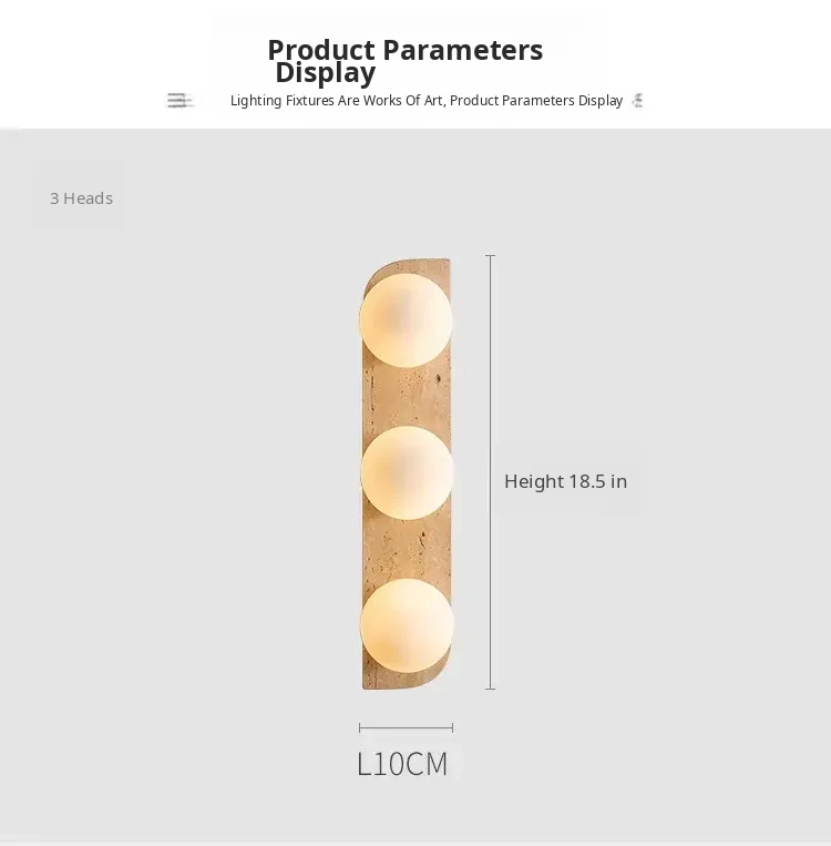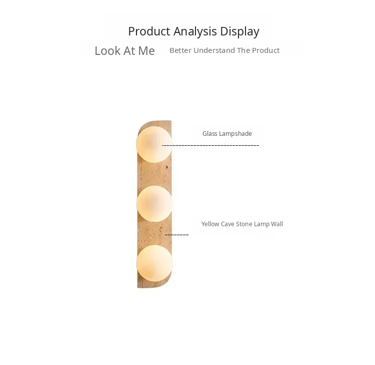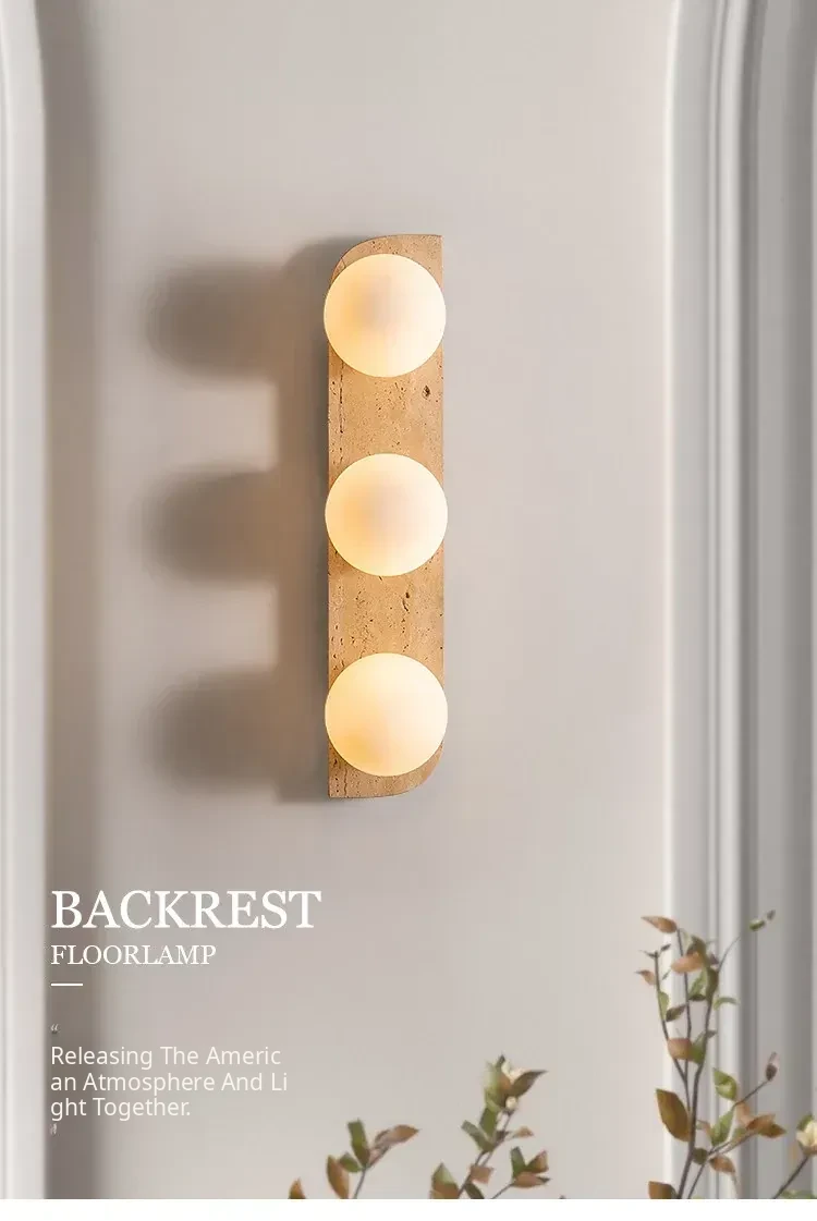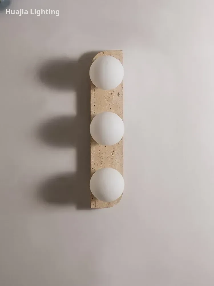 French Vintage Long Bedside Lamp with Yellow Cave Stone Cream Design - Japanese Wabi-Sabi Style Background Wall Sconce for Living Room