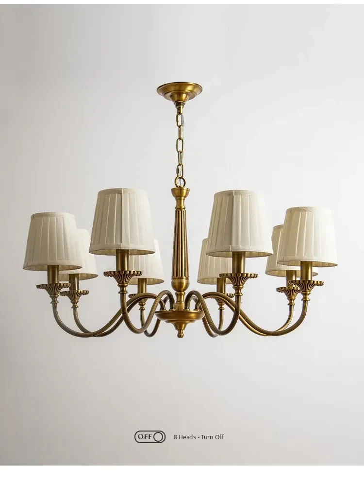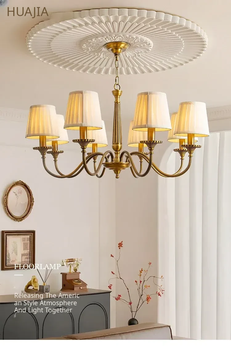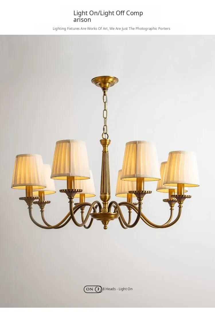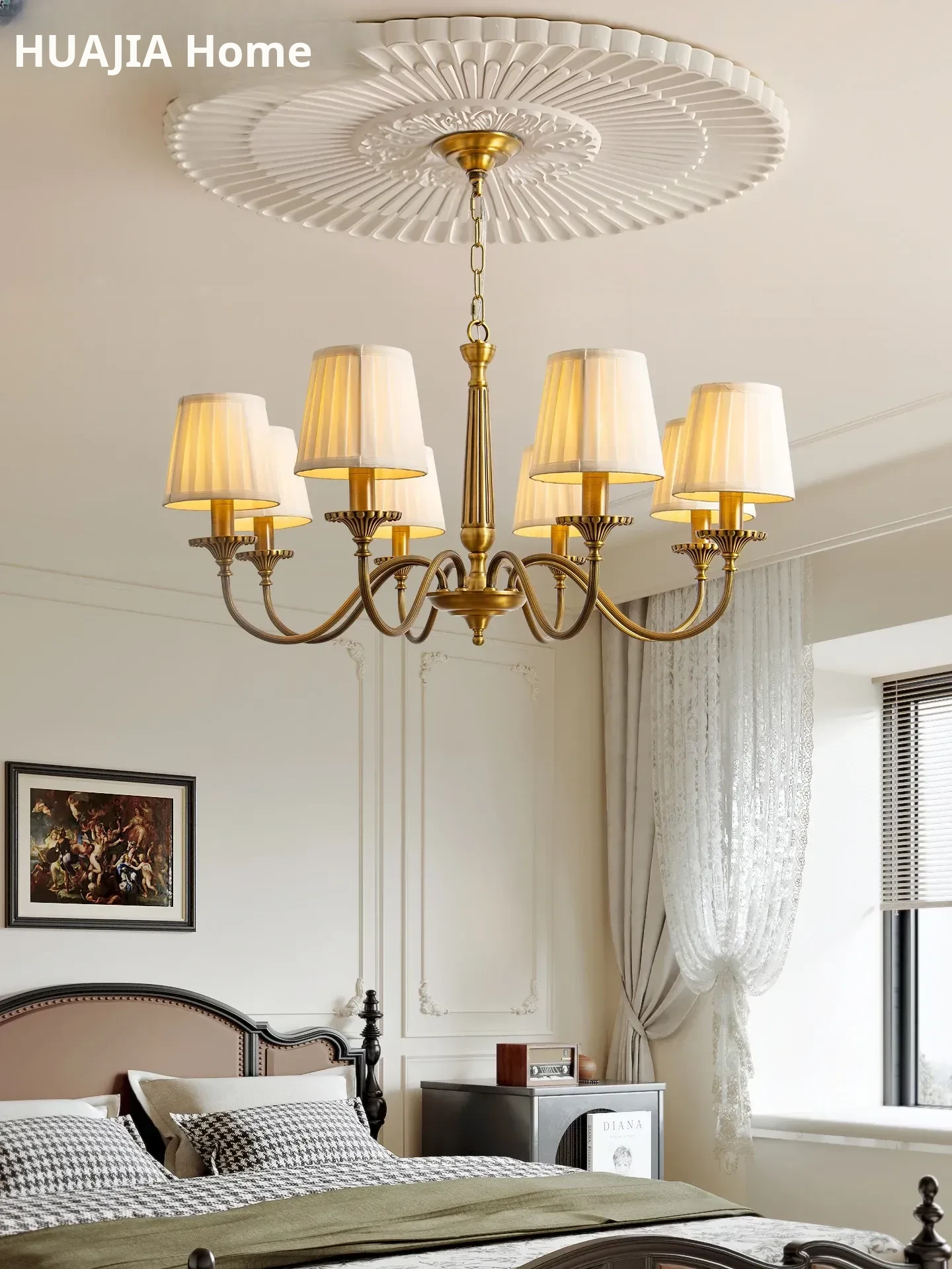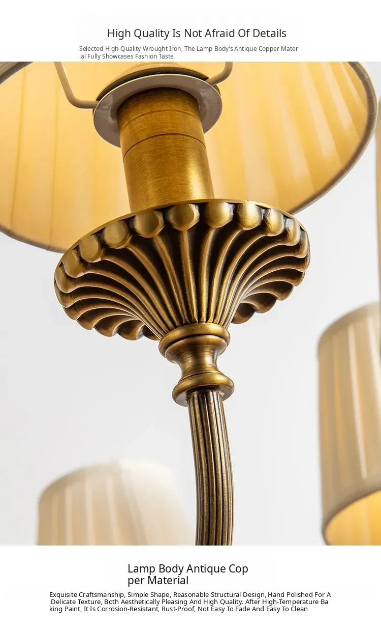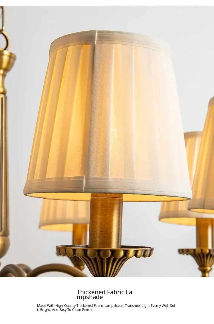French Vintage Style All-Copper Chandelier with Elegant Fabric Design - Luxurious Living Room, Villa Hall, Bedroom, and Dining Room Lighting