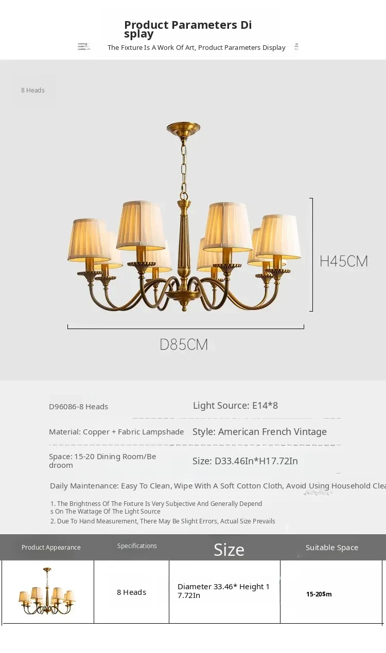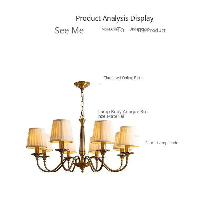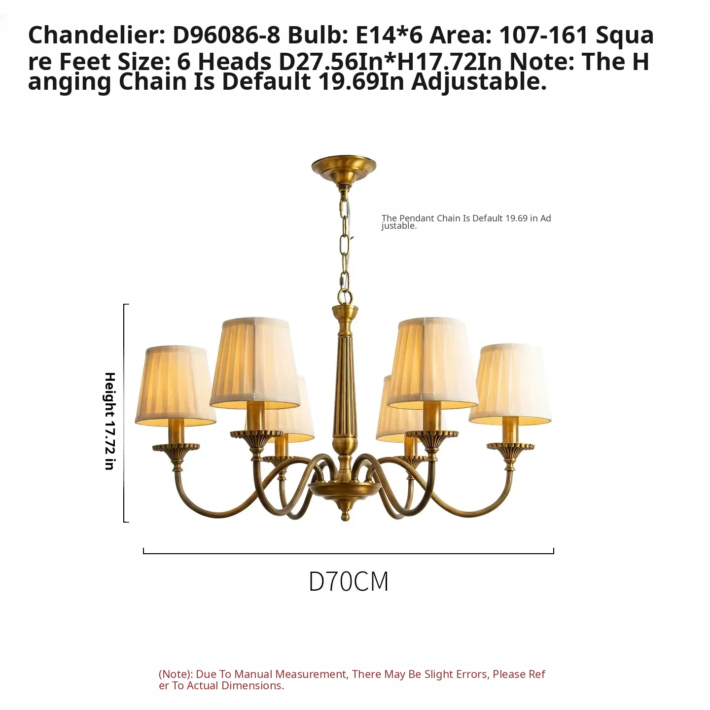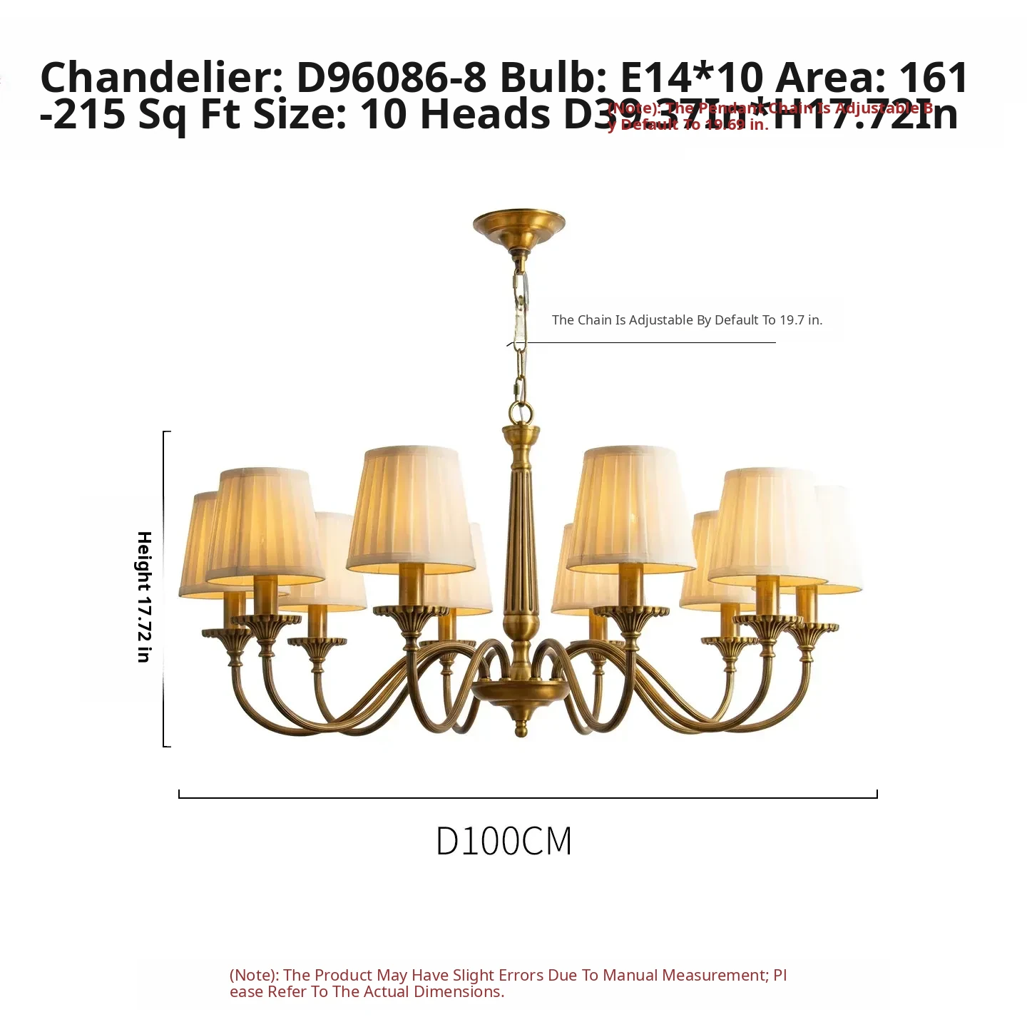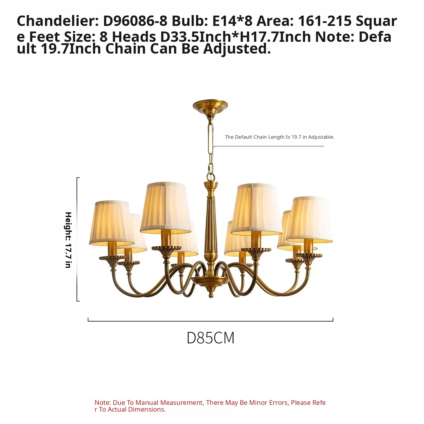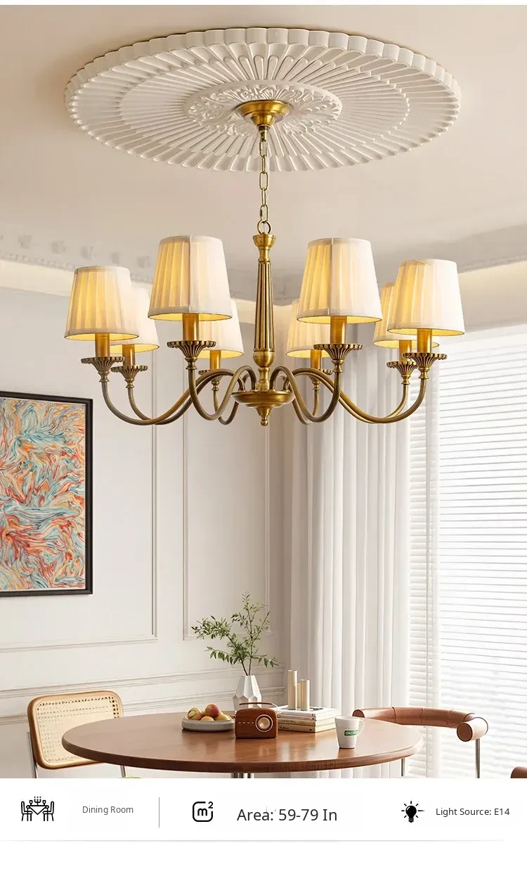 French Vintage Style All-Copper Chandelier with Elegant Fabric Design - Luxurious Living Room, Villa Hall, Bedroom, and Dining Room Lighting