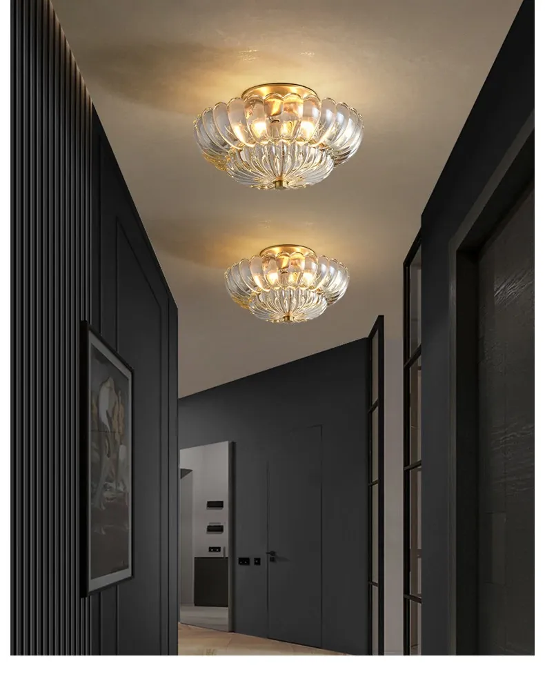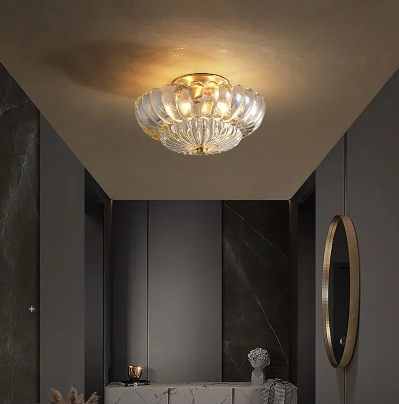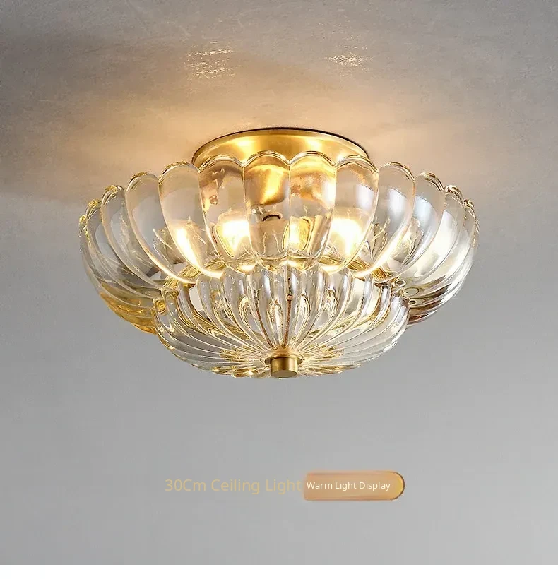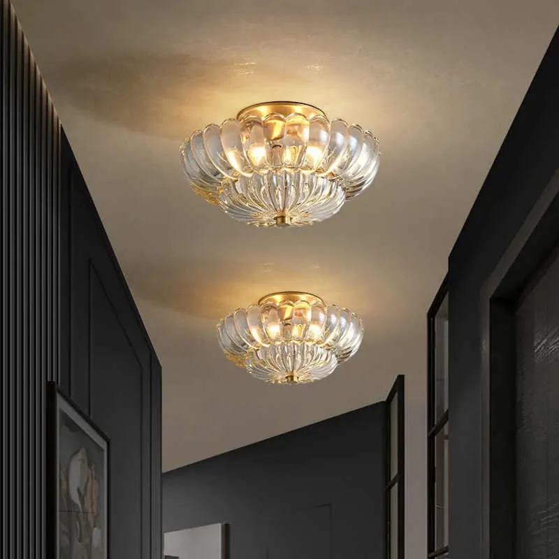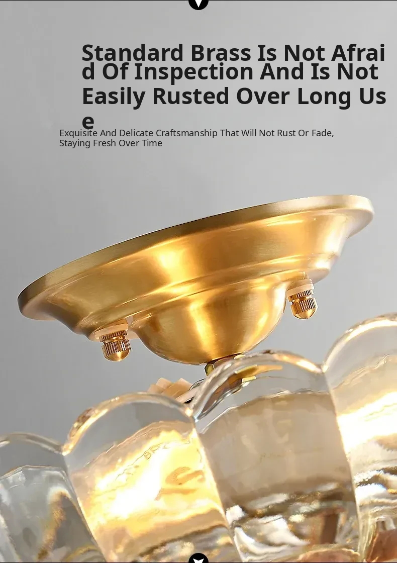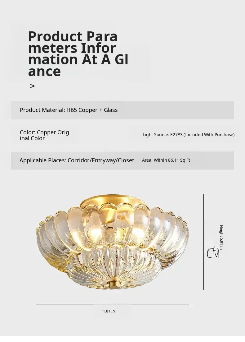 French Vintage Style Ceiling Light for Hallway - All-Copper Retro Entrance and Balcony Glass Ceiling Fixture