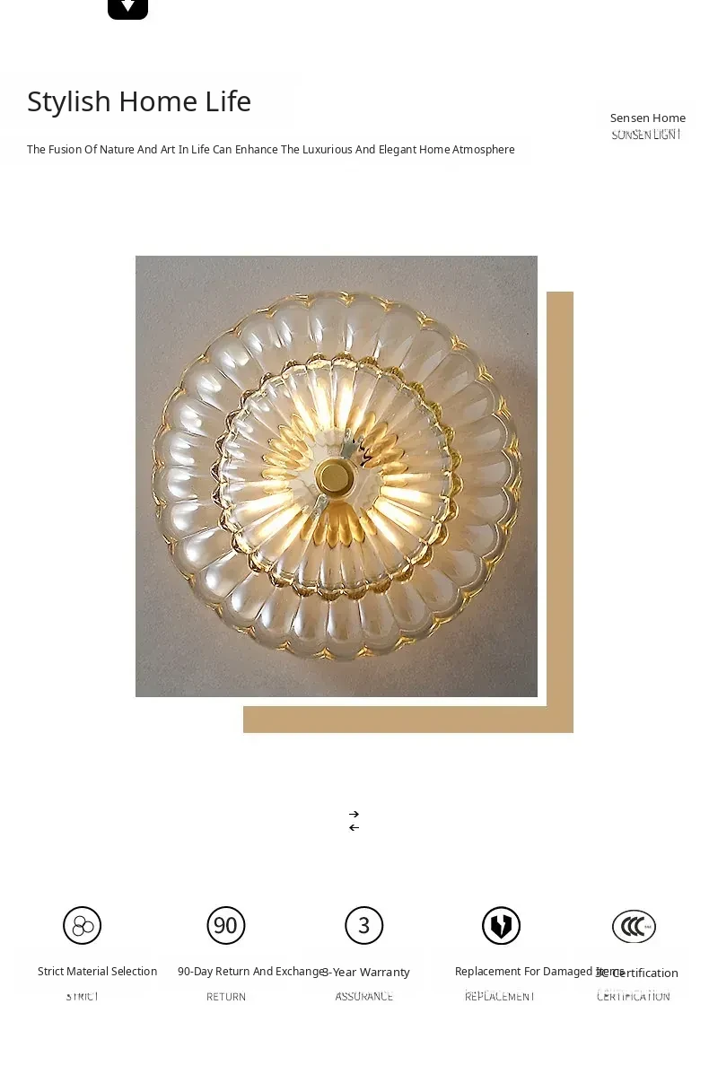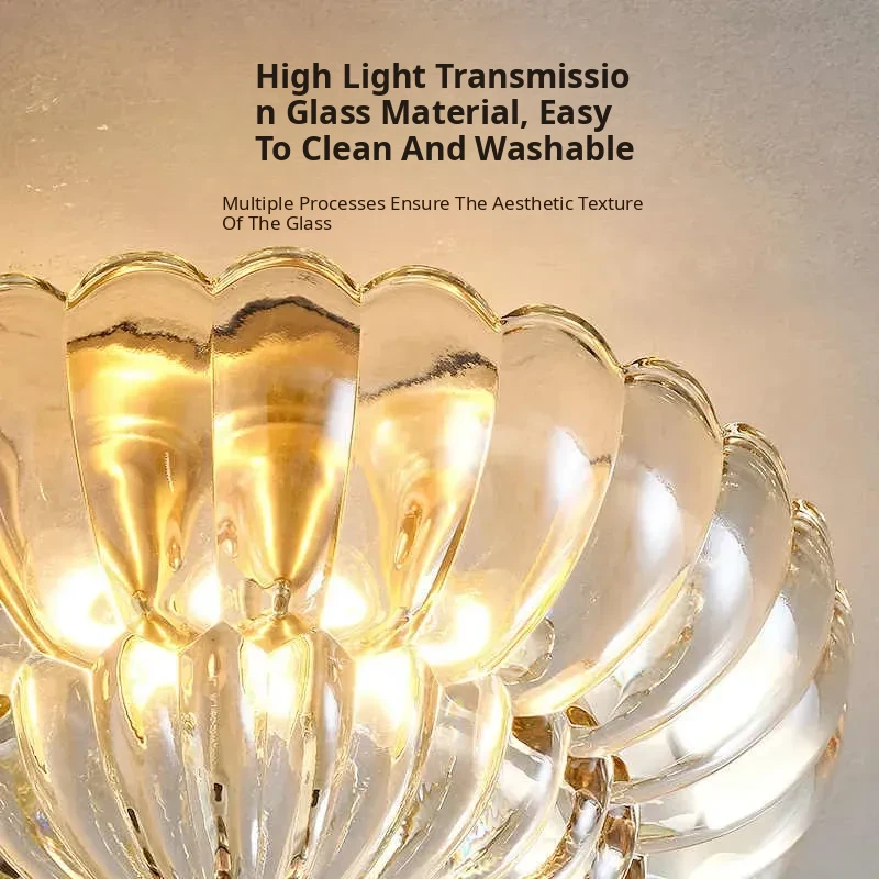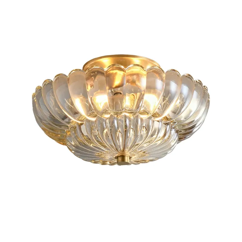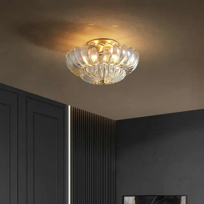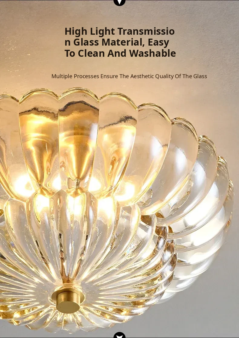 French Vintage Style Ceiling Light for Hallway - All-Copper Retro Entrance and Balcony Glass Ceiling Fixture