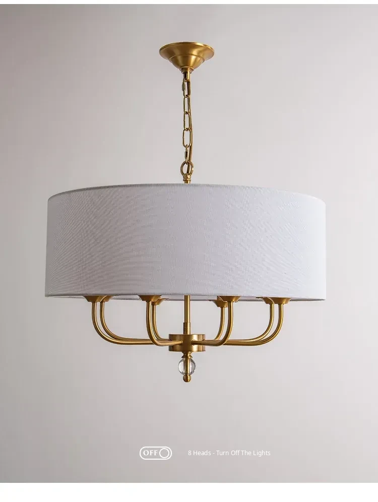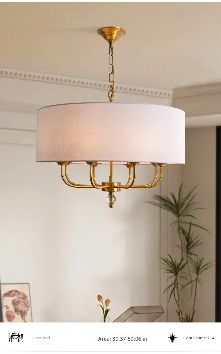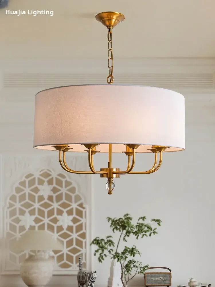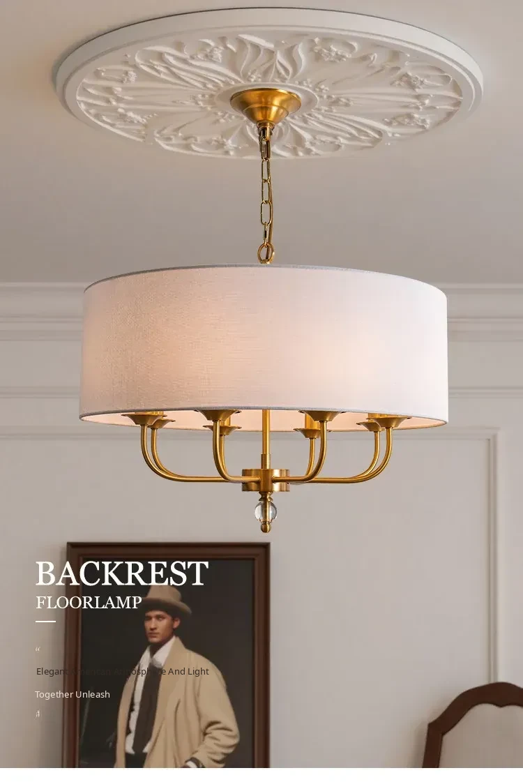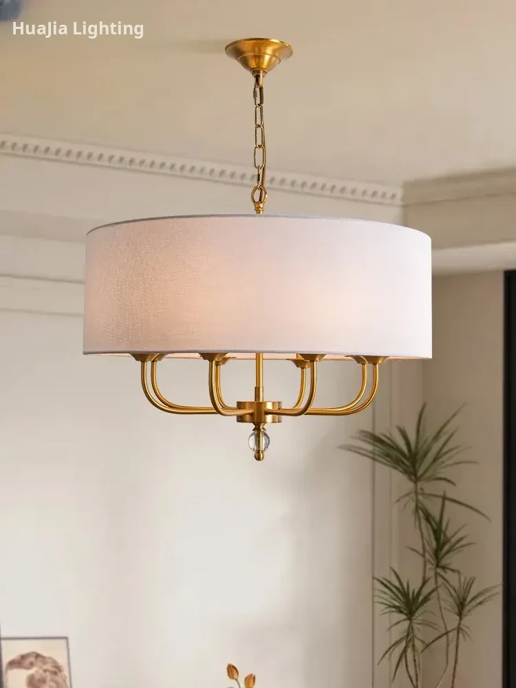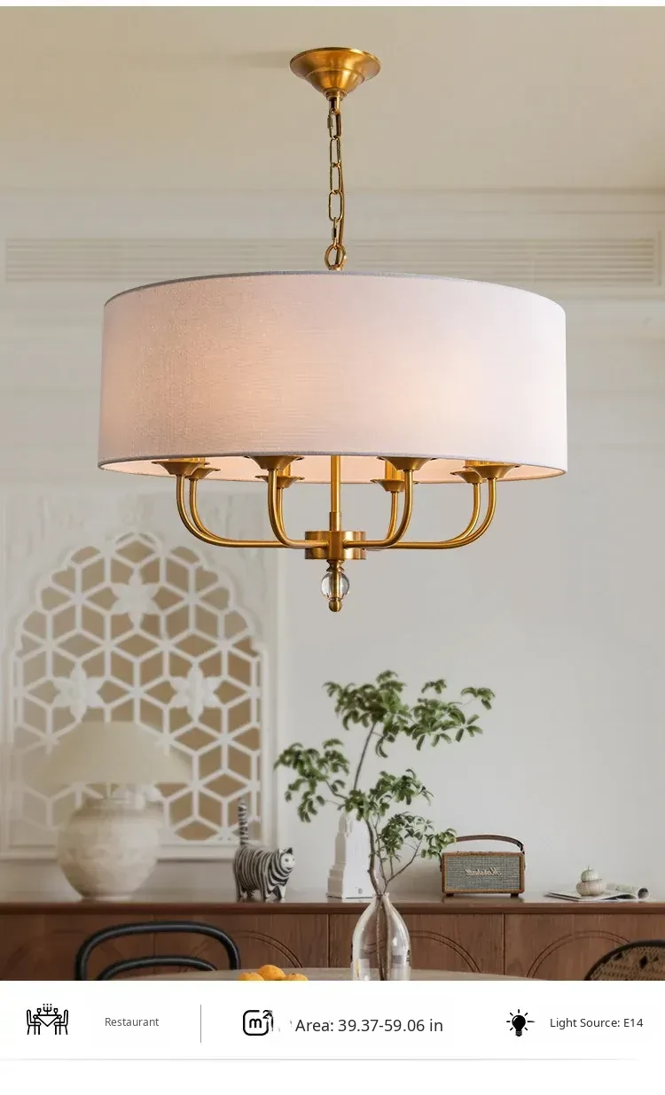 French Vintage Style Chandelier - 2025 New American Retro Pure Copper Fabric Shade Light for Dining Room, Bedroom, and Dining Table