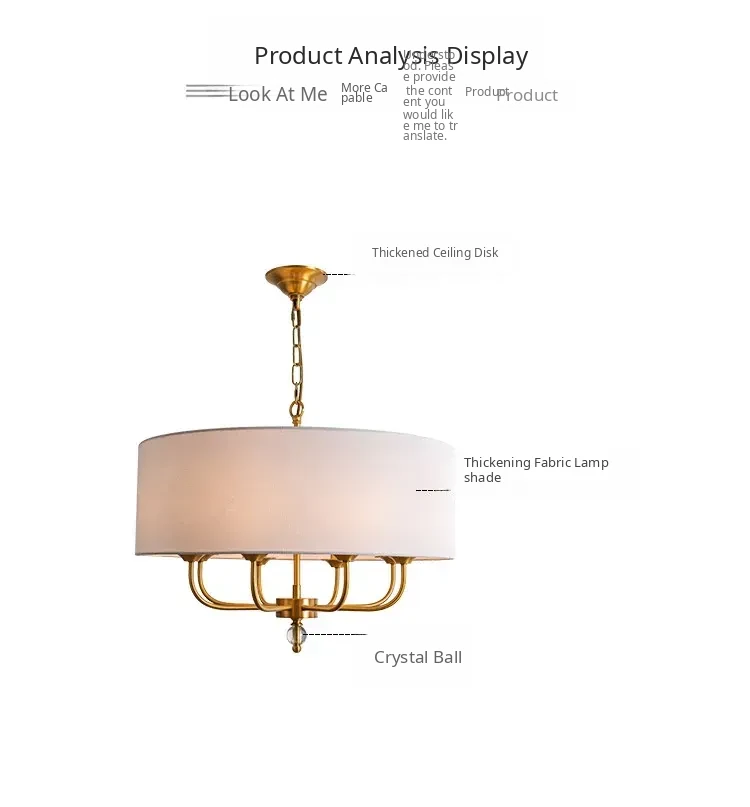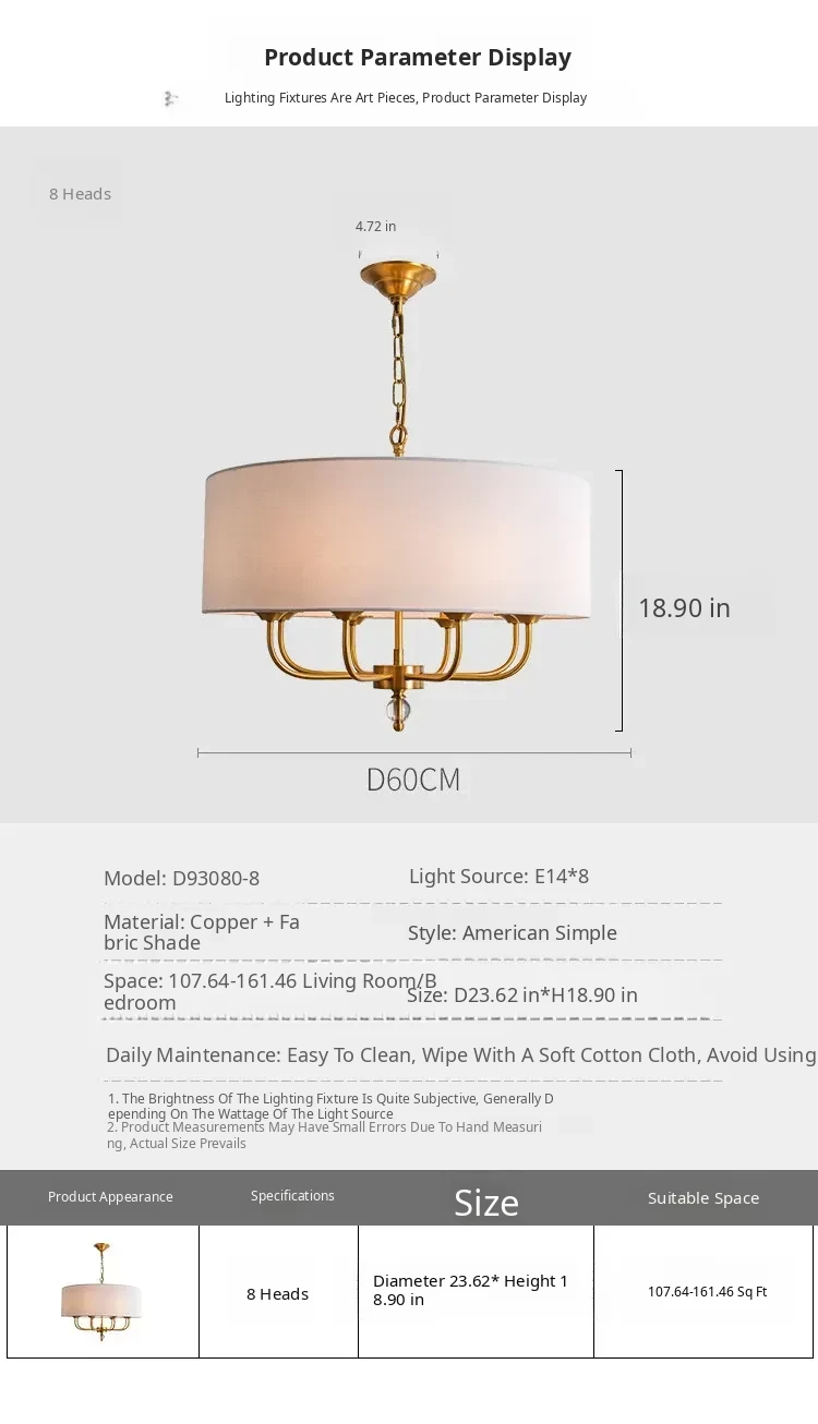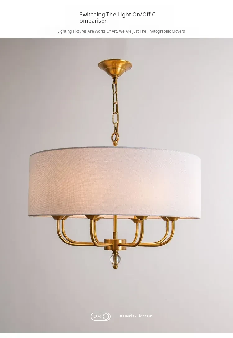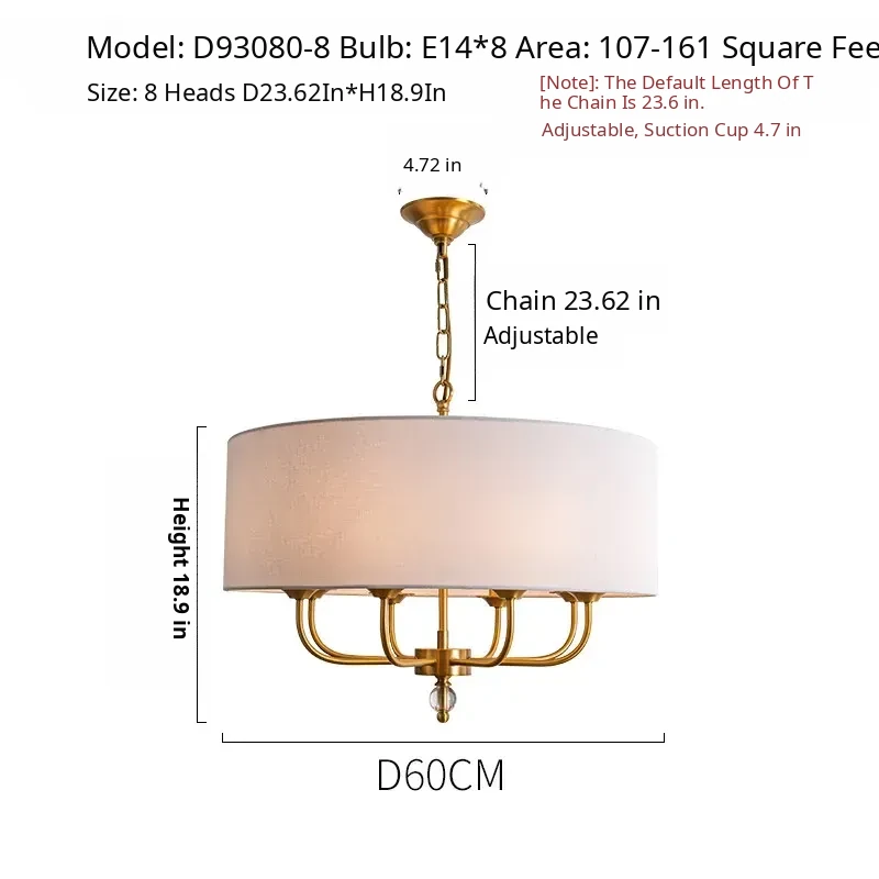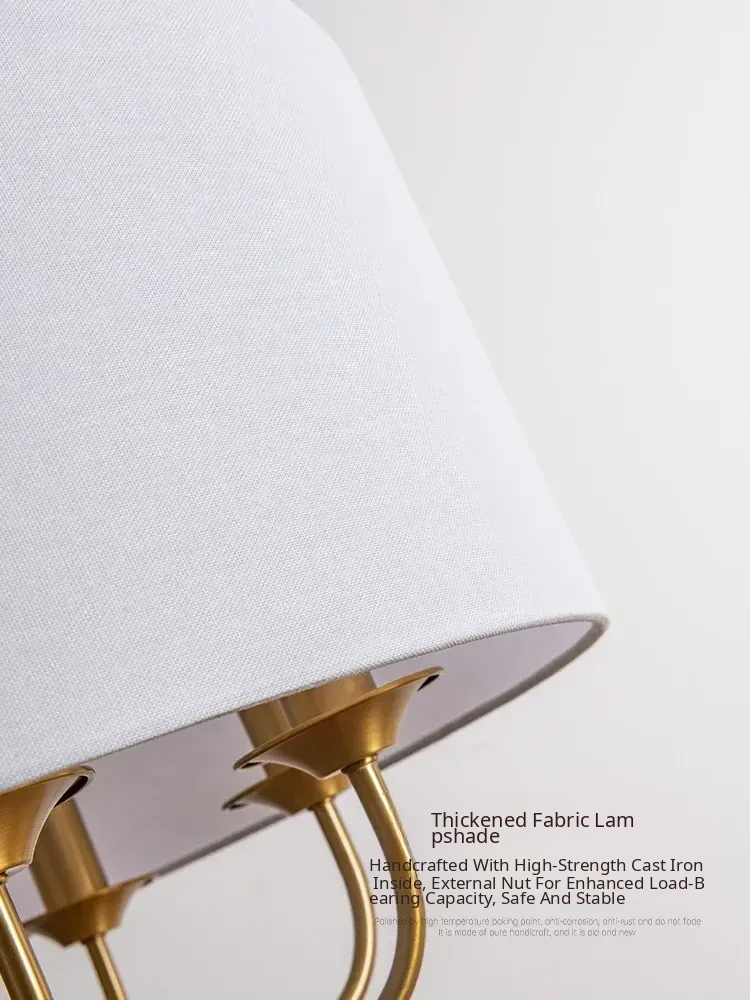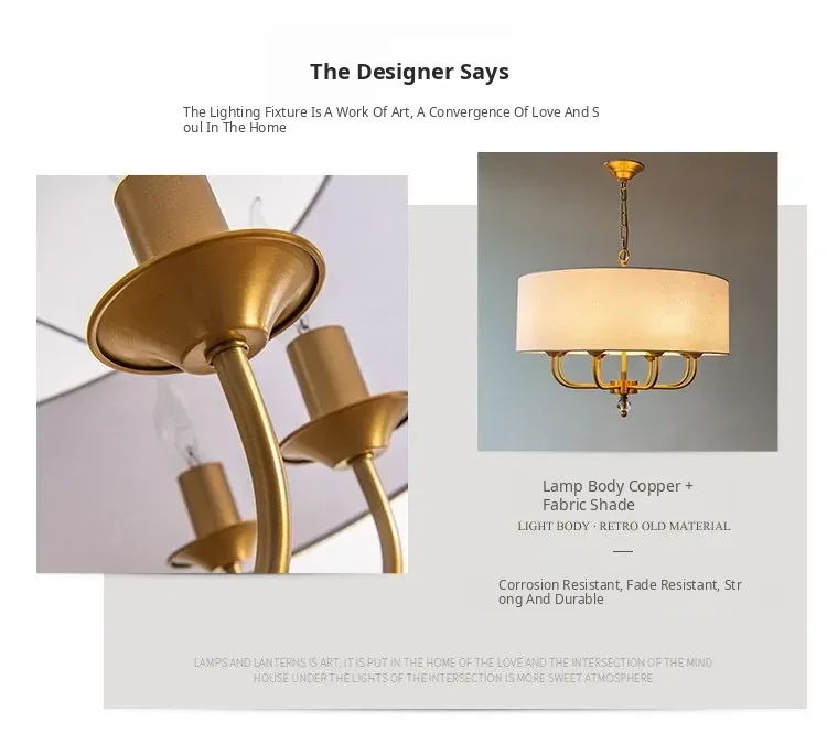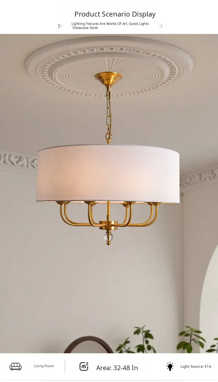 French Vintage Style Chandelier - 2025 New American Retro Pure Copper Fabric Shade Light for Dining Room, Bedroom, and Dining Table