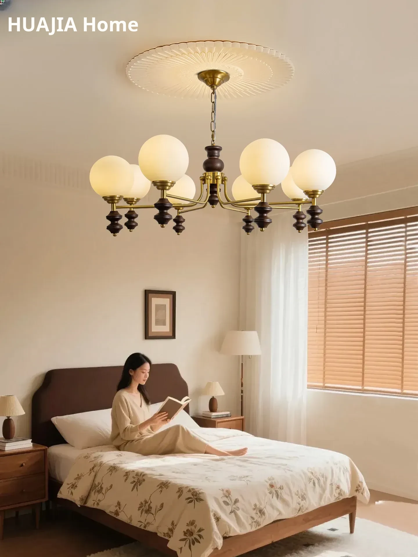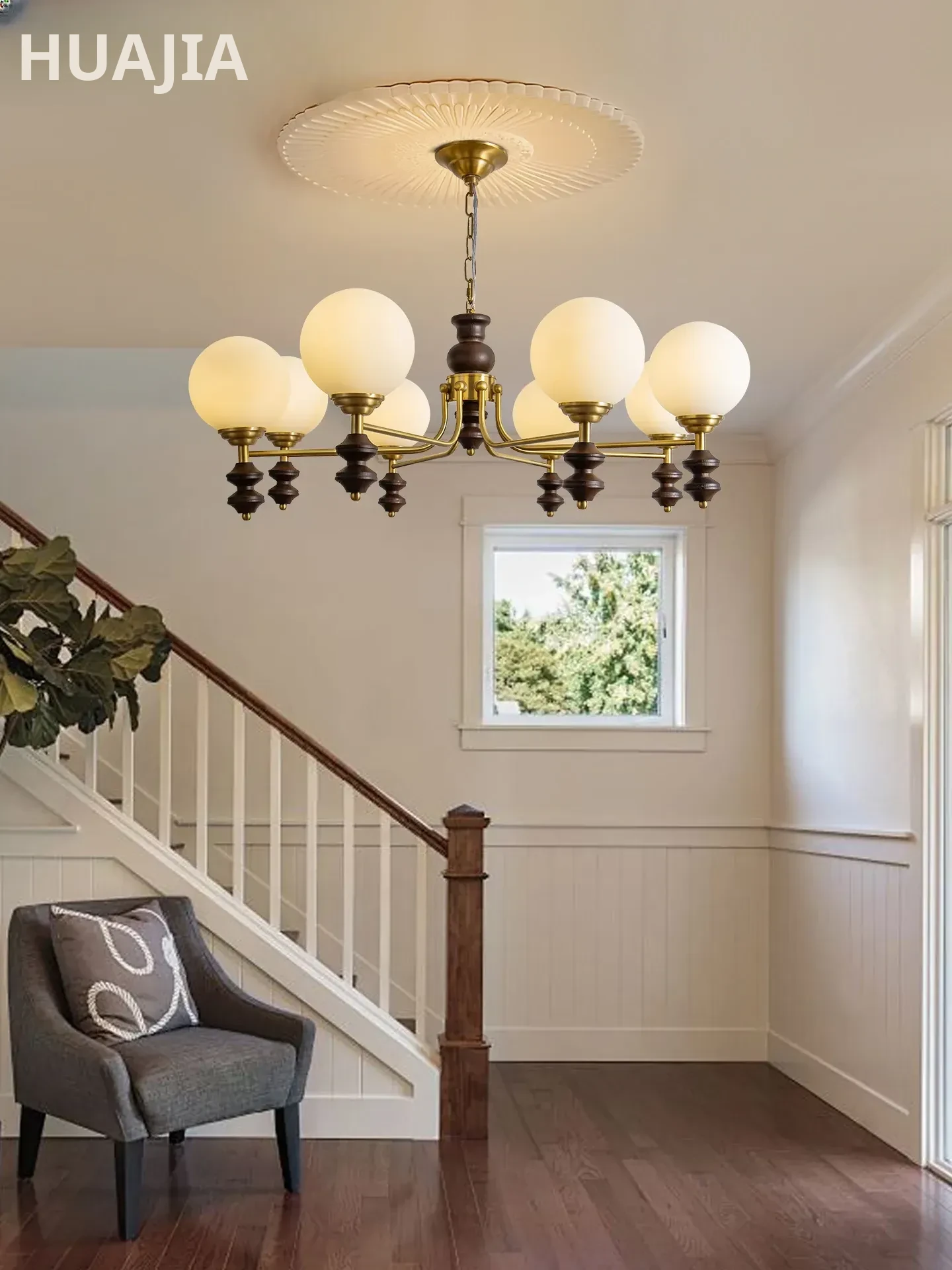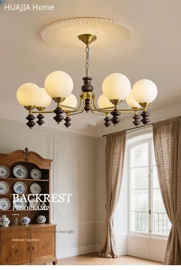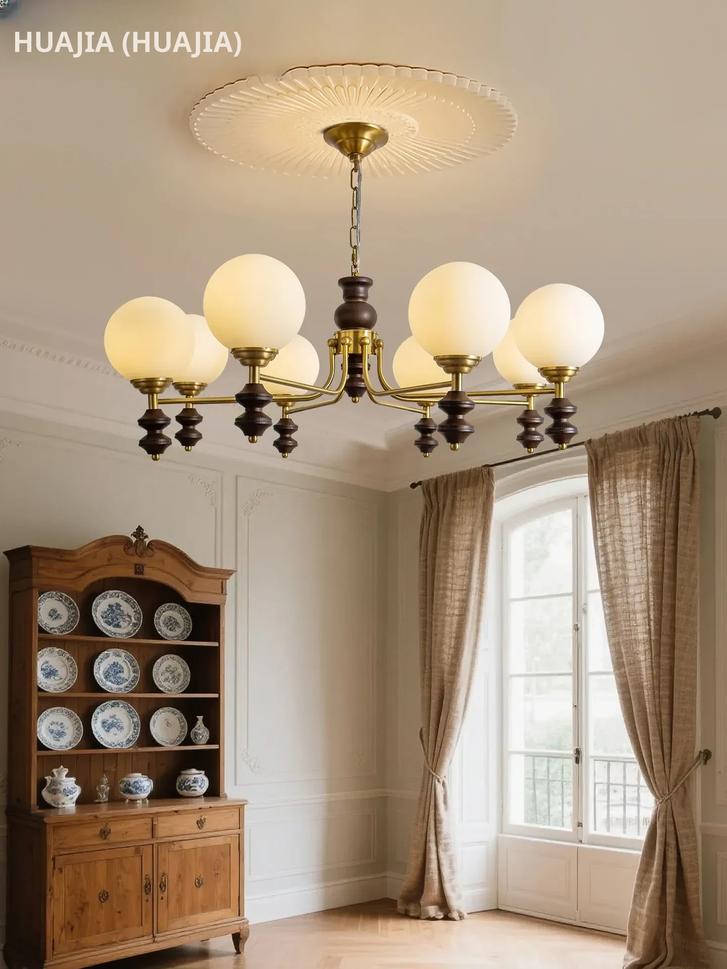 French Vintage Style Chandelier - American Retro Bauhaus Design for Living Room, Bedroom, and Dining Room Ambiance - Elegant Glass Pendant Light