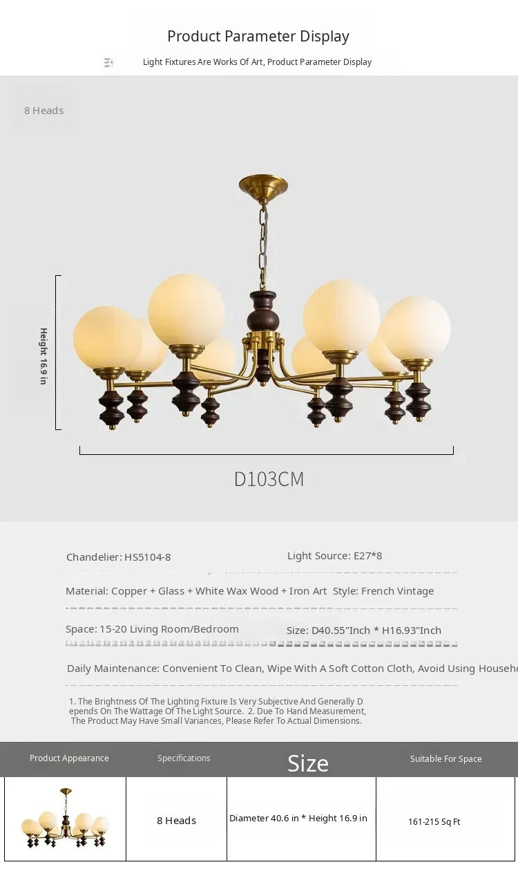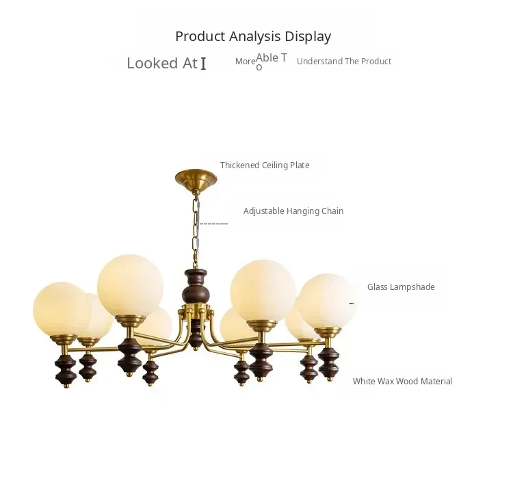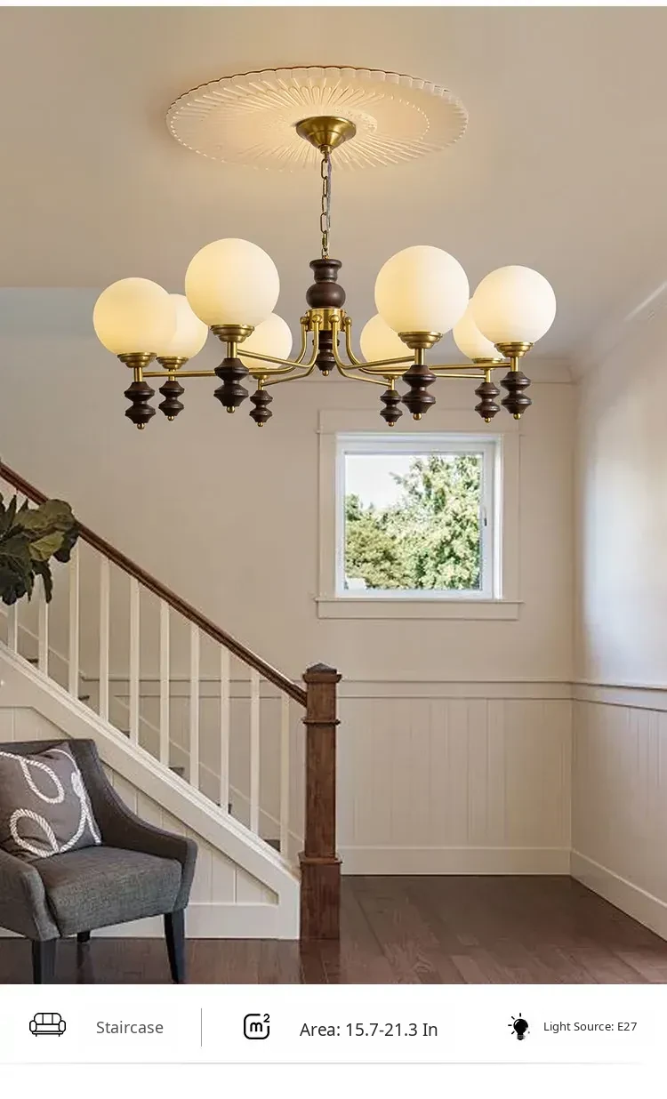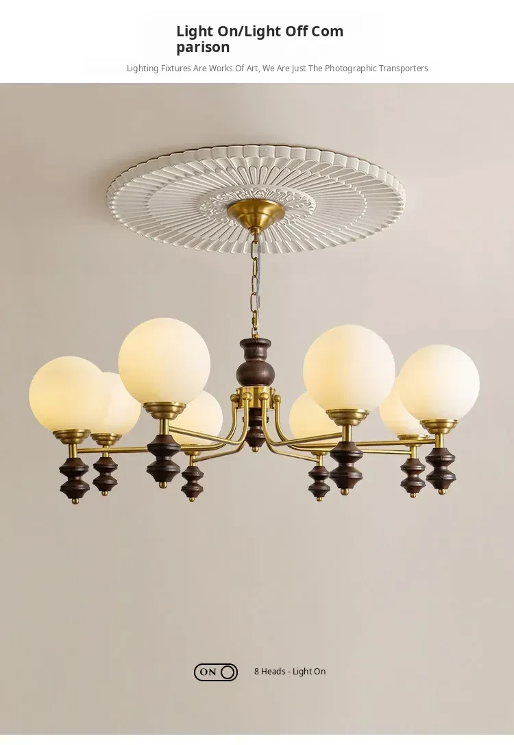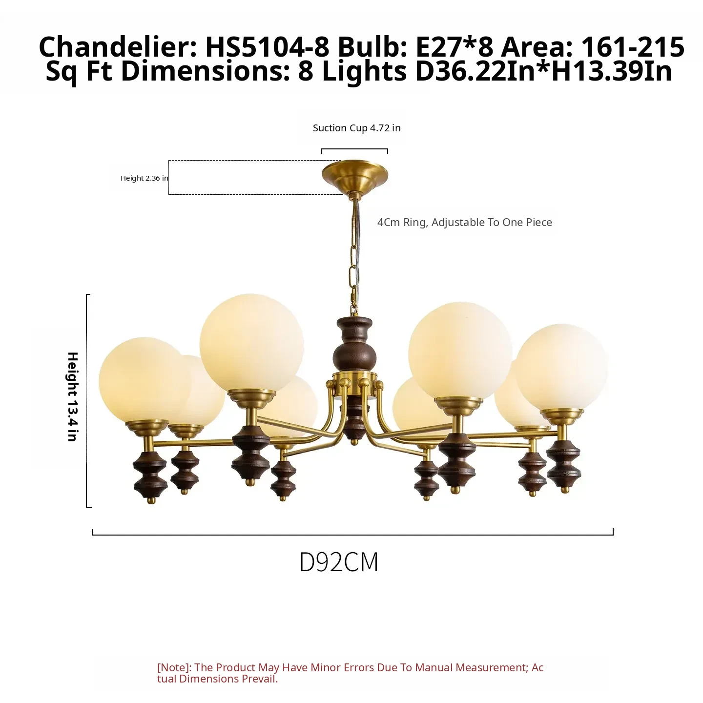French Vintage Style Chandelier - American Retro Bauhaus Design for Living Room, Bedroom, and Dining Room Ambiance - Elegant Glass Pendant Light