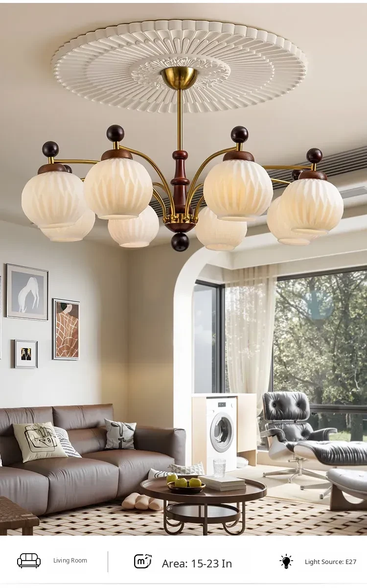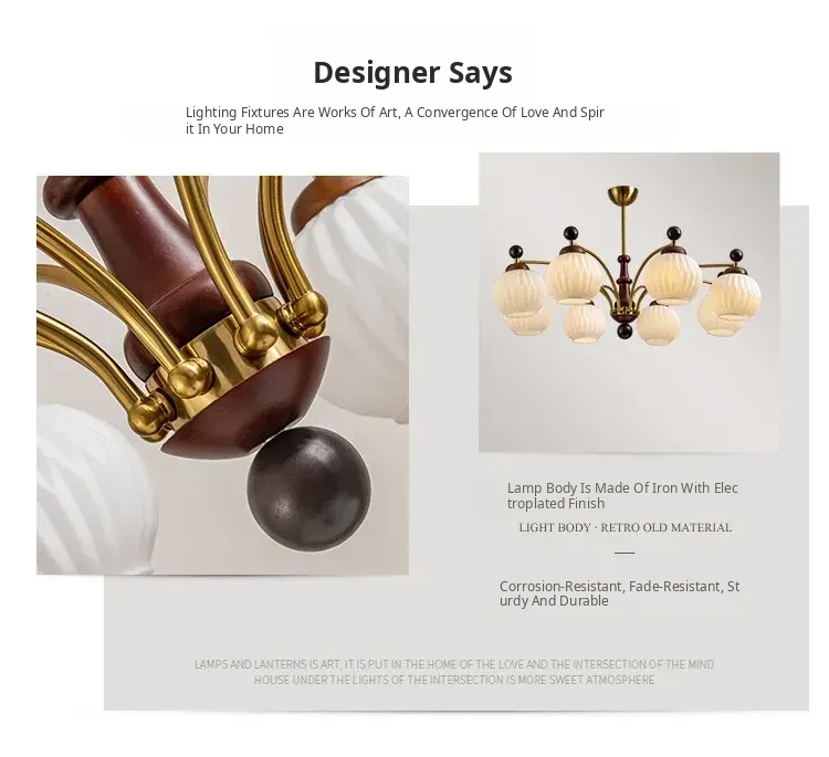 French Vintage Style Chandelier - Romantic and Cozy Lighting for Living Rooms and Bedrooms, Rustic Solid Wood Dining Room Fixture with a Touch of Tropical Charm