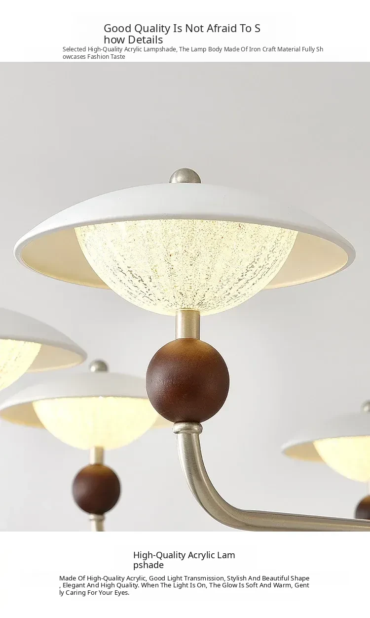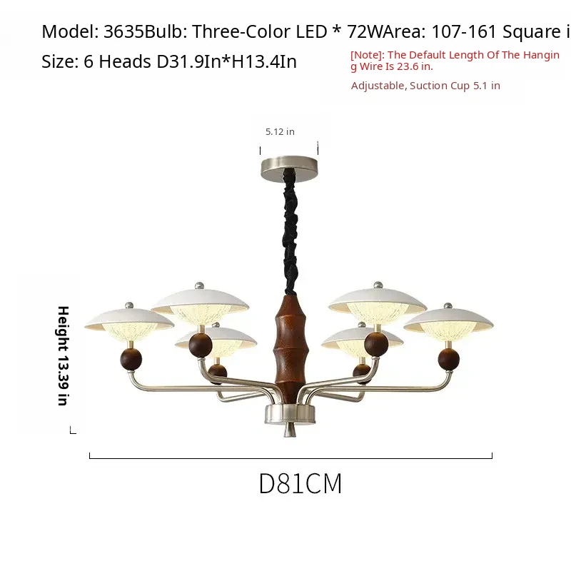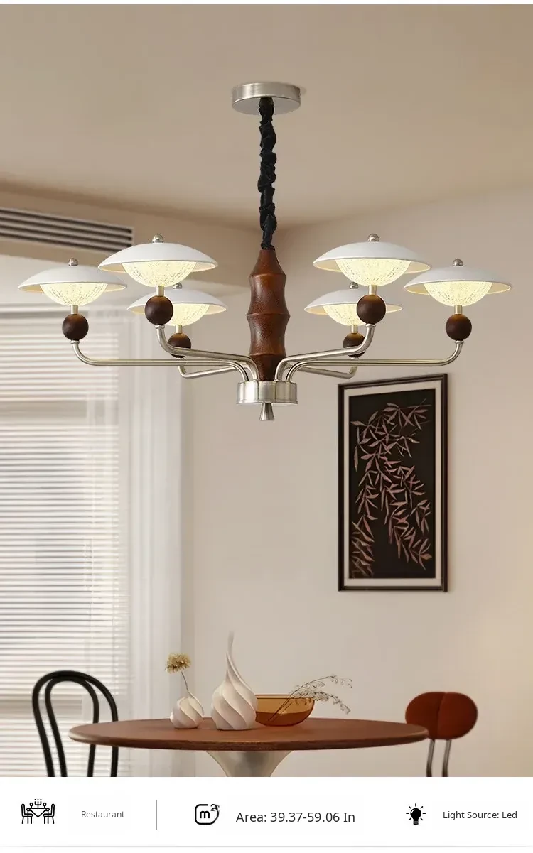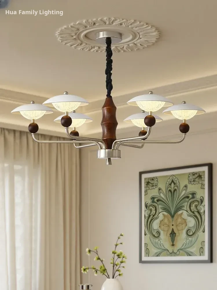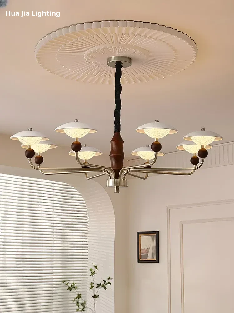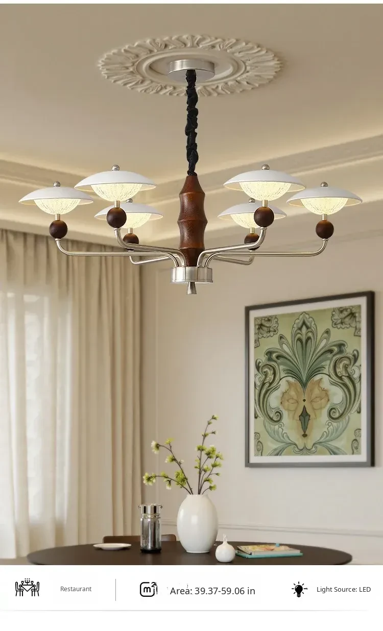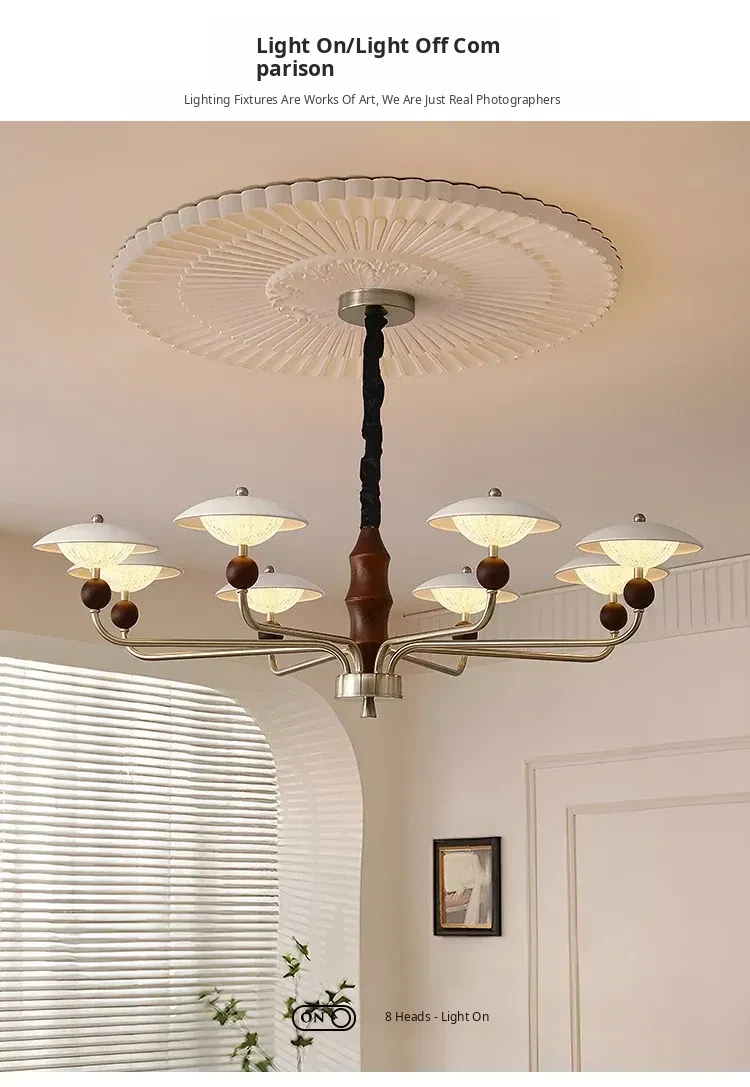 French Vintage Style Chandeliers - Retro Walnut Cream UFO LED Eye-Caring Lighting for Living Room, Bedroom, and Dining Area