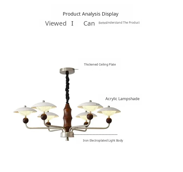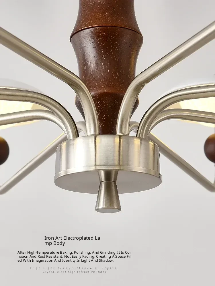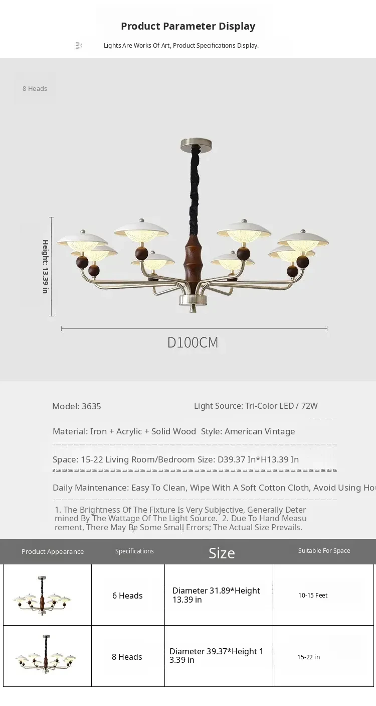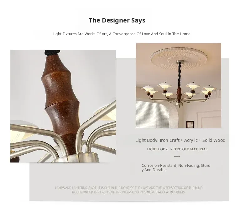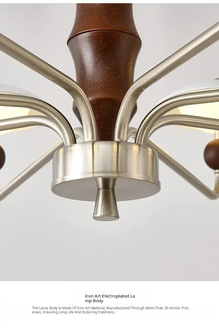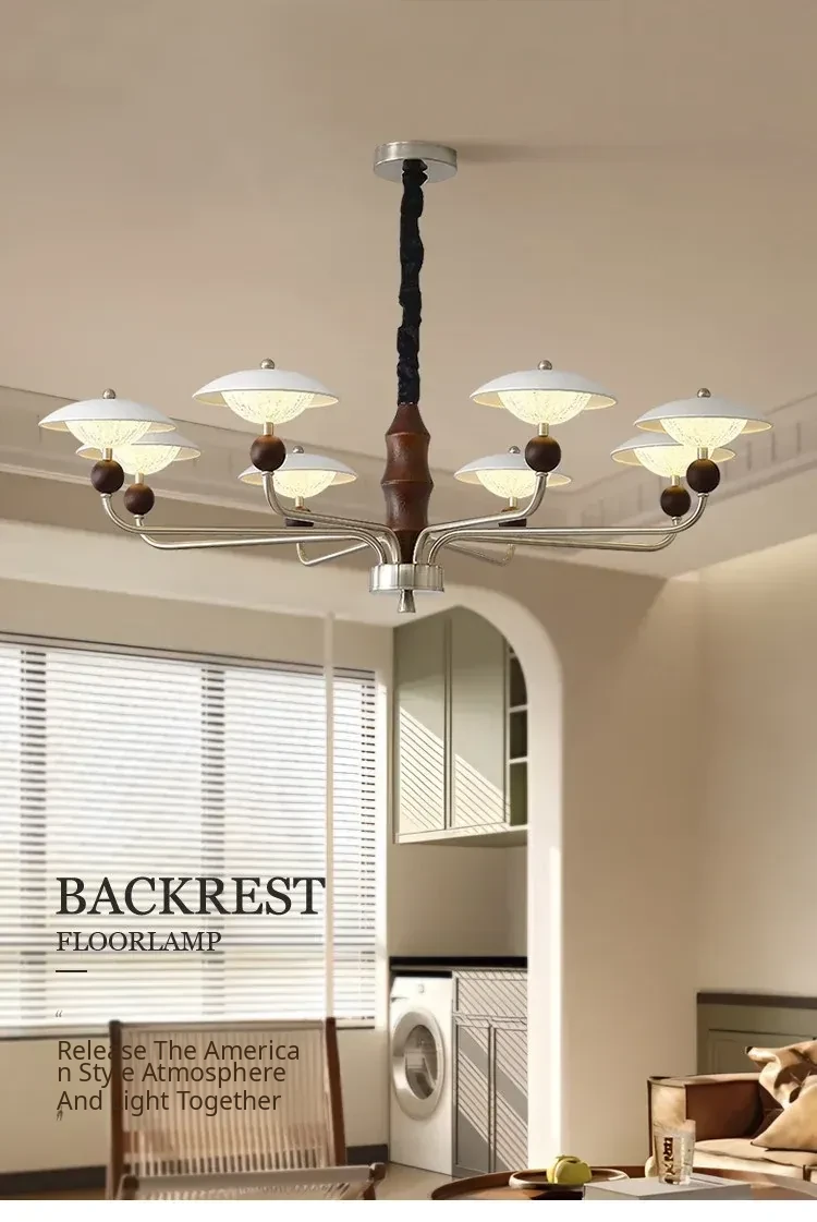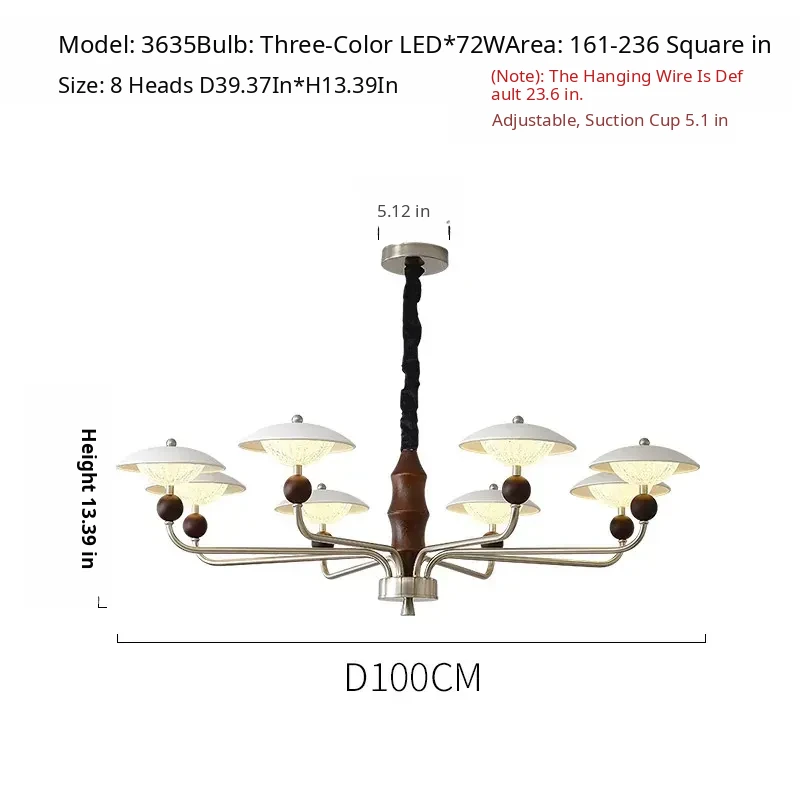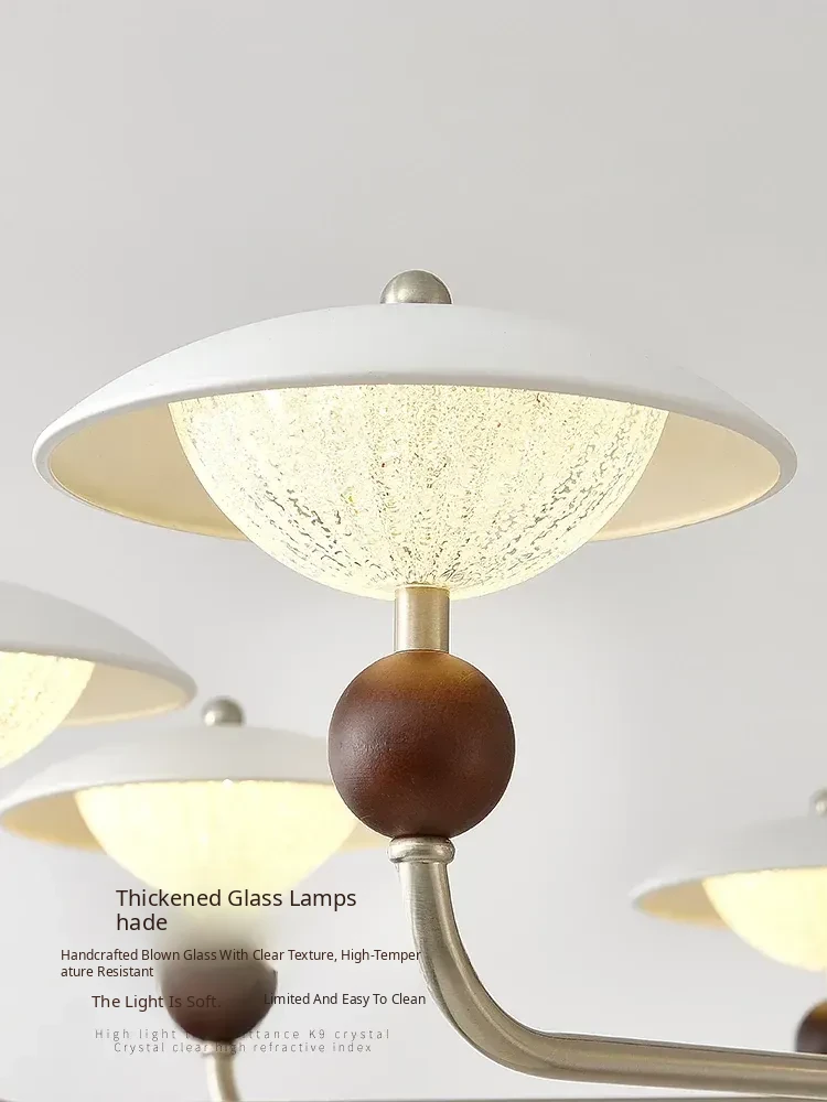 French Vintage Style Chandeliers - Retro Walnut Cream UFO LED Eye-Caring Lighting for Living Room, Bedroom, and Dining Area
