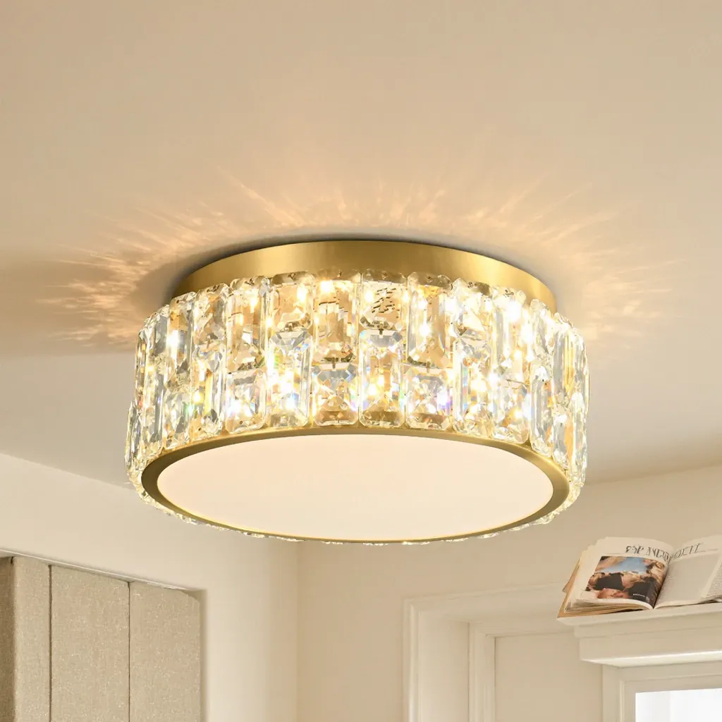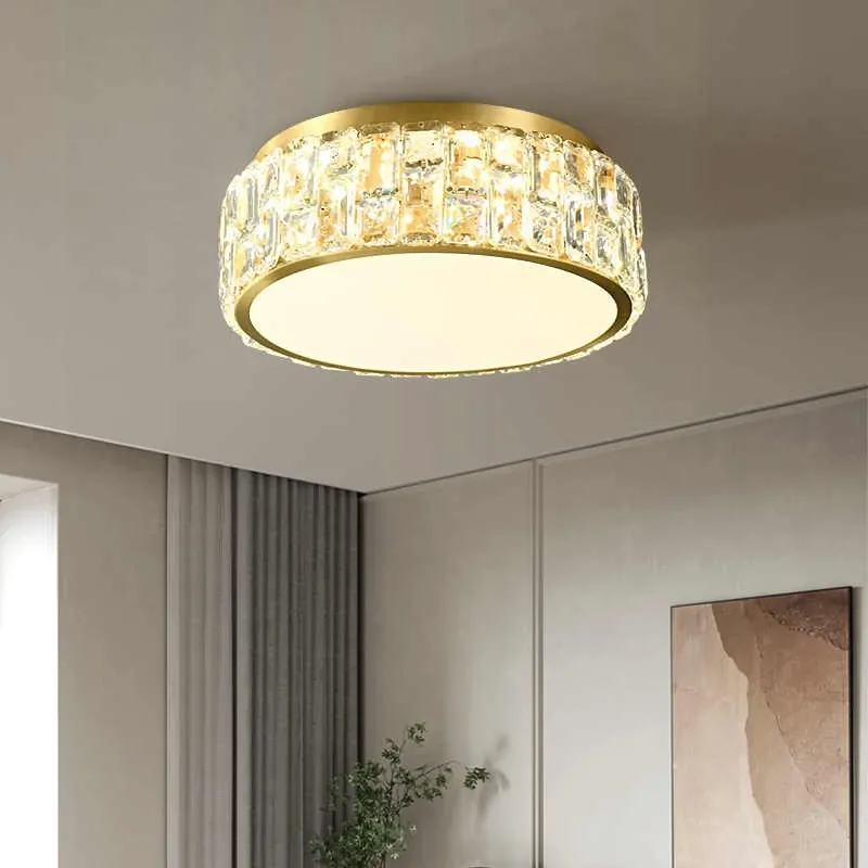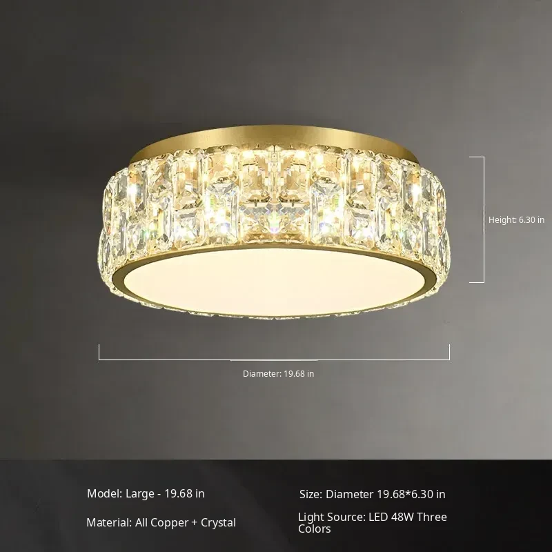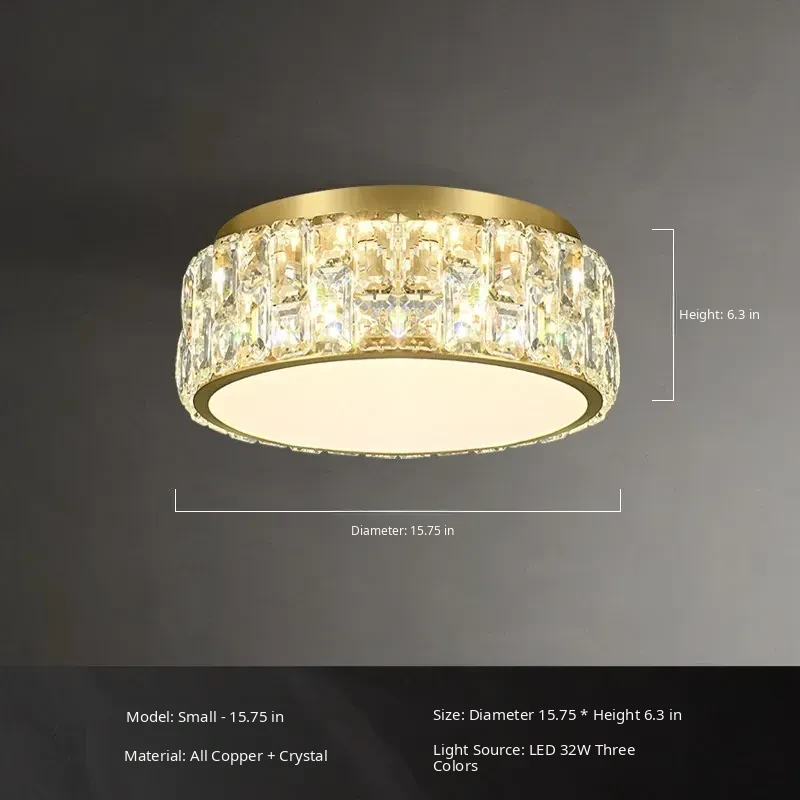French Vintage Style Crystal Ceiling Light - Elegant American Design, Full Copper Construction, Perfect for Bedroom, Study, and Balcony. Illuminate Your Space with Luxury!