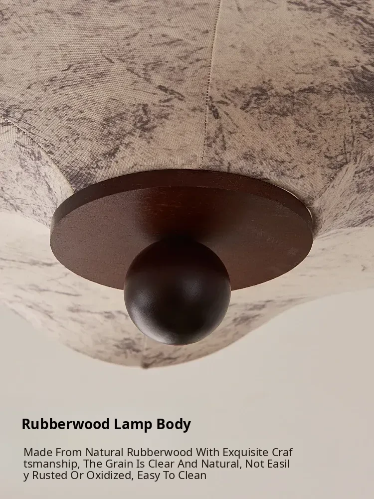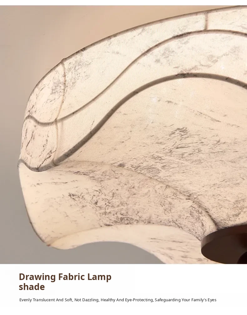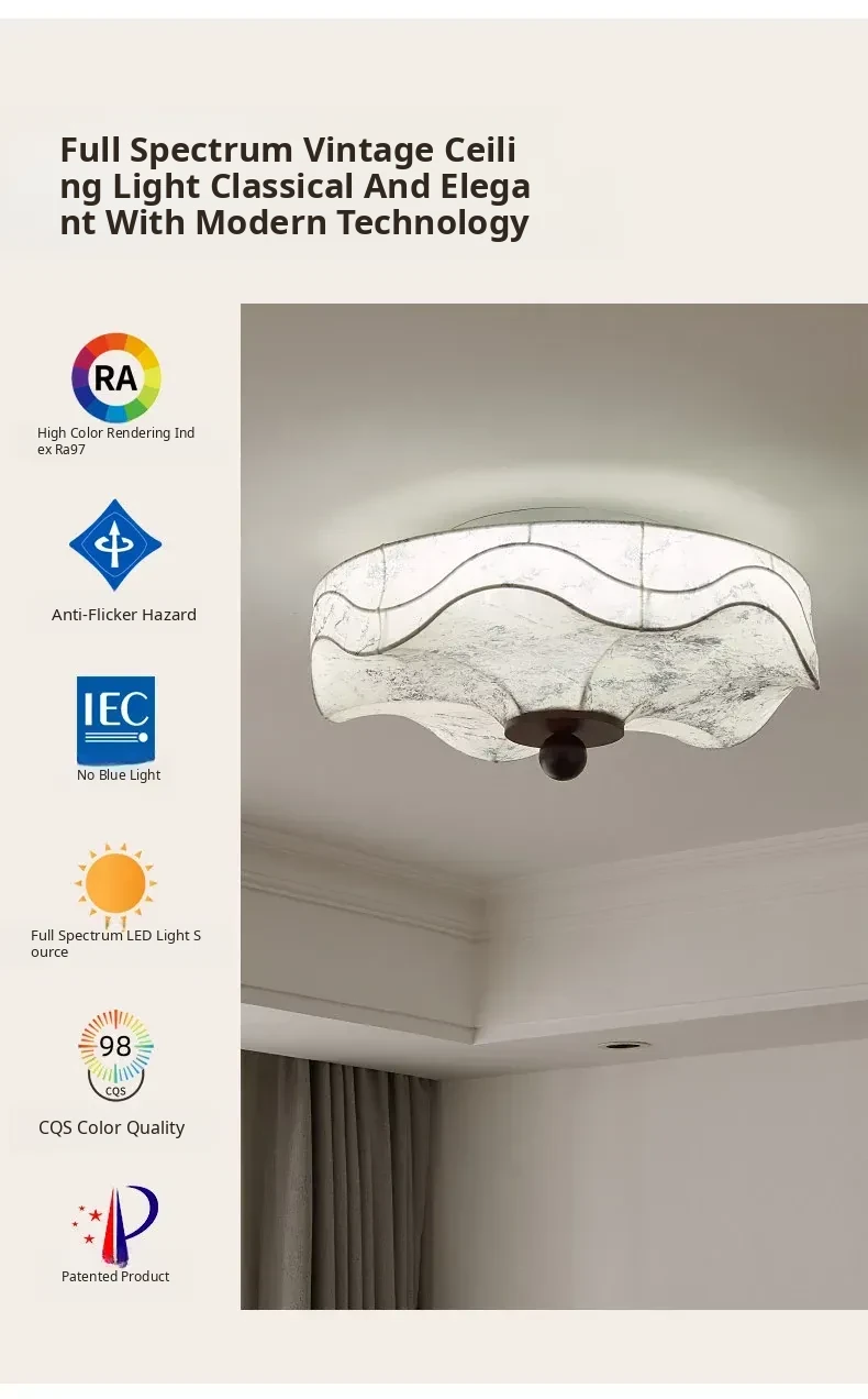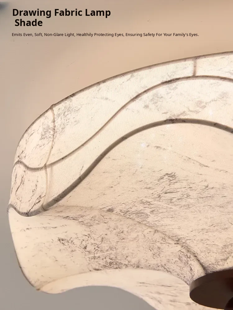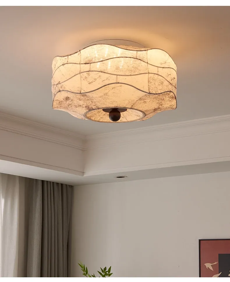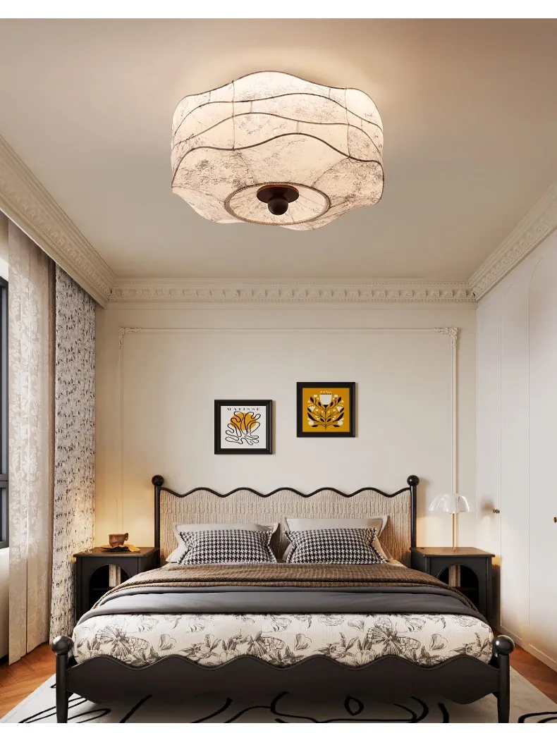 French Vintage Style Fabric Ceiling Light - Elegant New Chinese Design for Bedroom, Dining Room, and Study - Chic Patterned Shade Ceiling Fixture