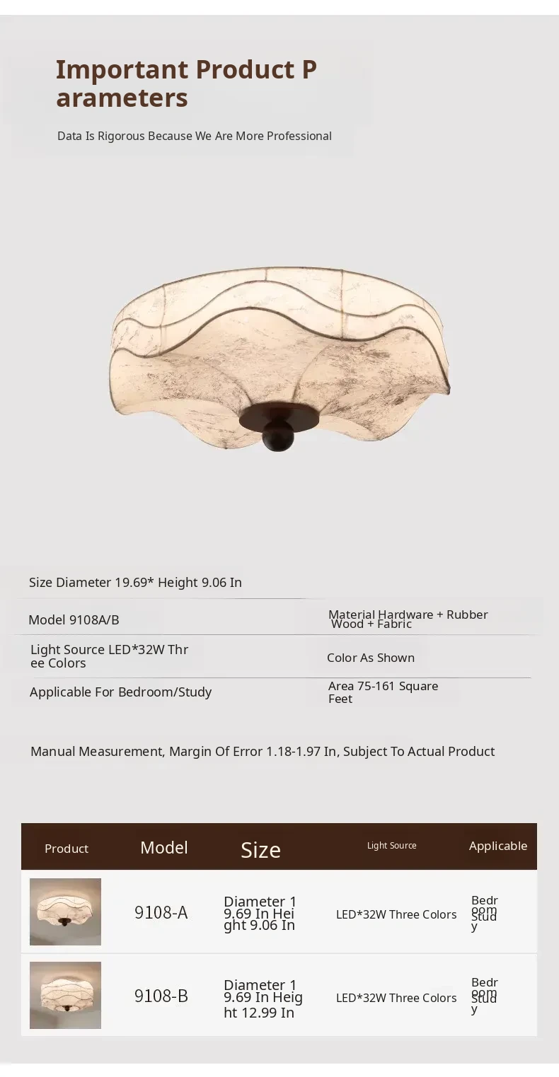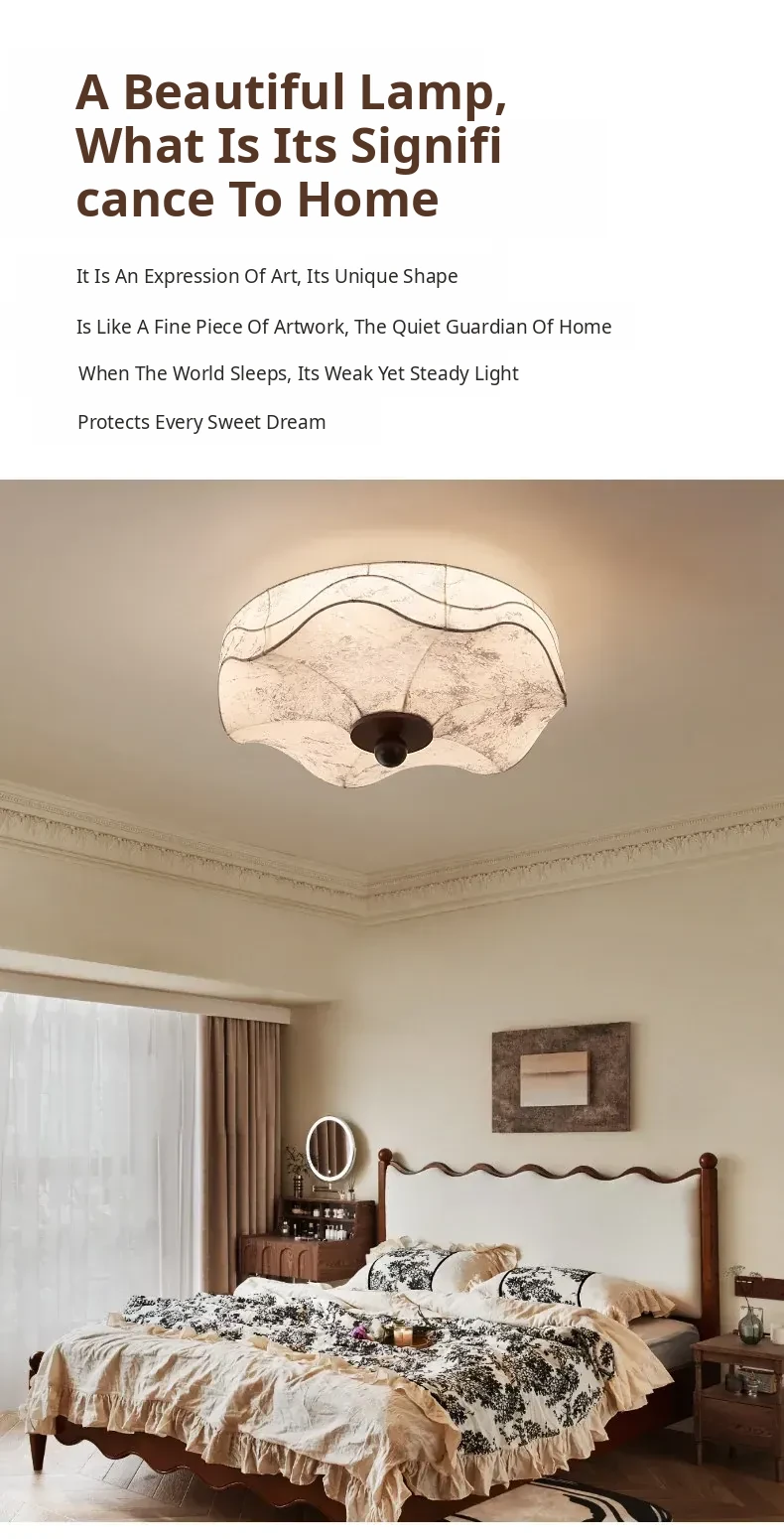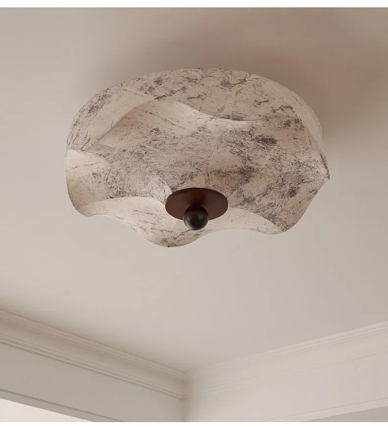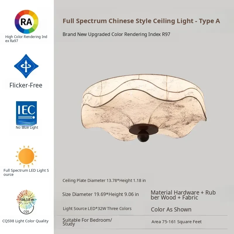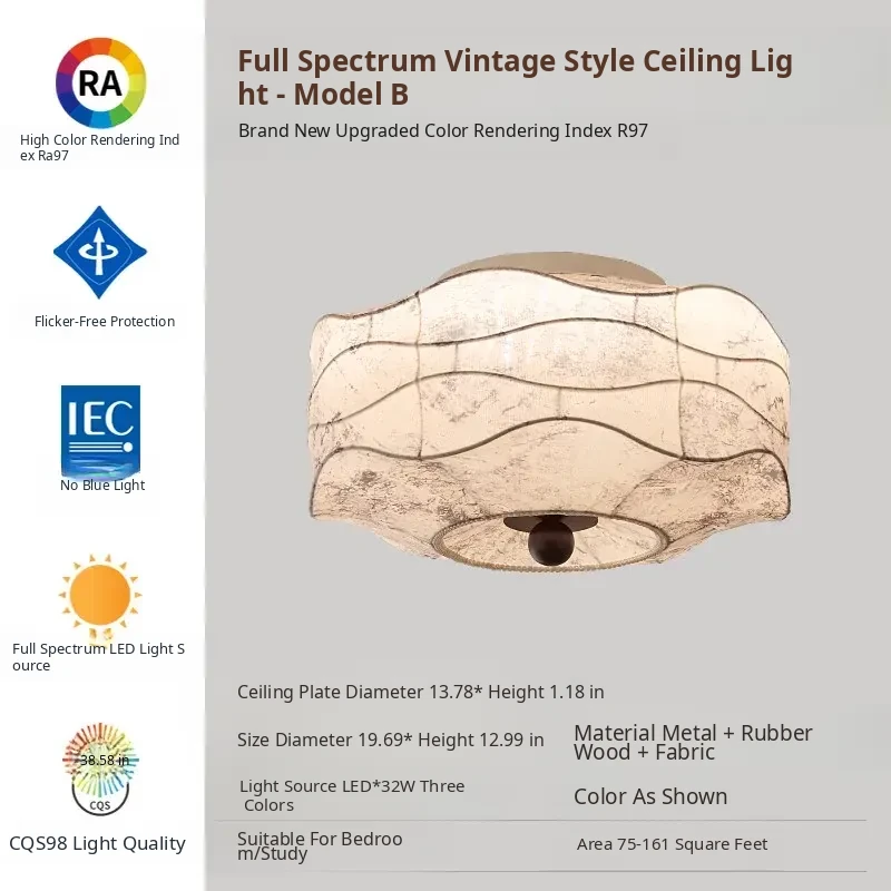 French Vintage Style Fabric Ceiling Light - Elegant New Chinese Design for Bedroom, Dining Room, and Study - Chic Patterned Shade Ceiling Fixture