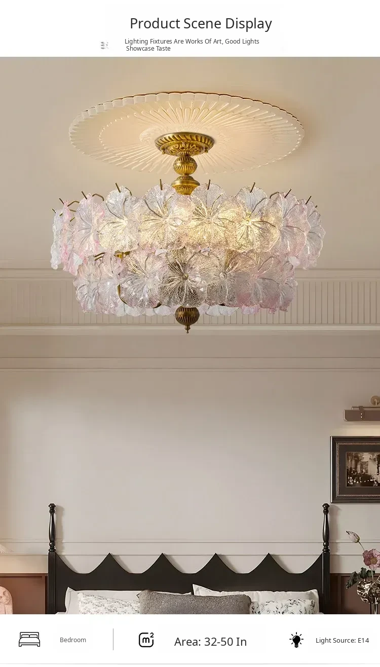 French-Inspired Elegant Glass Pendant Light - Chic American Style for Bedrooms and Dining Rooms, Creating a Luxurious Atmosphere in Your Home Office or Study.