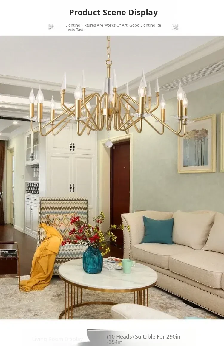 HuaJia American Style Pendant Light - Creative Minimalist Luxury Candle Crystal Chandelier for Living Room, Dining Room, and Bedroom - Elevate Your Space with Modern Elegance