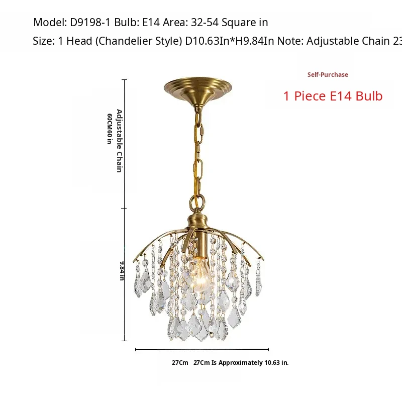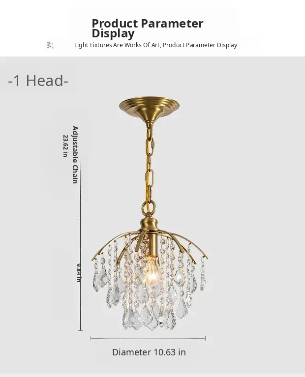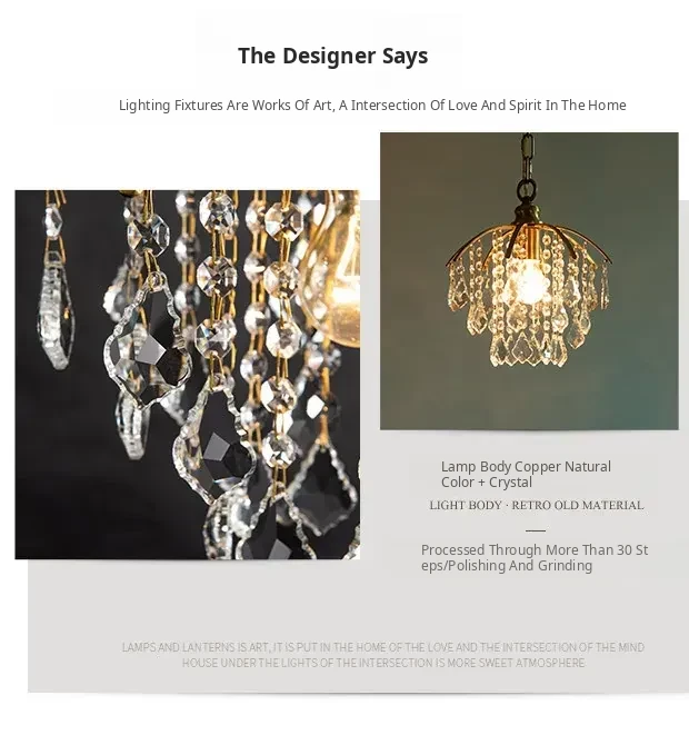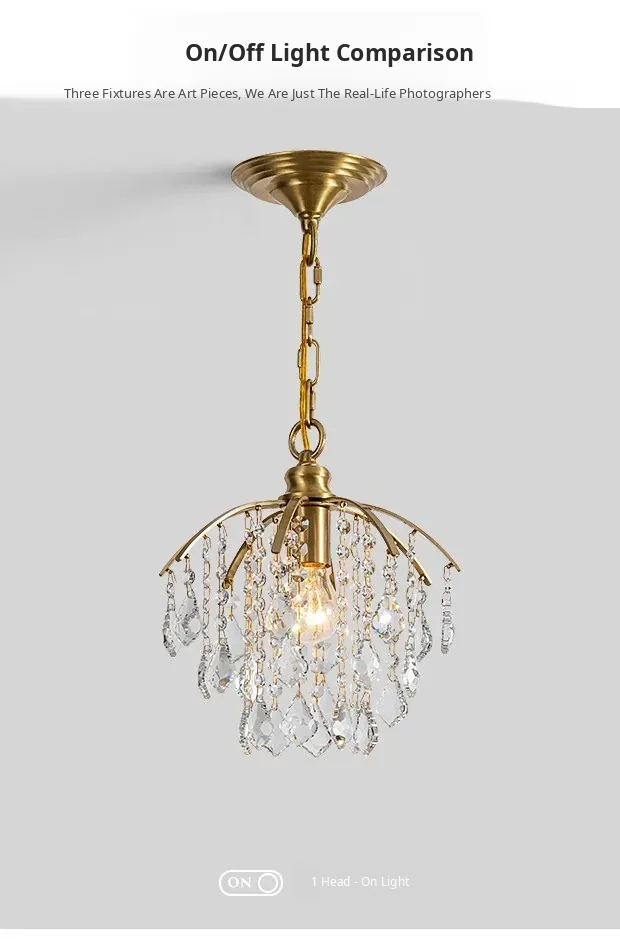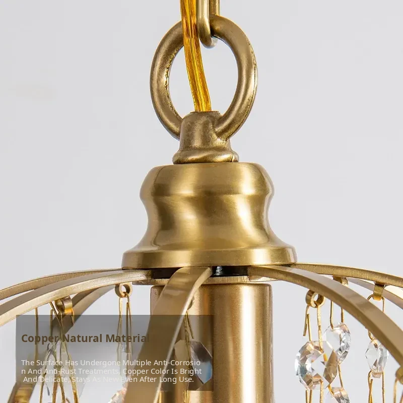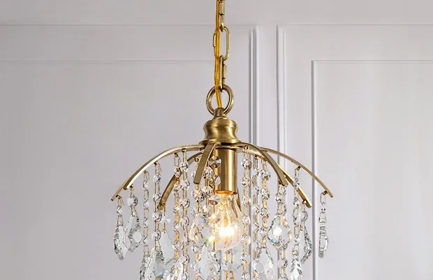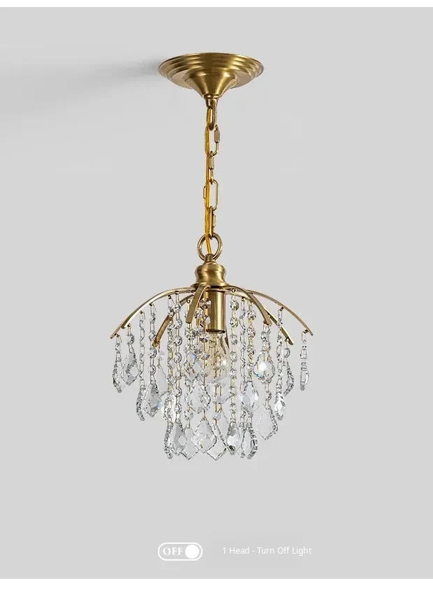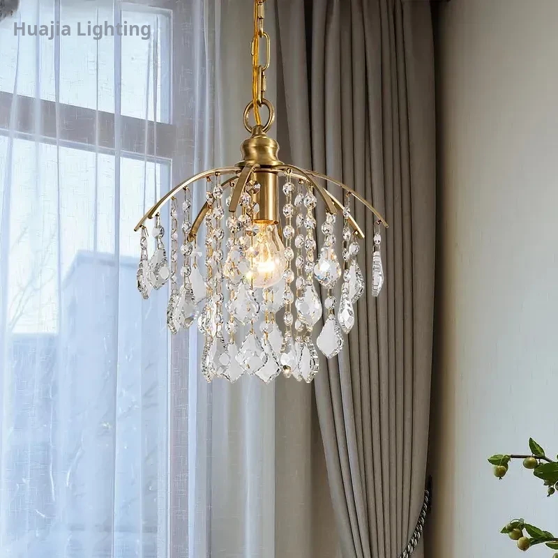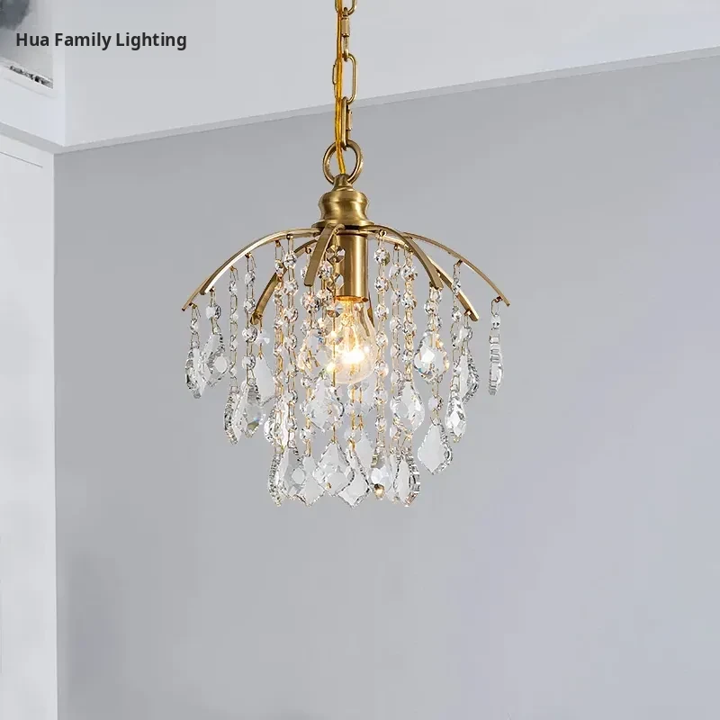 Modern American Luxury Crystal Mini Pendant Light - Chic French-Style Bedroom and Closet Lighting, Unique All-Copper Design for Study and Home Decor.
