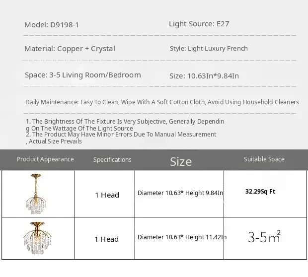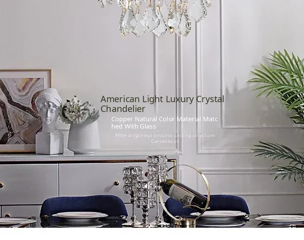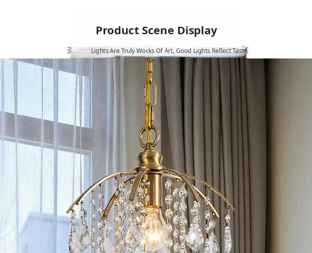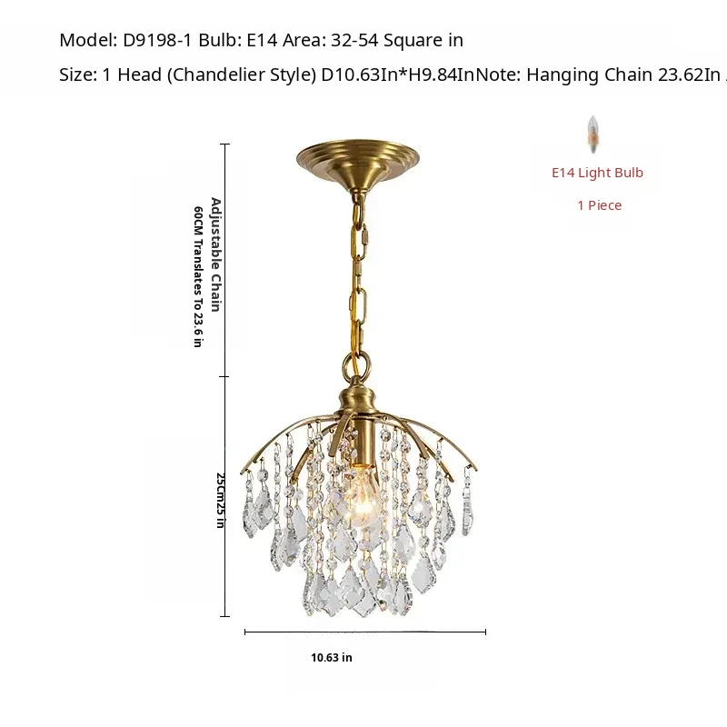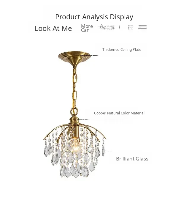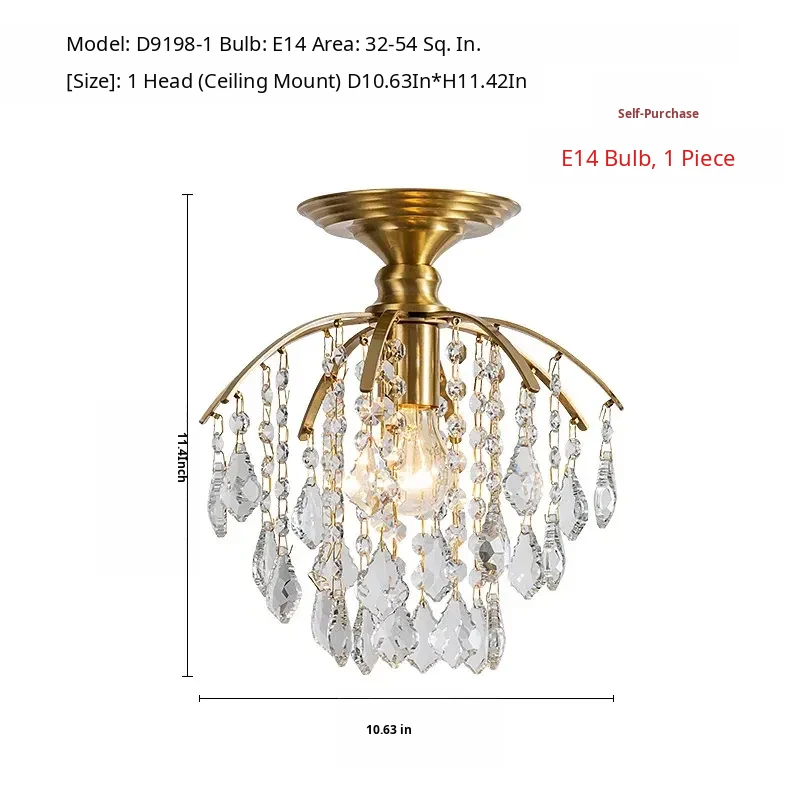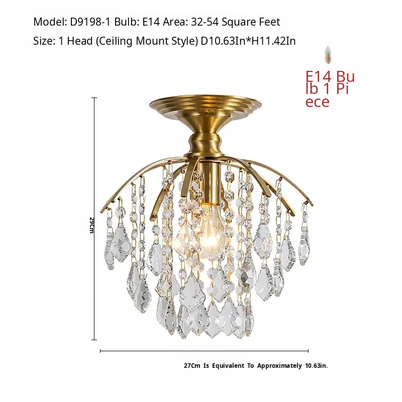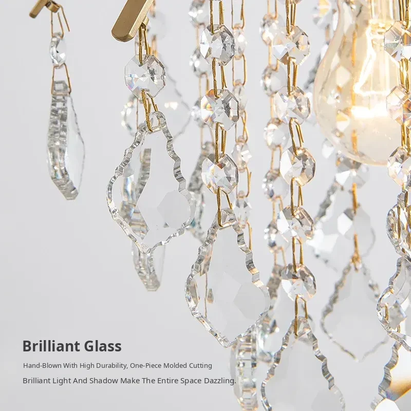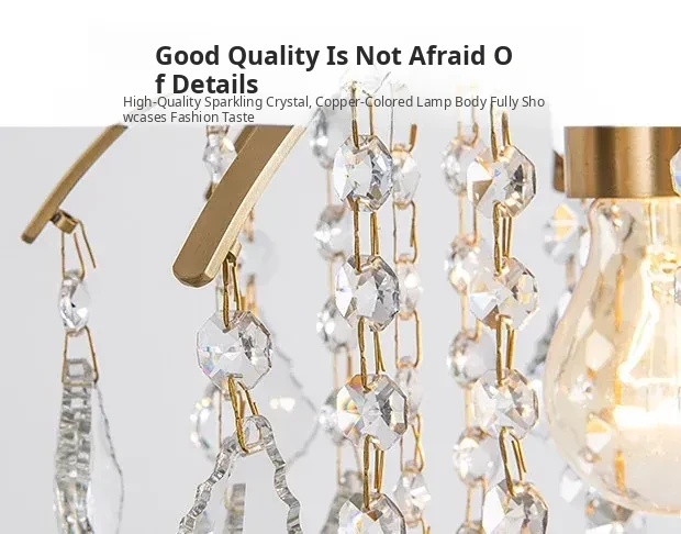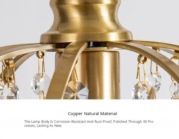 Modern American Luxury Crystal Mini Pendant Light - Chic French-Style Bedroom and Closet Lighting, Unique All-Copper Design for Study and Home Decor.