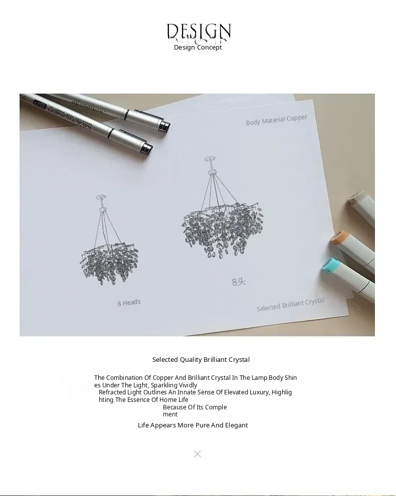D67*H32Cm [Pure Copper Lamp Body, 6 Heads]