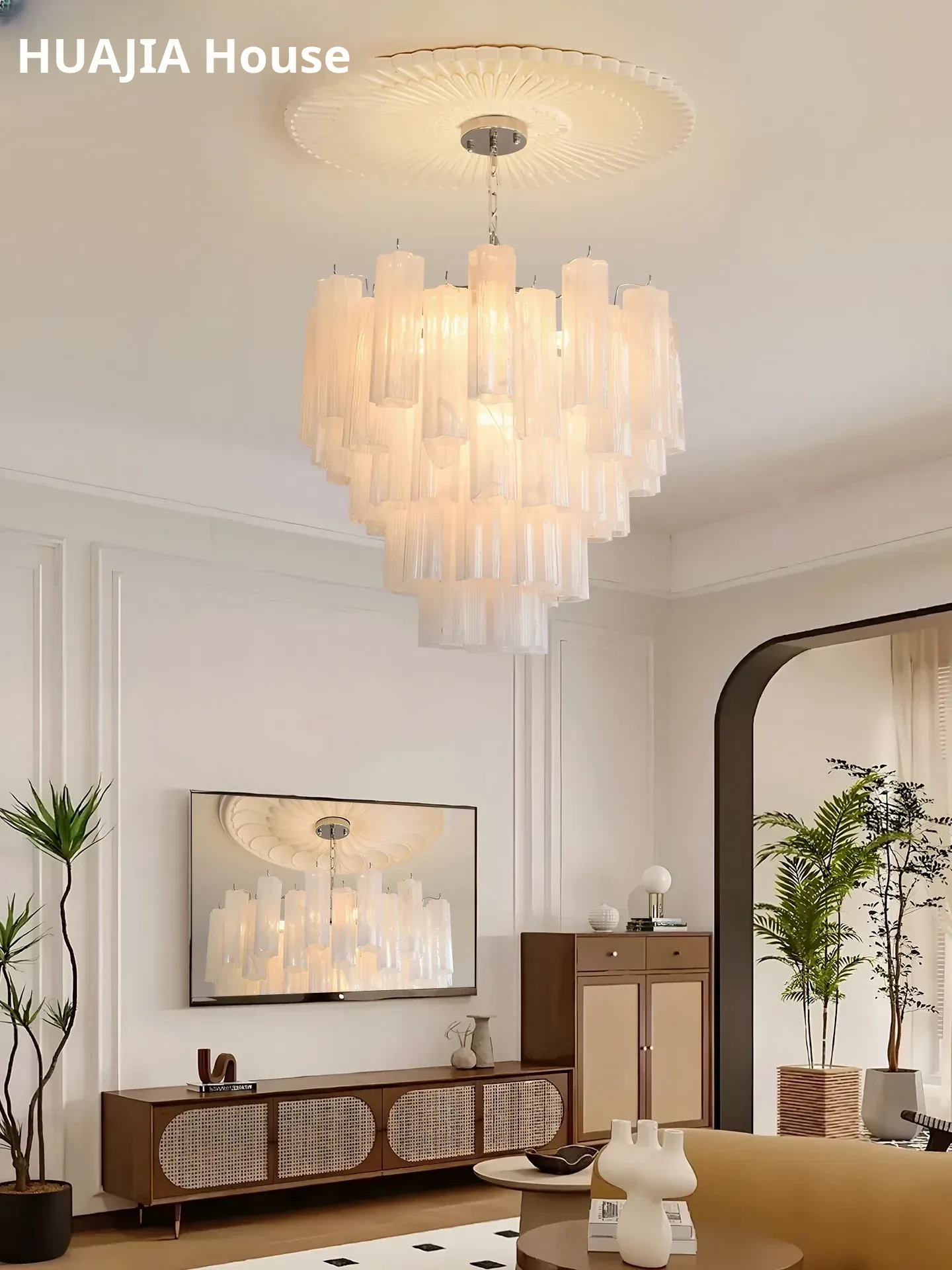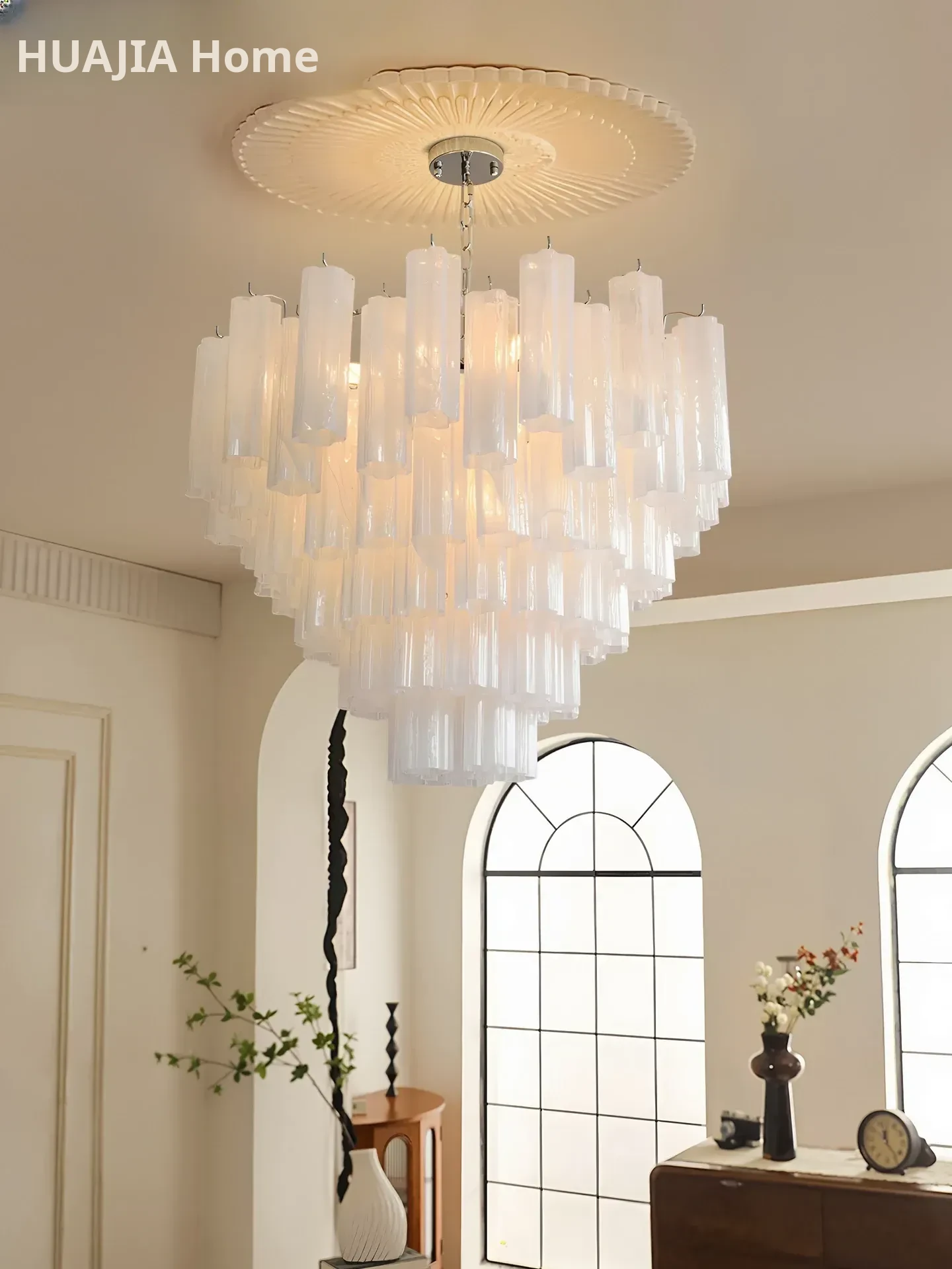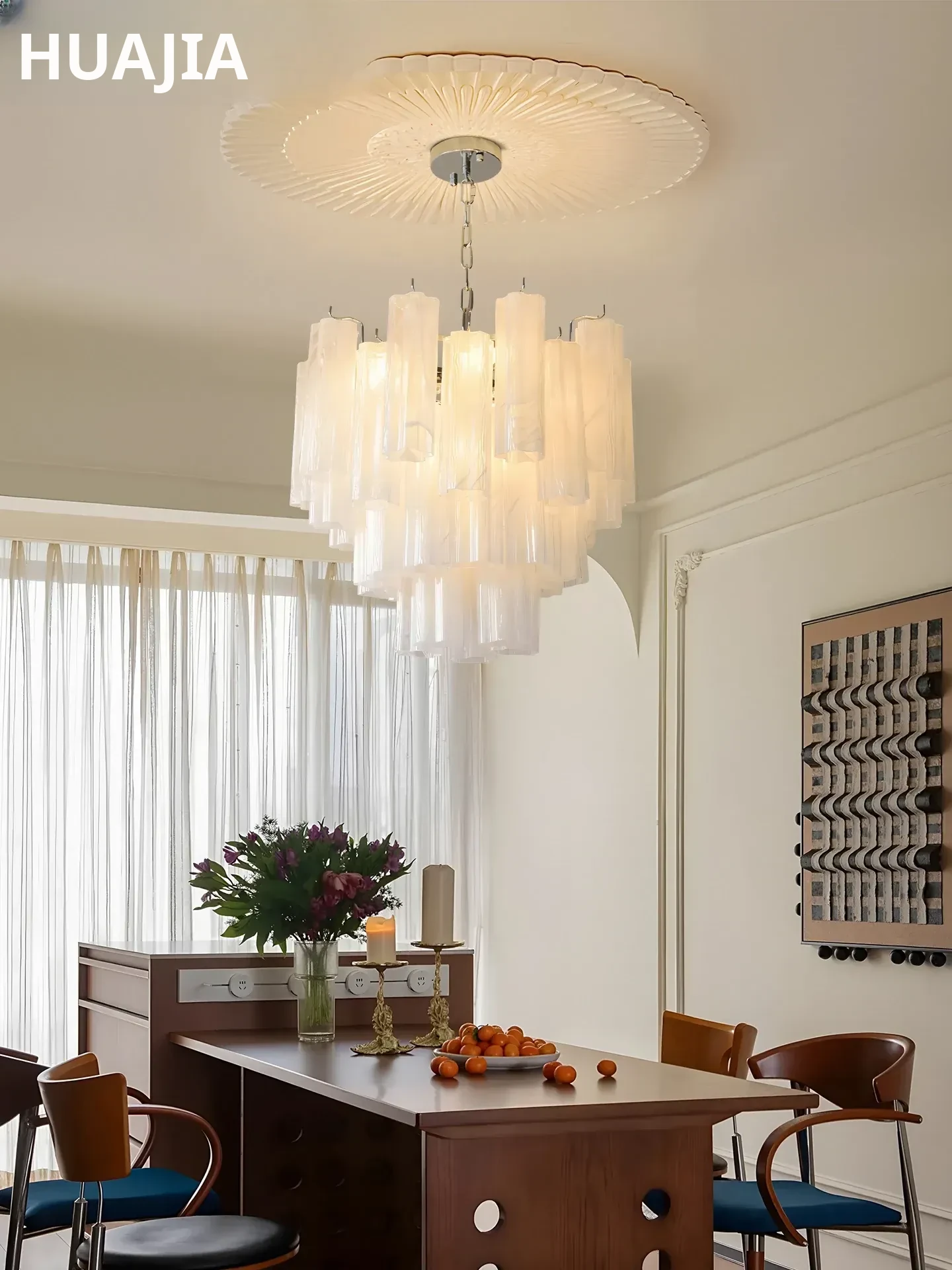 Modern French Elegant Pendant Light - Minimalist Cloud Glass Chandelier for Living Room, Stylish Atmosphere Lighting for Dining Room and Bedroom