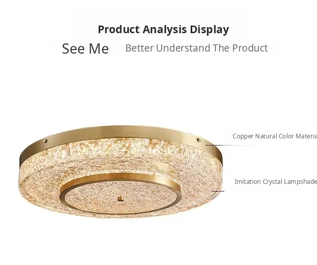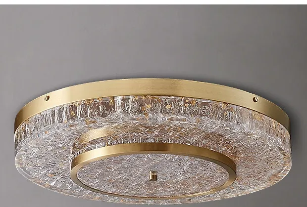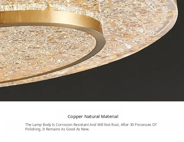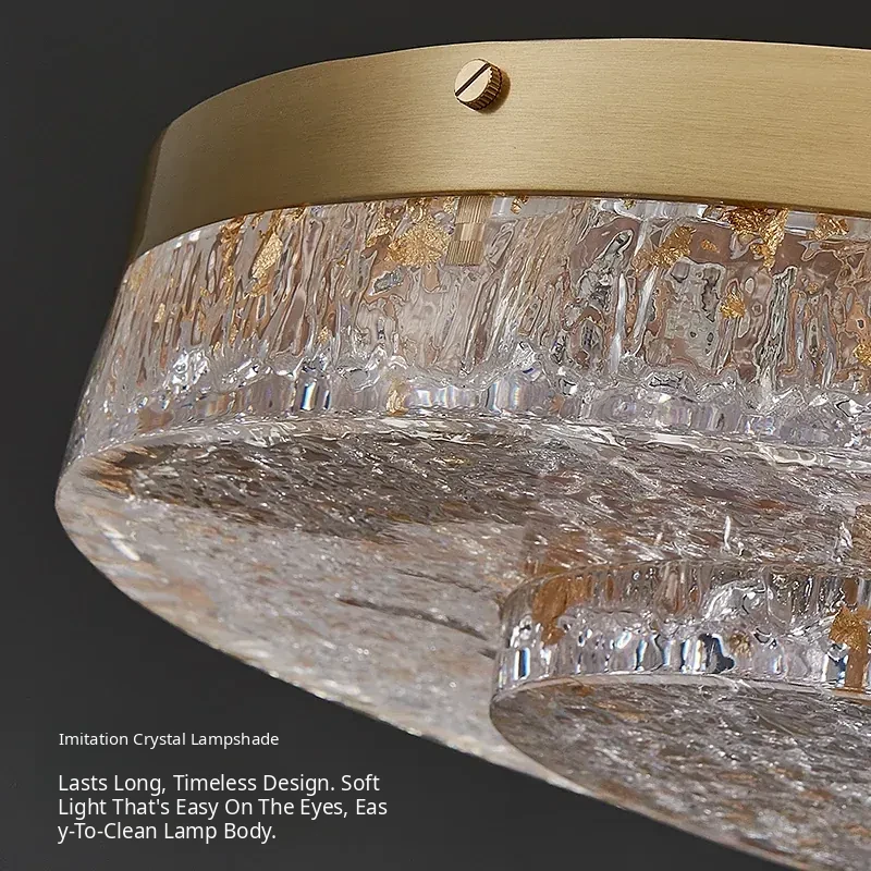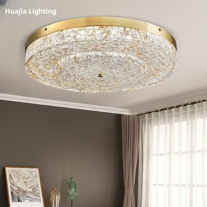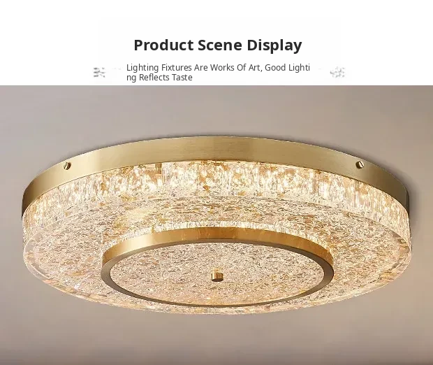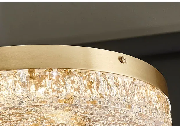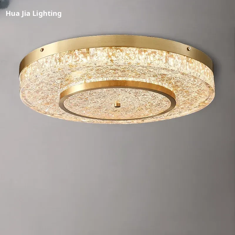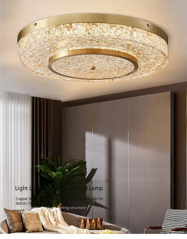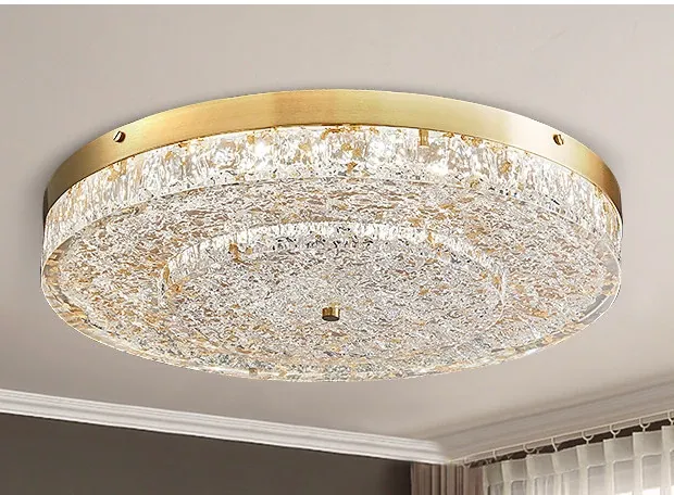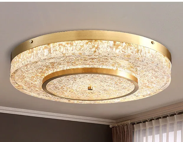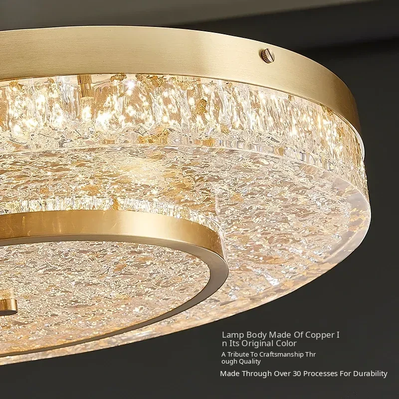 Modern Round Ceiling Light for Living Room, Elegant Crystal Glass Copper Fixture for Bedroom and Study, Stylish Dining Room Lighting - Perfect Blend of Luxury and Sophistication