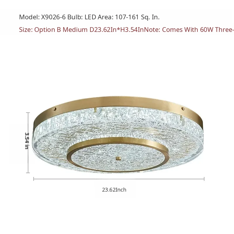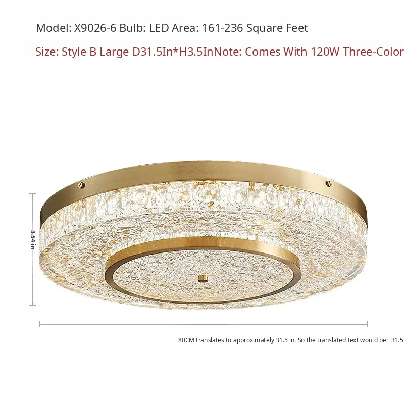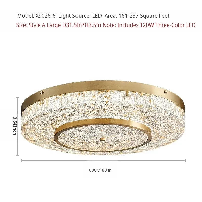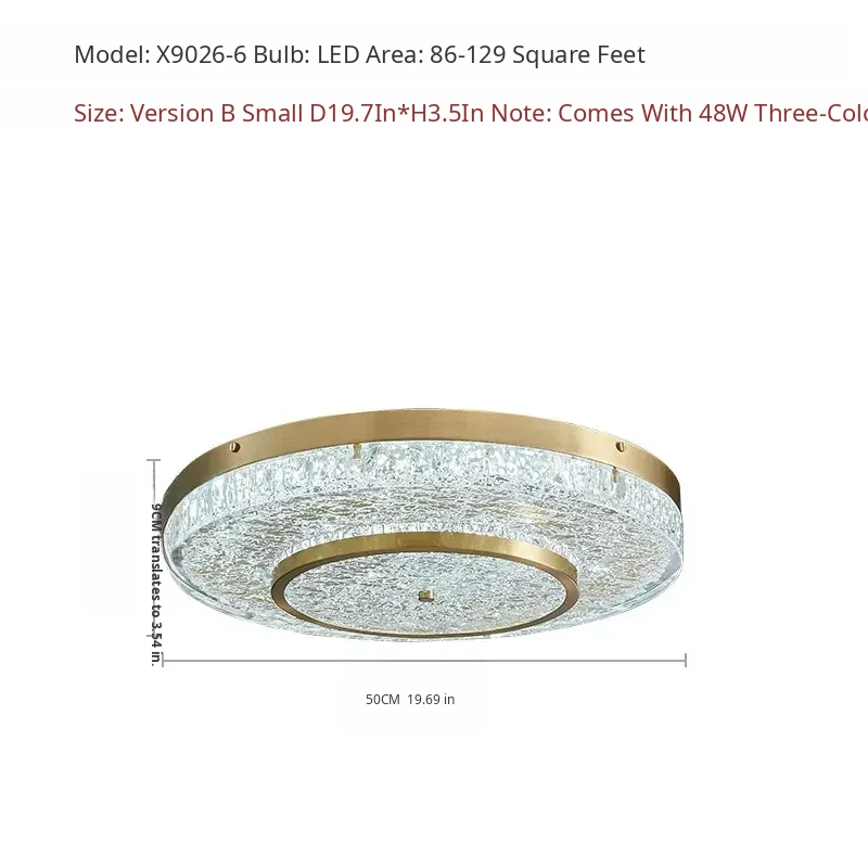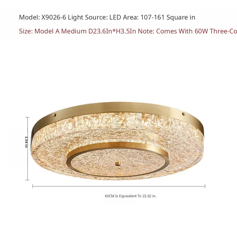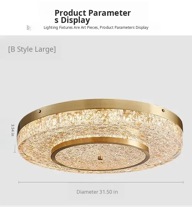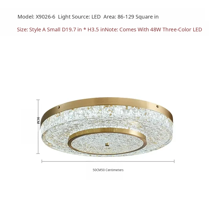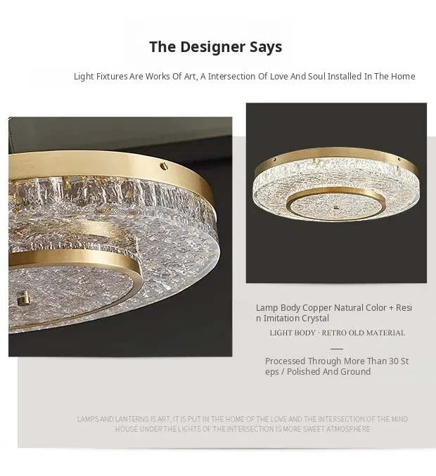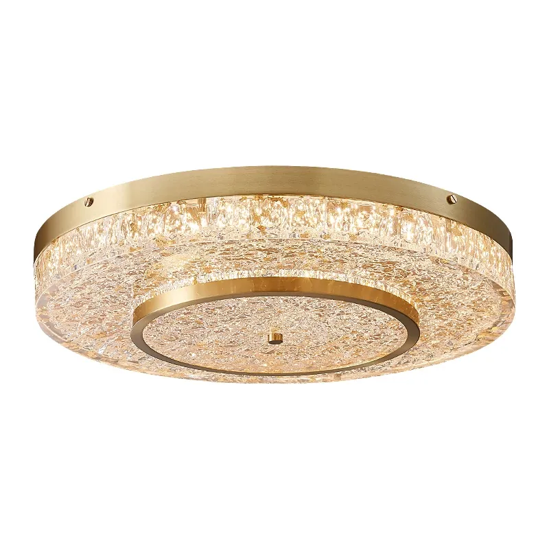 Modern Round Ceiling Light for Living Room, Elegant Crystal Glass Copper Fixture for Bedroom and Study, Stylish Dining Room Lighting - Perfect Blend of Luxury and Sophistication