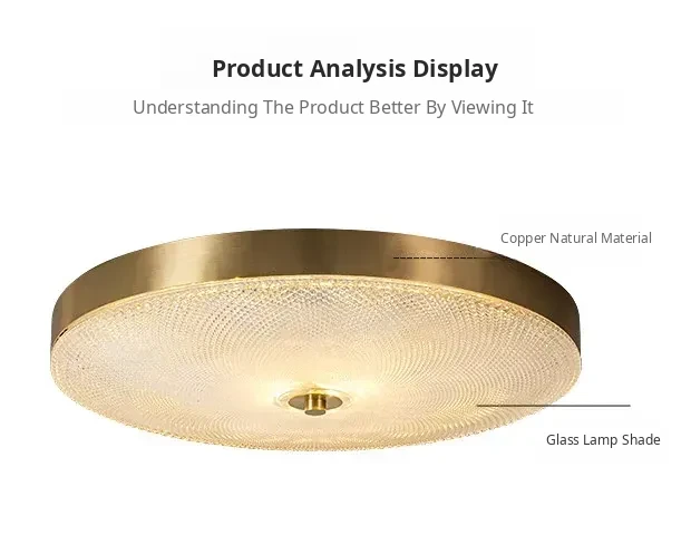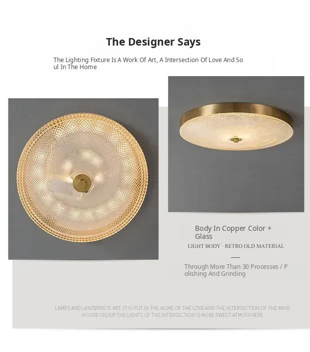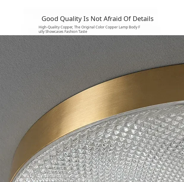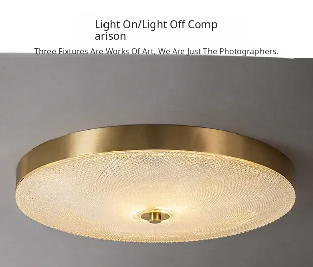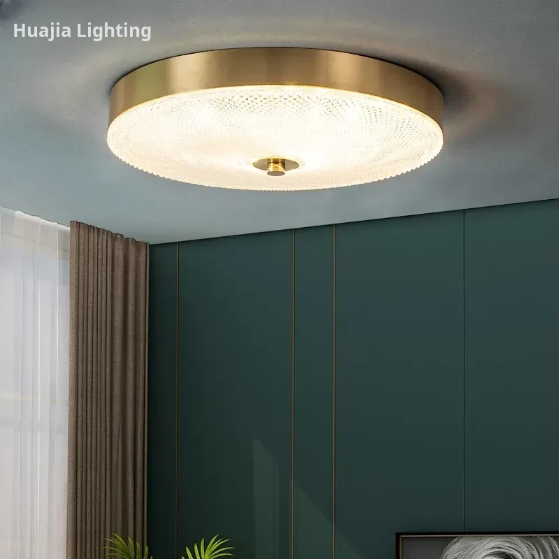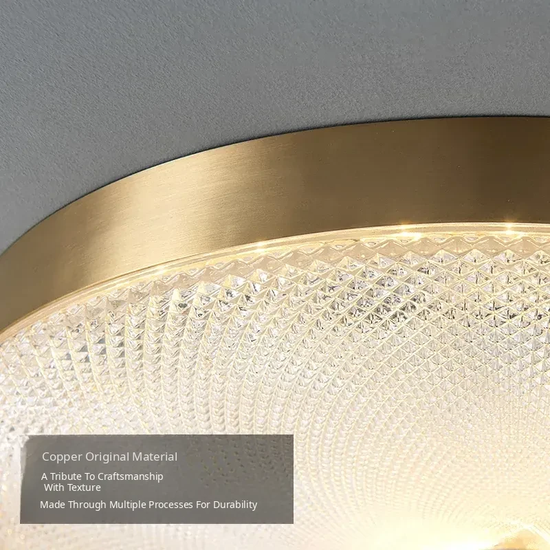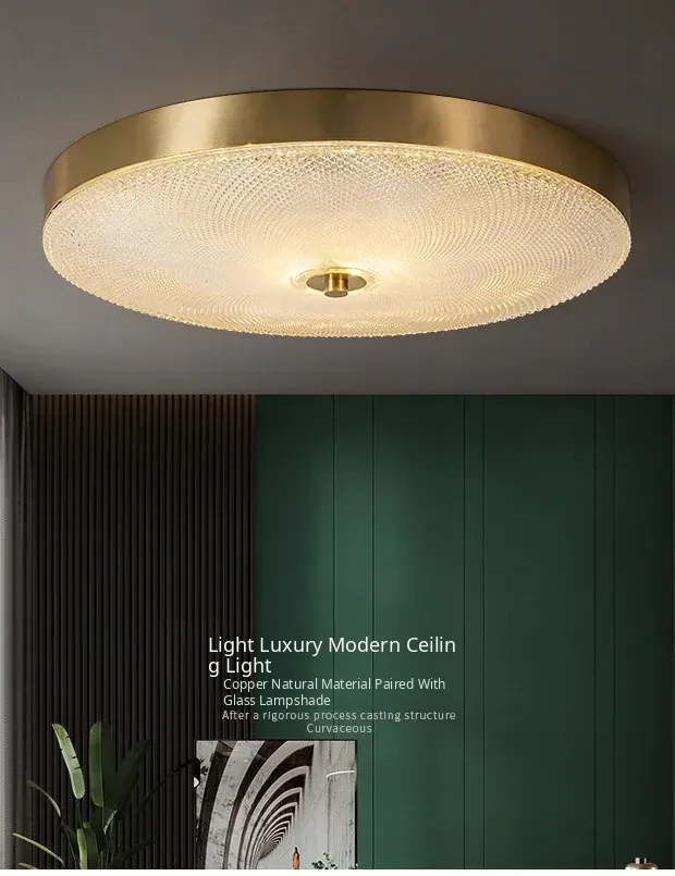 Nordic Style Ceiling Light - Luxurious Minimalist Modern Design for Bedroom and Study, American Full Copper, Elegant Round Ultra-Thin LED Fixture