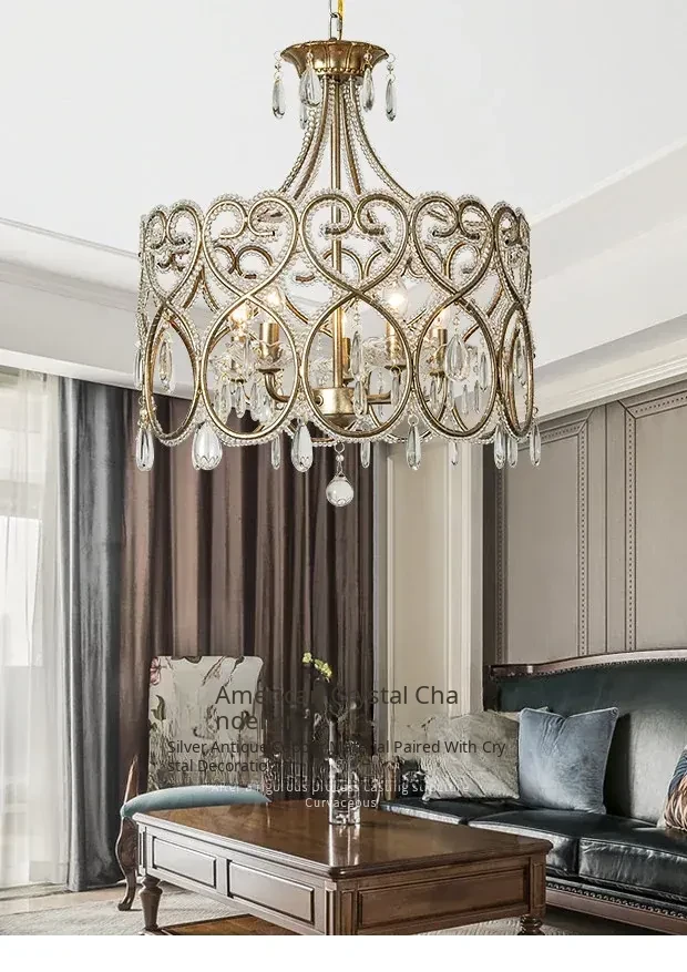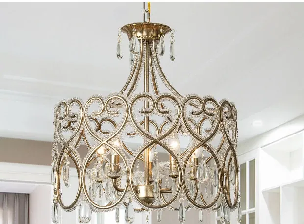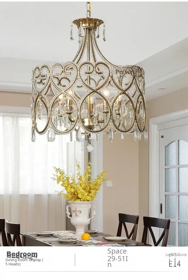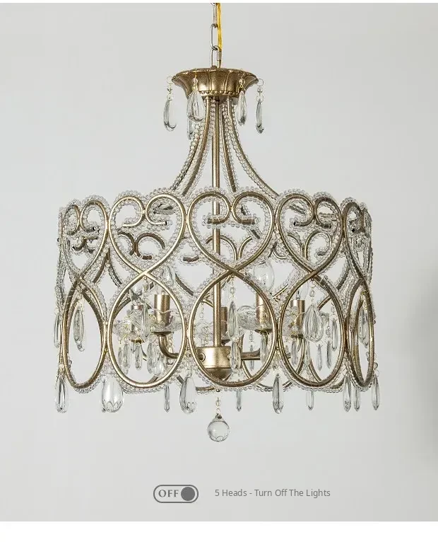 Romantic Heart-Shaped French Crystal Chandelier - Charming American Style Lighting for Bedroom, Living Room, and Dining Room; Perfect for Princess-Themed Spaces!