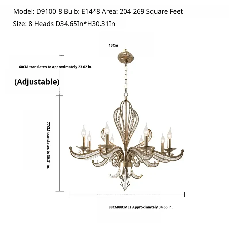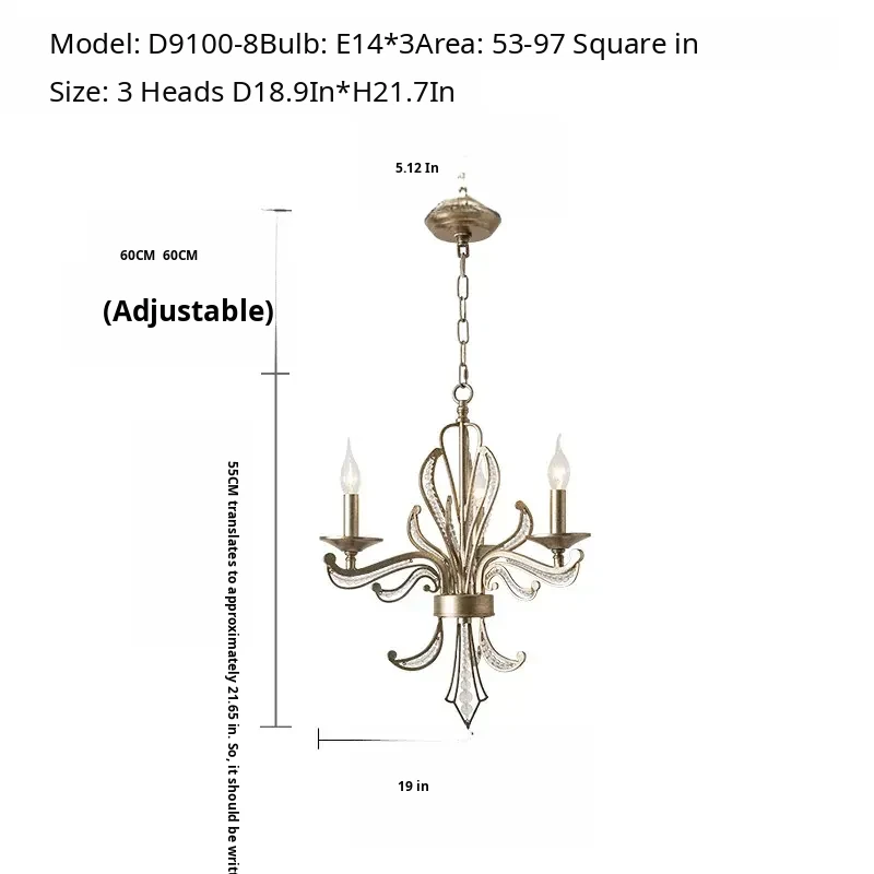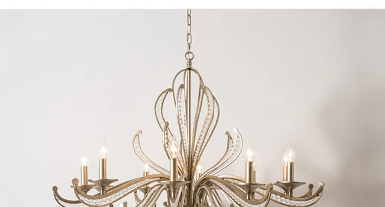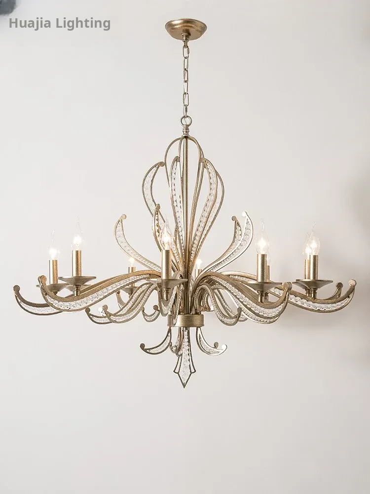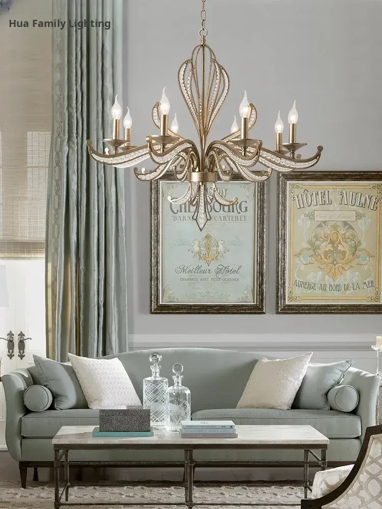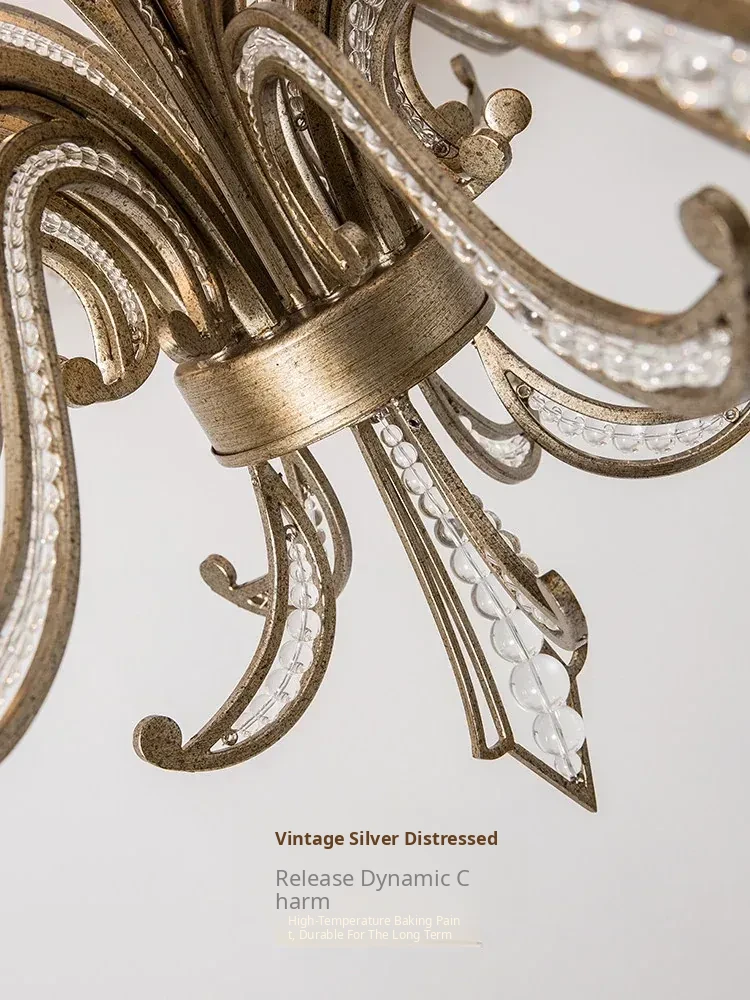 Rustic American Country Chandelier - Creative French Style Vintage Silver Pendant Light for Living Room, Dining Room, Bedroom, and Study - Elegant Crystal Lighting Fixture