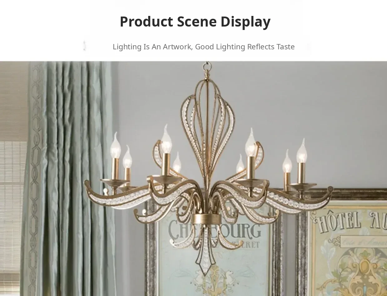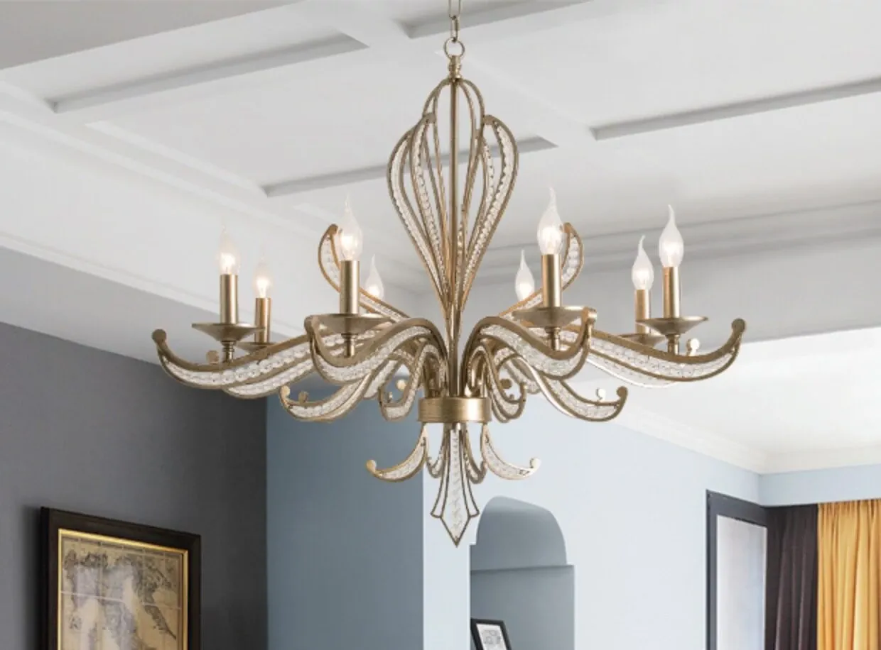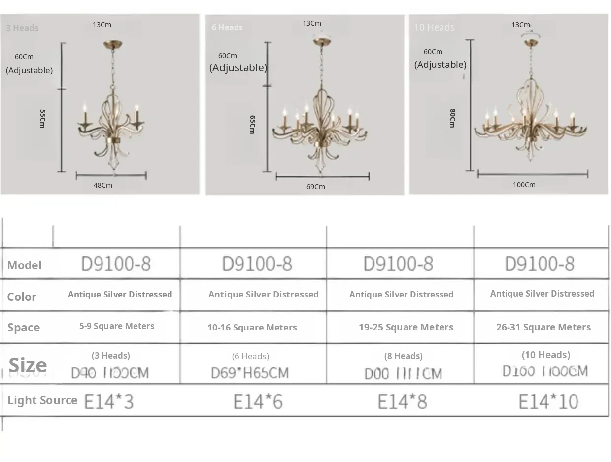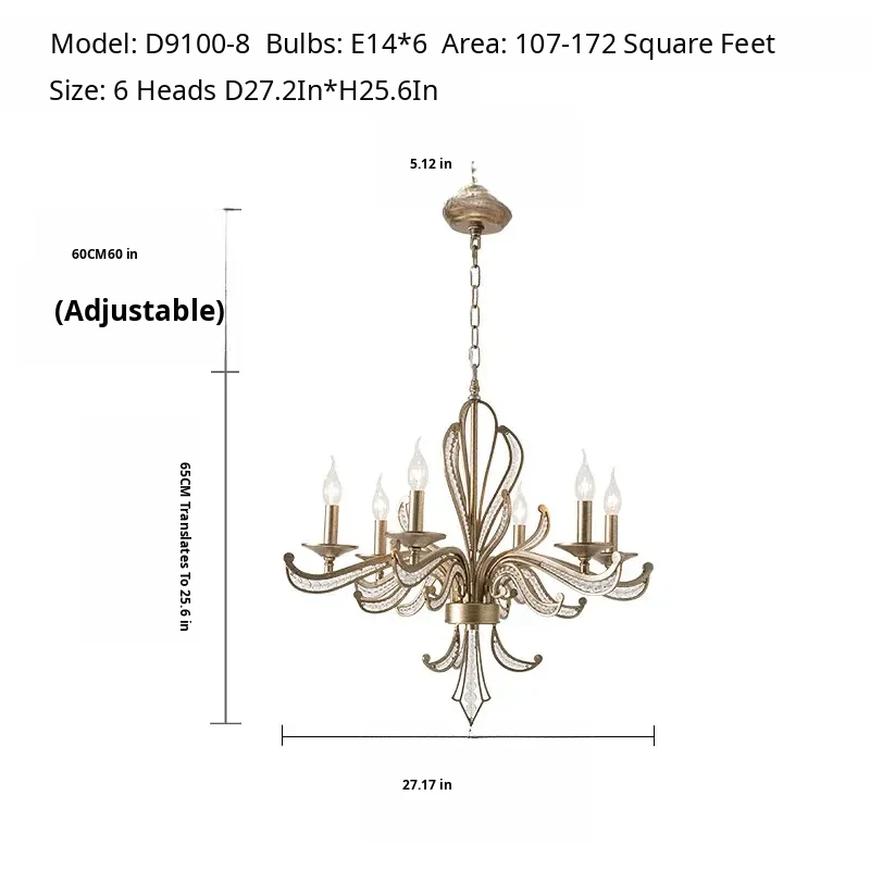 Rustic American Country Chandelier - Creative French Style Vintage Silver Pendant Light for Living Room, Dining Room, Bedroom, and Study - Elegant Crystal Lighting Fixture