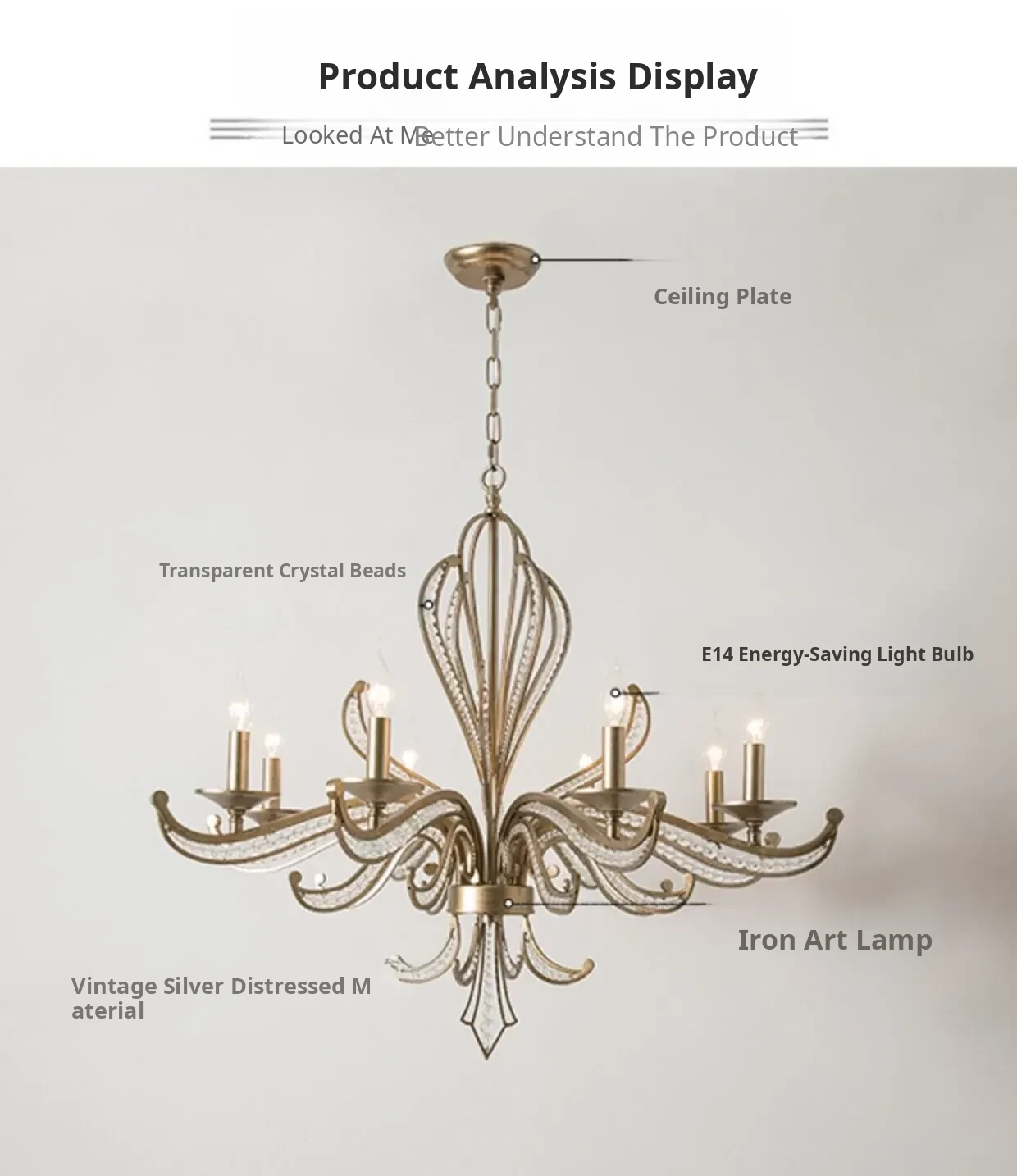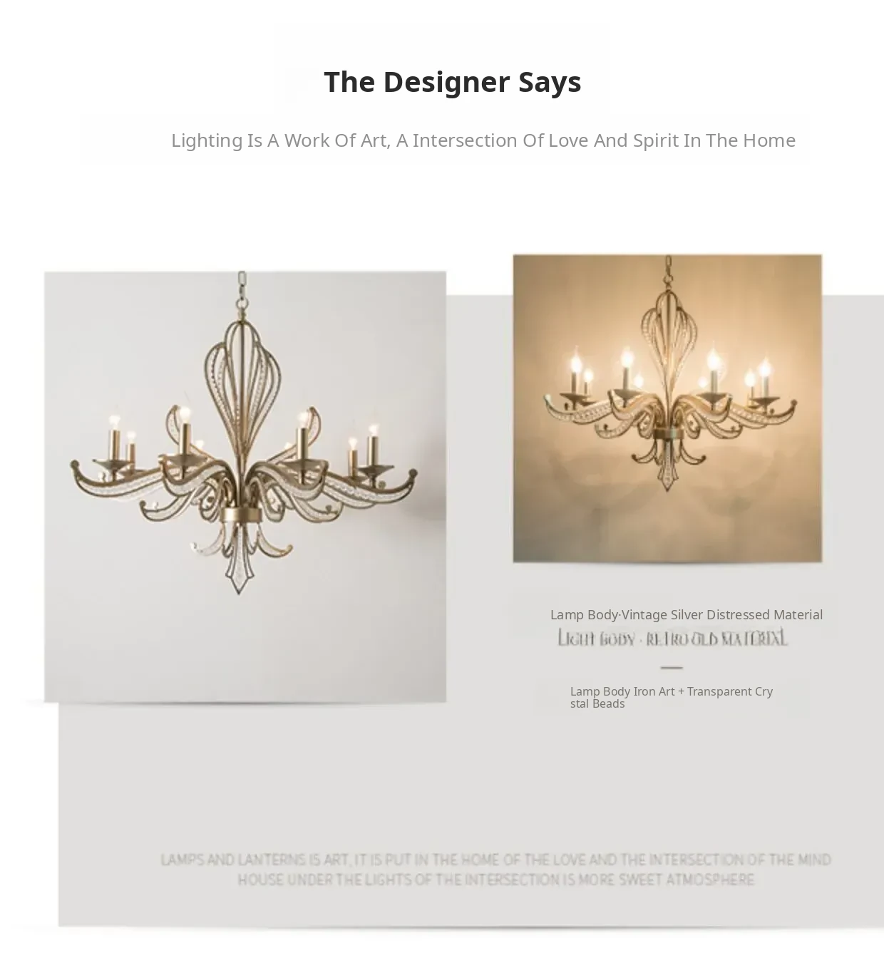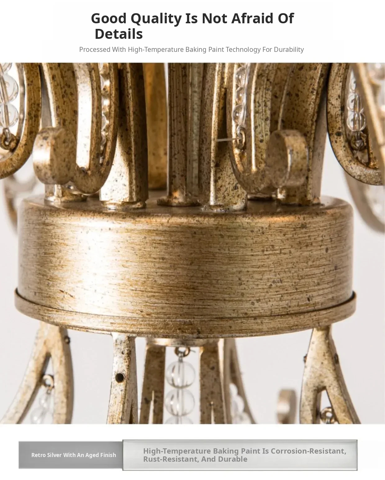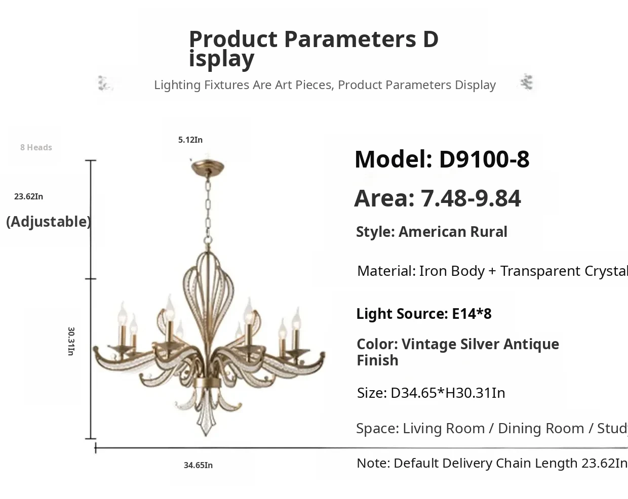 Rustic American Country Chandelier - Creative French Style Vintage Silver Pendant Light for Living Room, Dining Room, Bedroom, and Study - Elegant Crystal Lighting Fixture
