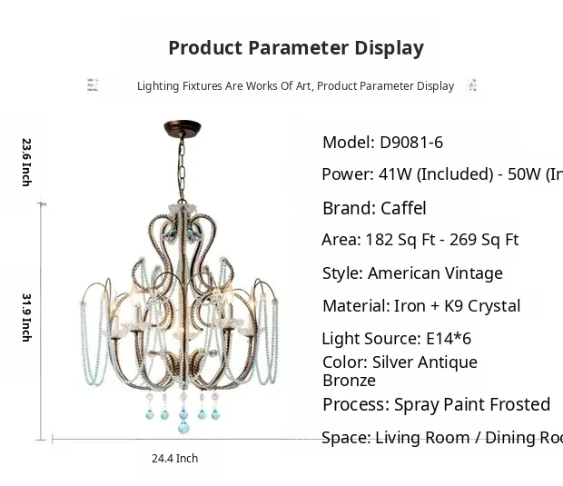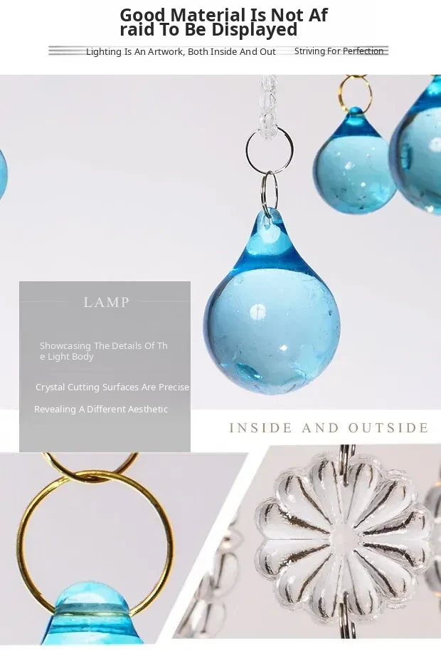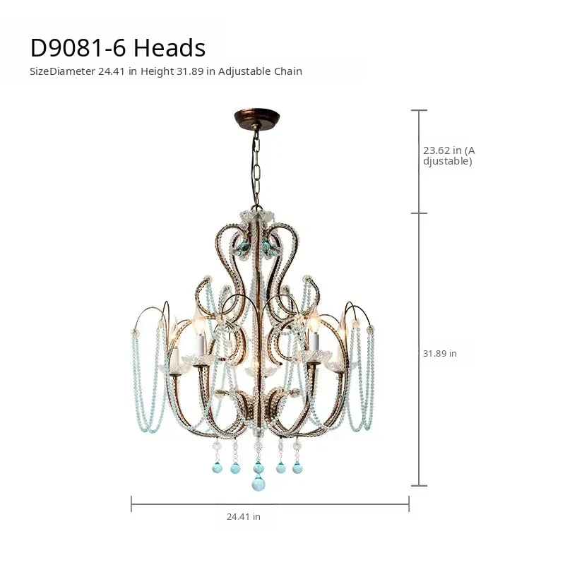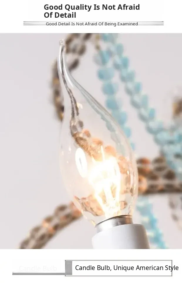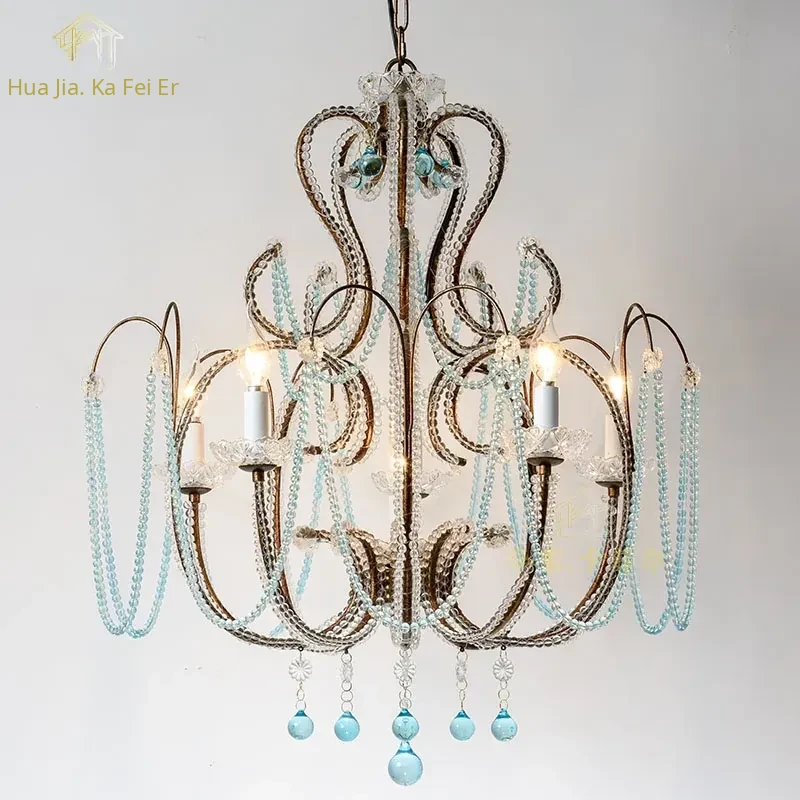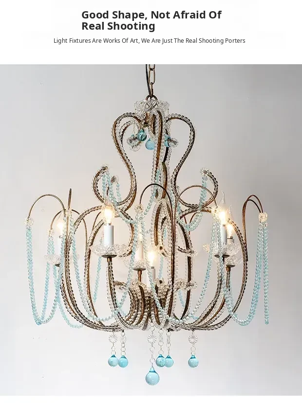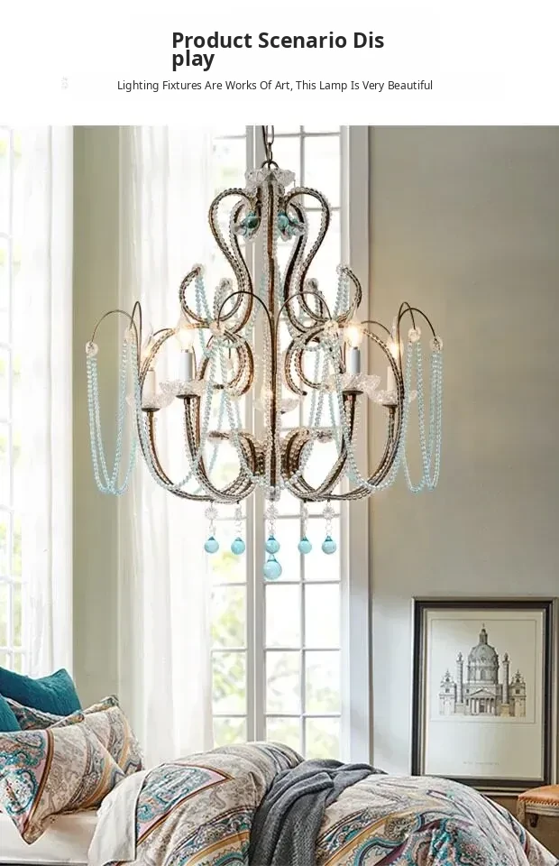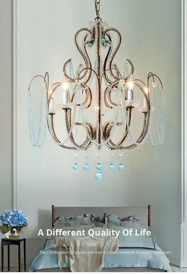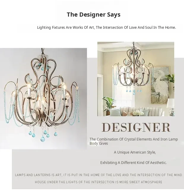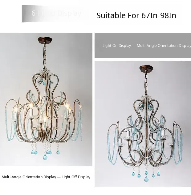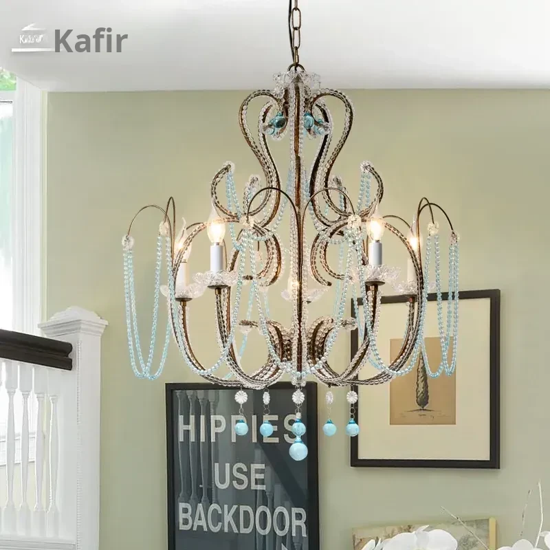 Rustic American Style Blue Crystal Chandelier - Modern Creative Art Light Fixture for Living Room, Cafés, and Dining Rooms - Unique Vintage Design to Enhance Your Space