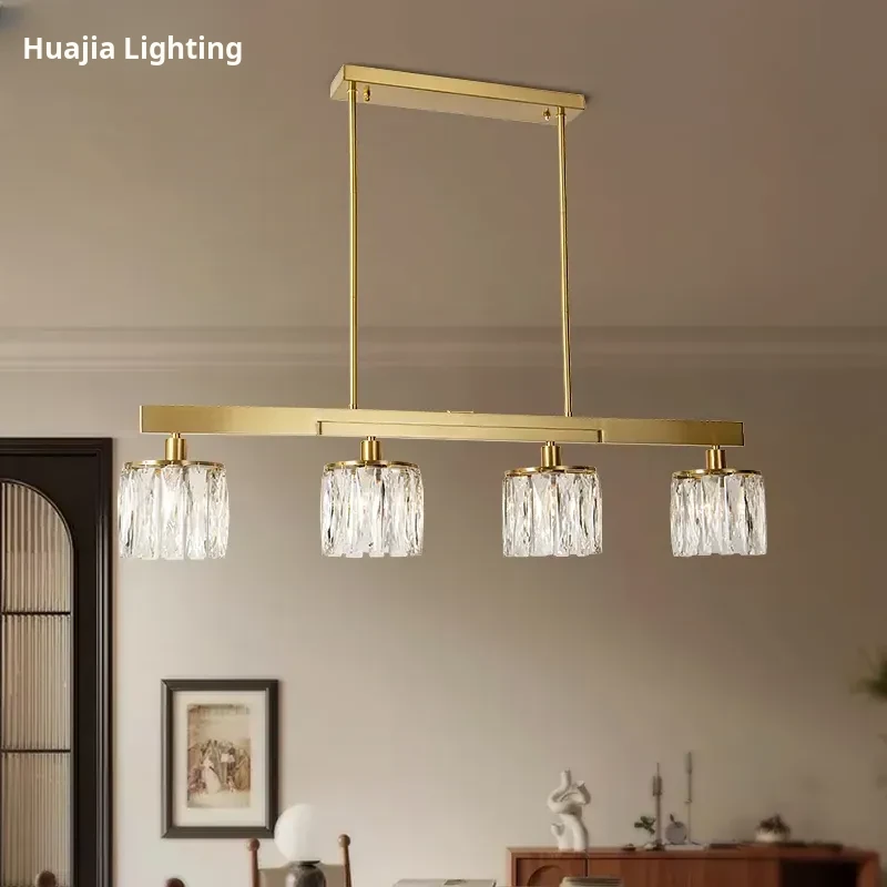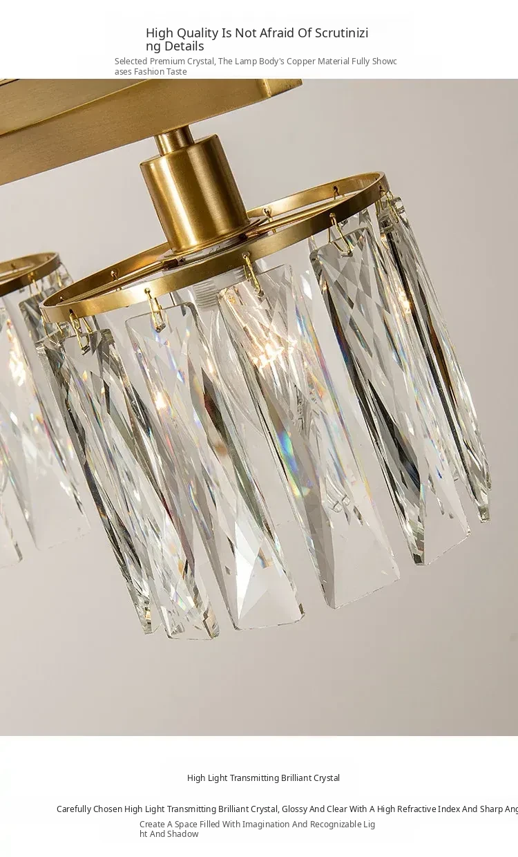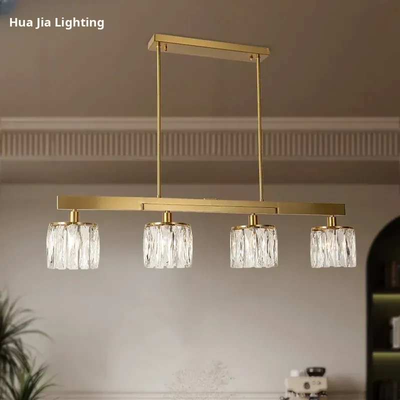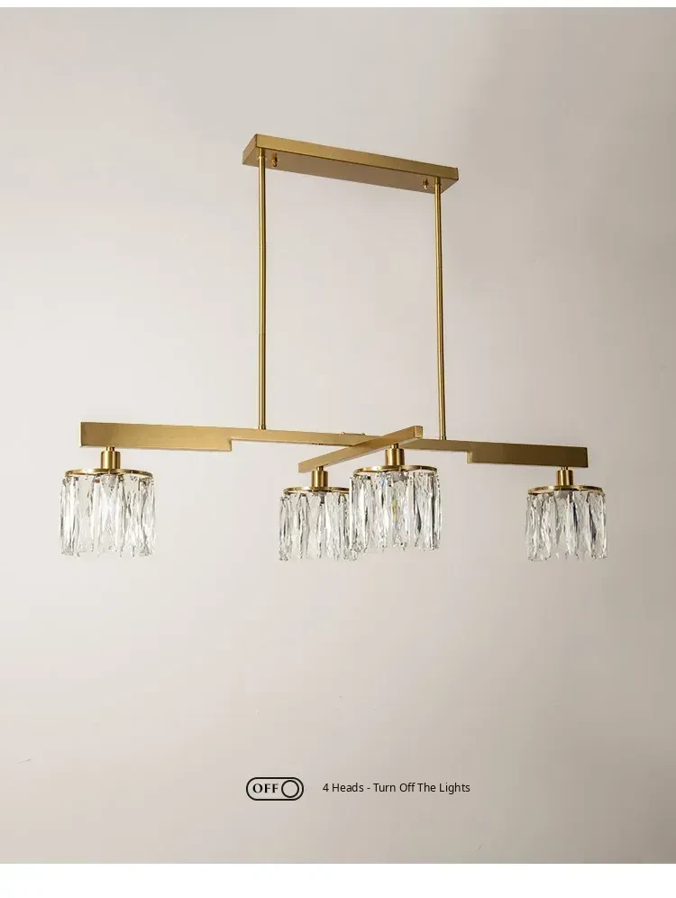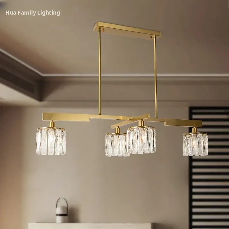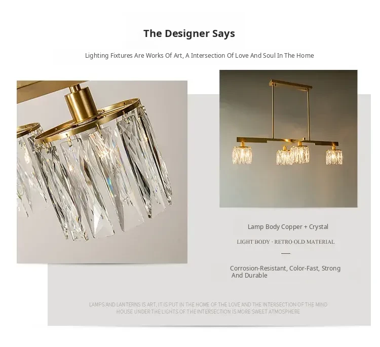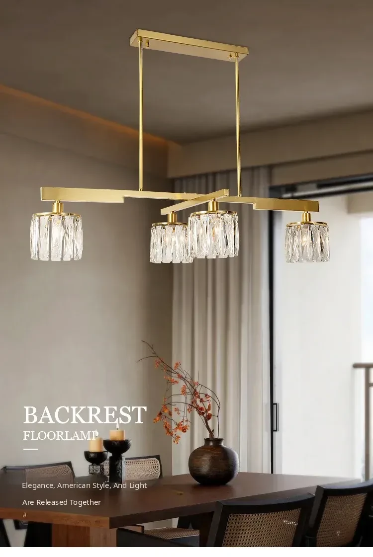 Stylish American-Style All-Copper Rectangular Dining Room Chandelier - Elegant Crystal Linear Light Fixture for Dining Tables and Dining Areas