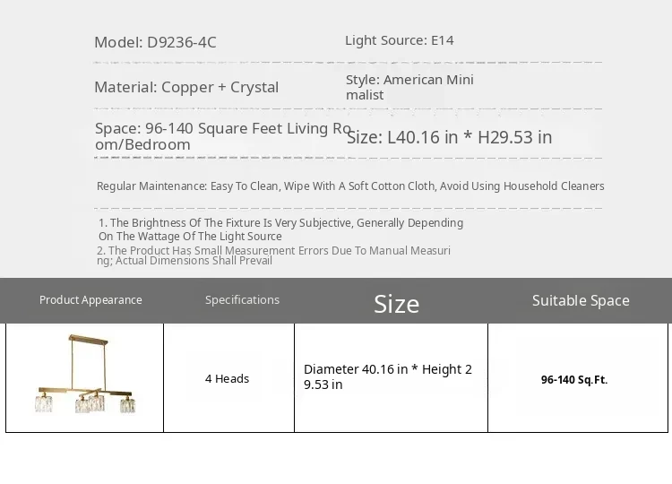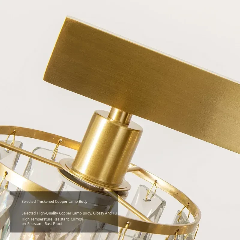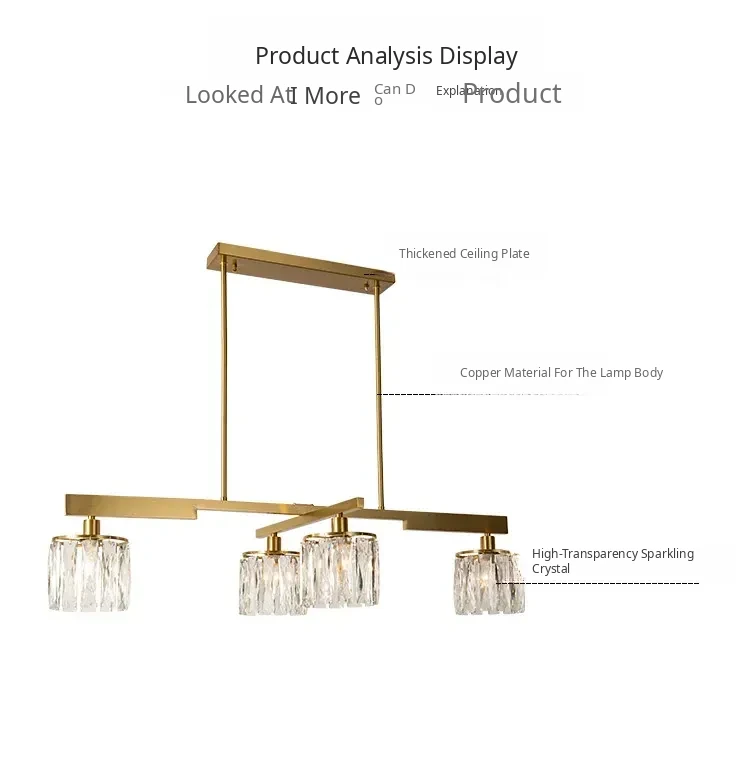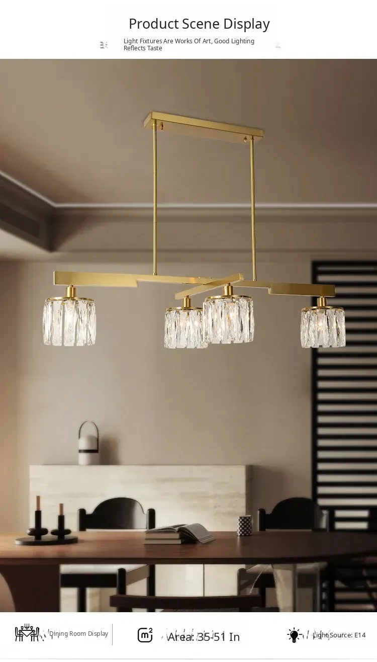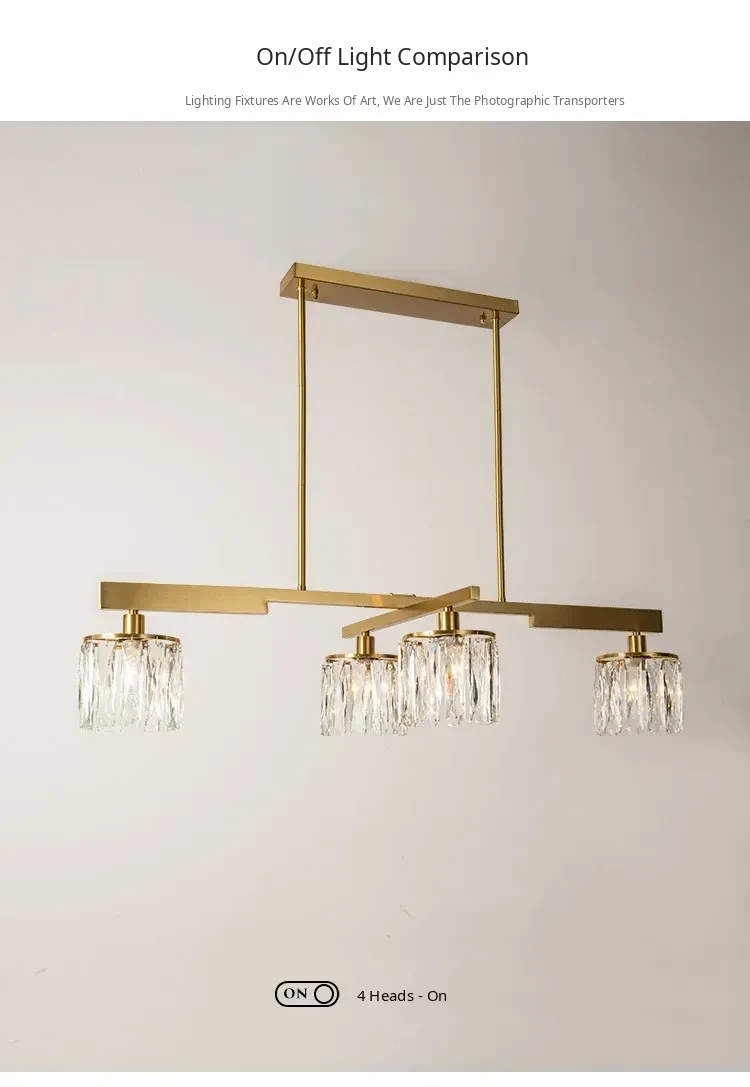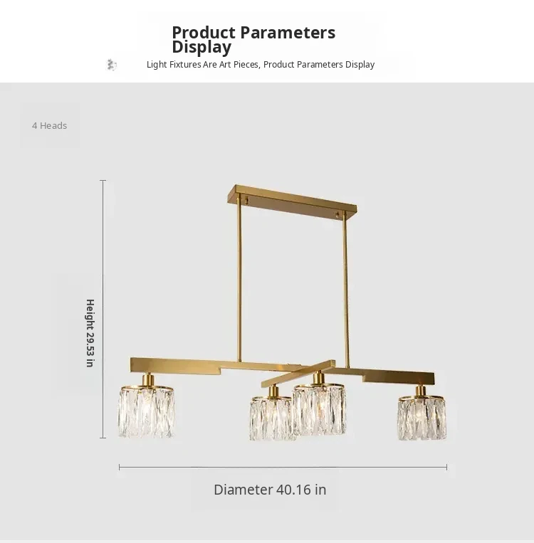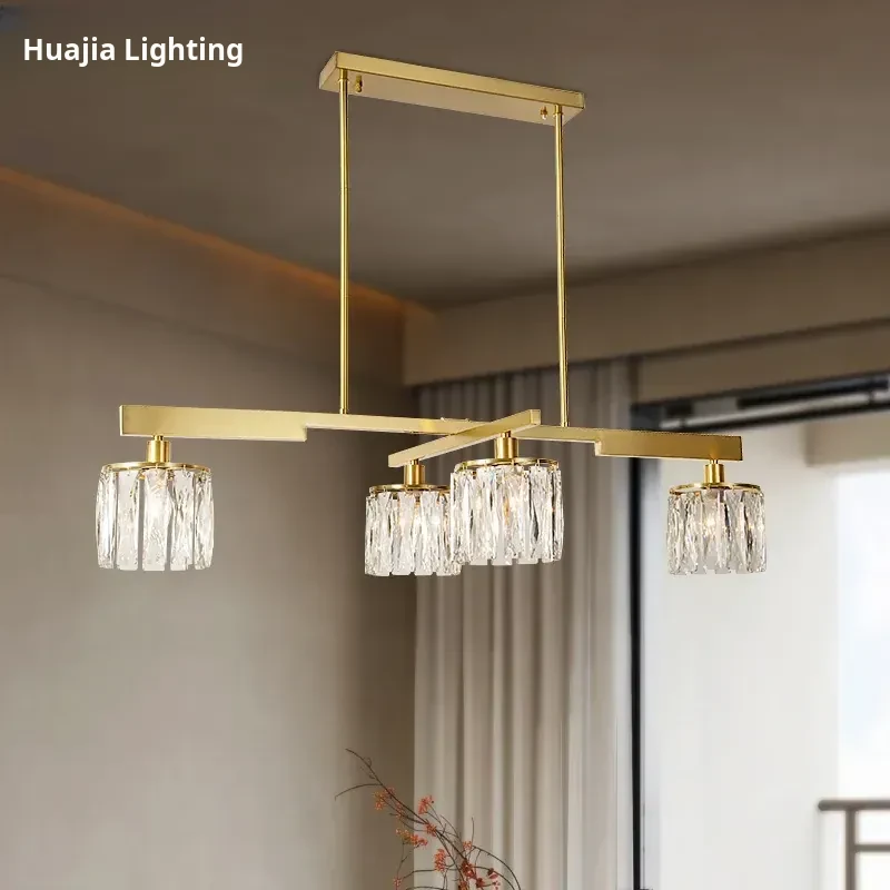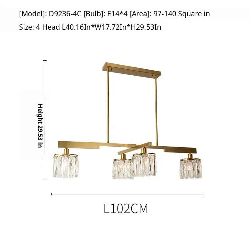 Stylish American-Style All-Copper Rectangular Dining Room Chandelier - Elegant Crystal Linear Light Fixture for Dining Tables and Dining Areas