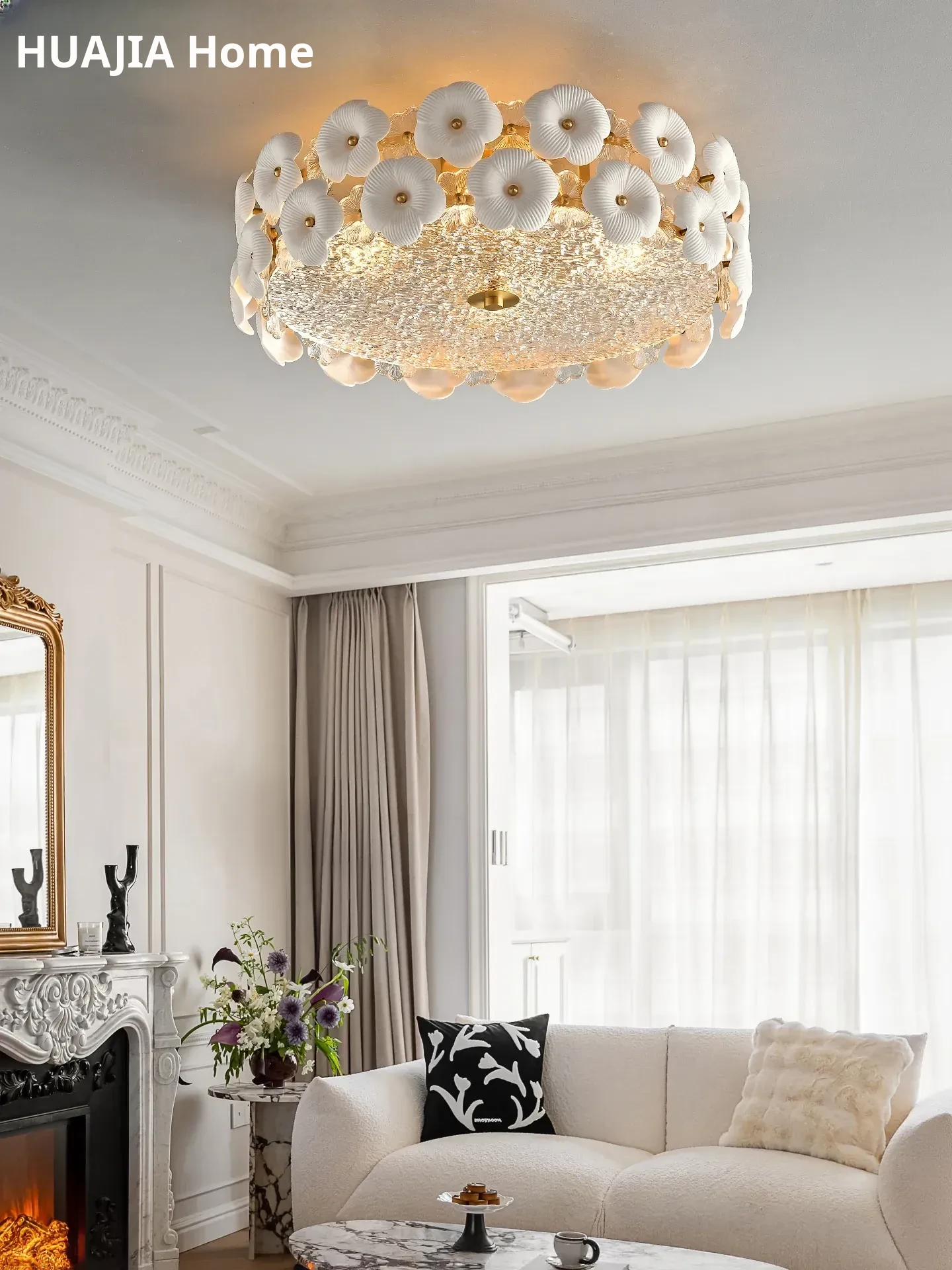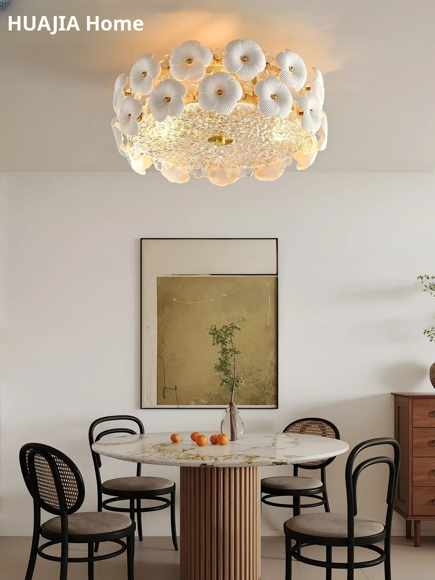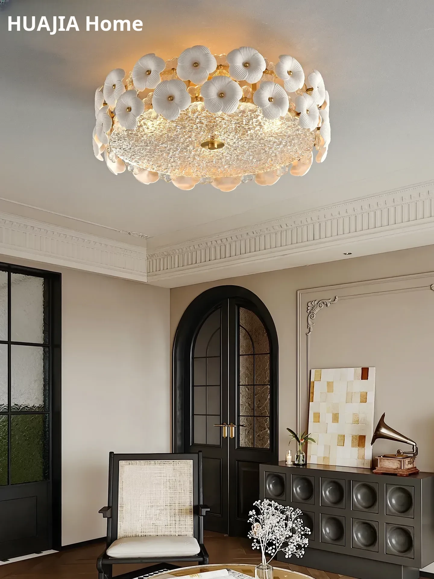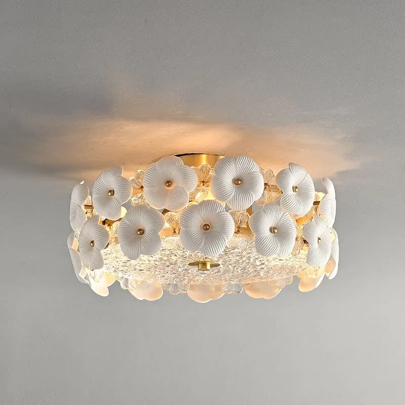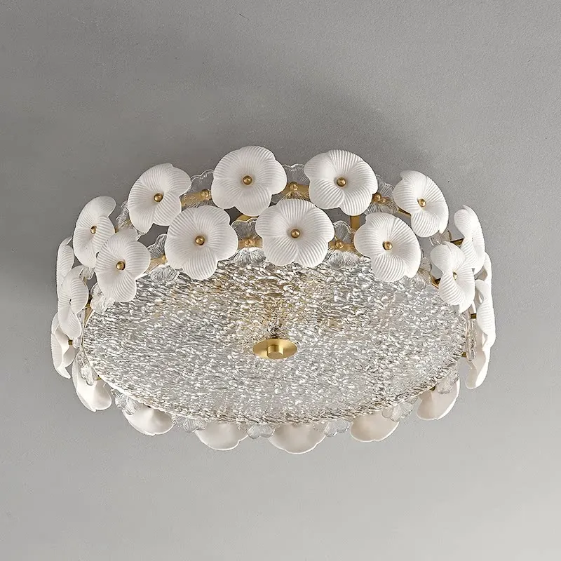 Stylish French Ceiling Light - Creative Ceramic & Glass Design for Bedroom, Study, and Dining Room - Premium All-Copper Fixture for Modern Homes