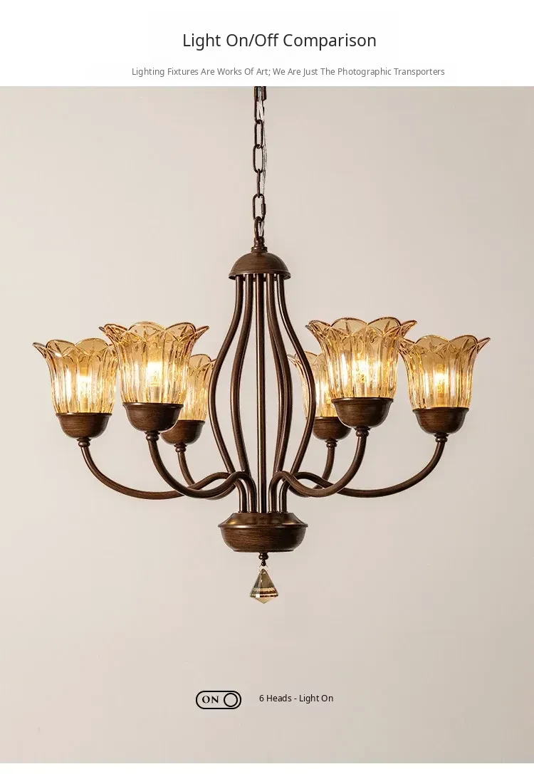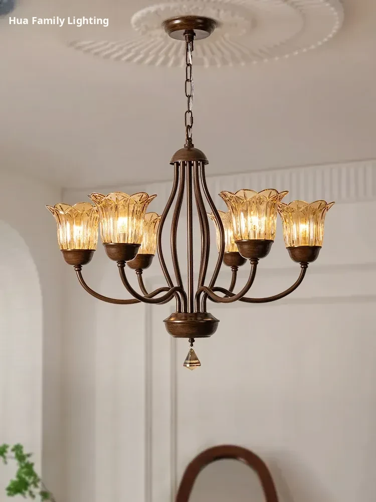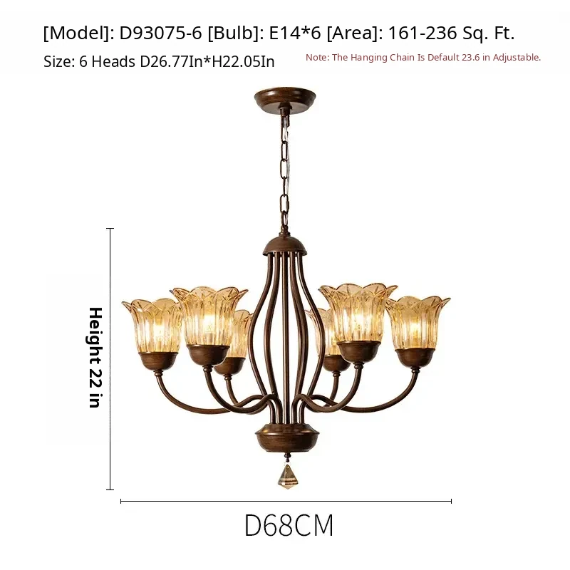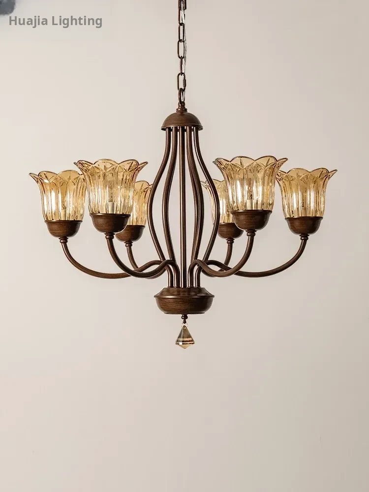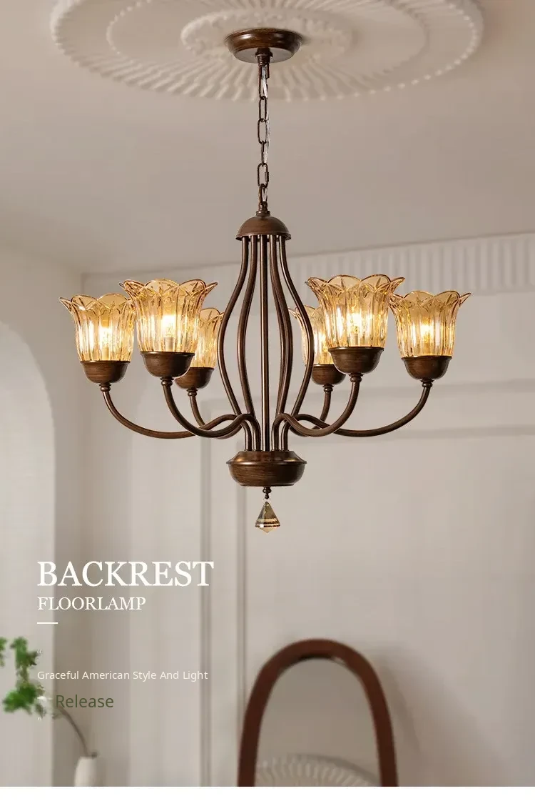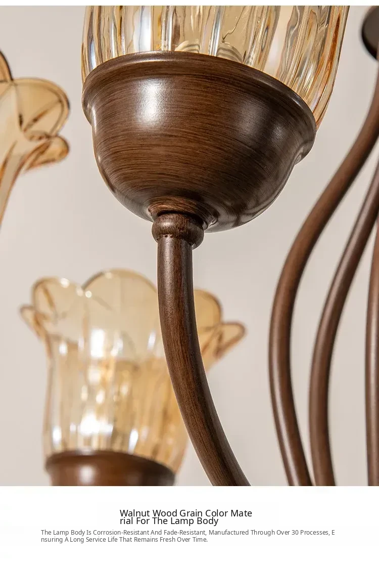 Vintage American Style Chandelier - Elegant Walnut Wood and Glass Lighting for Living Room, Dining Room, and Bedroom - Chic French Antique Design