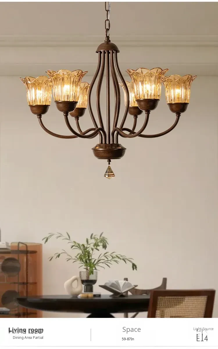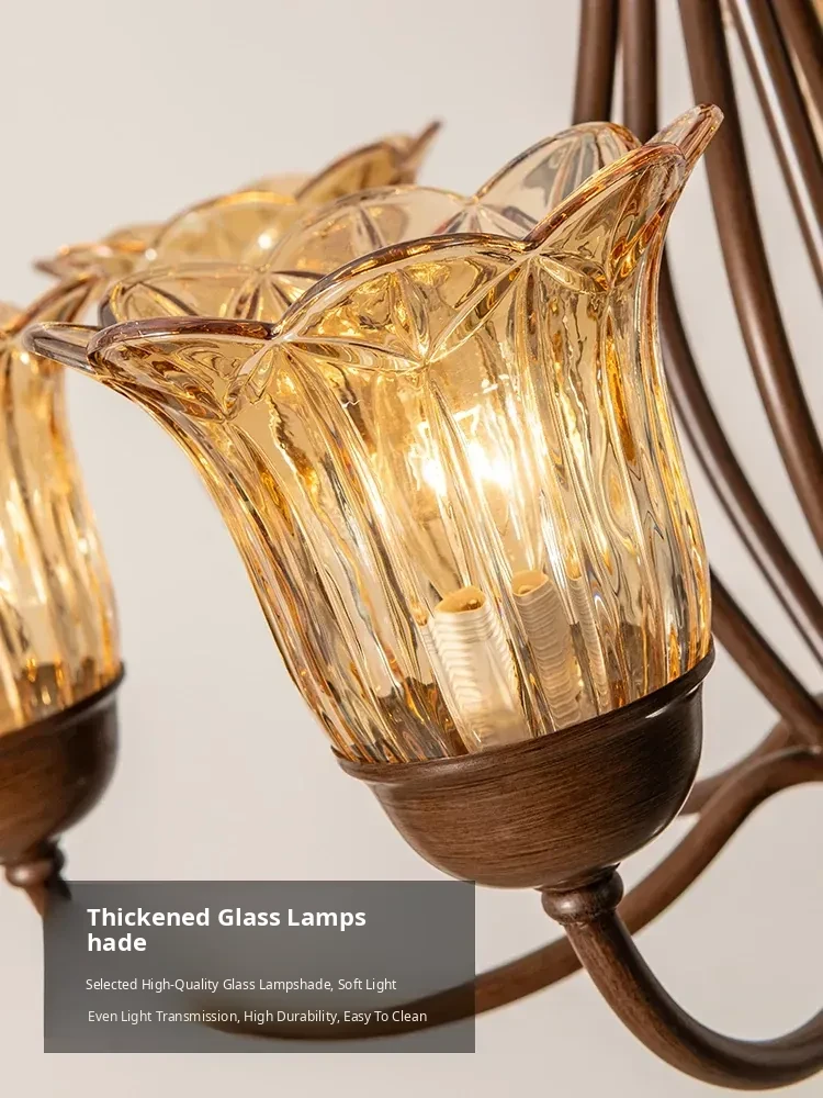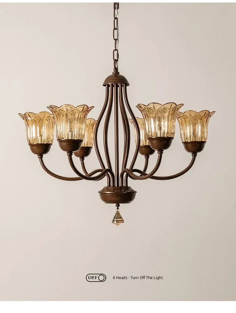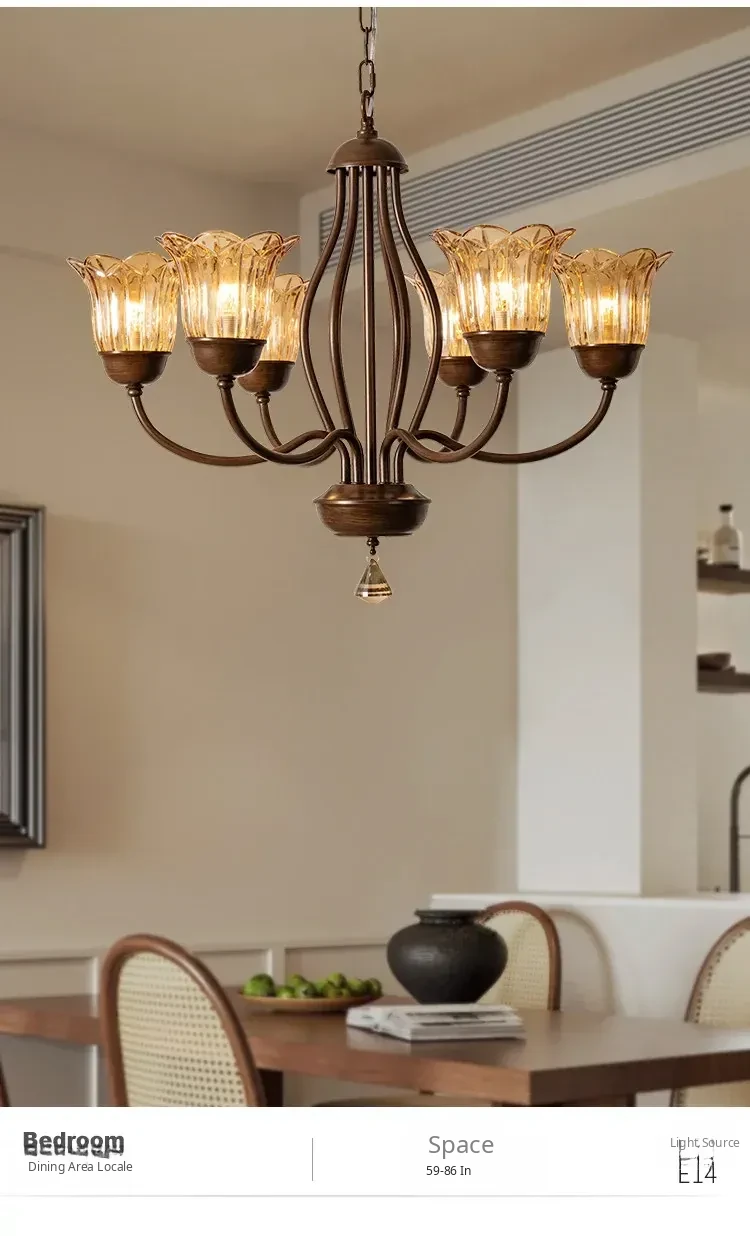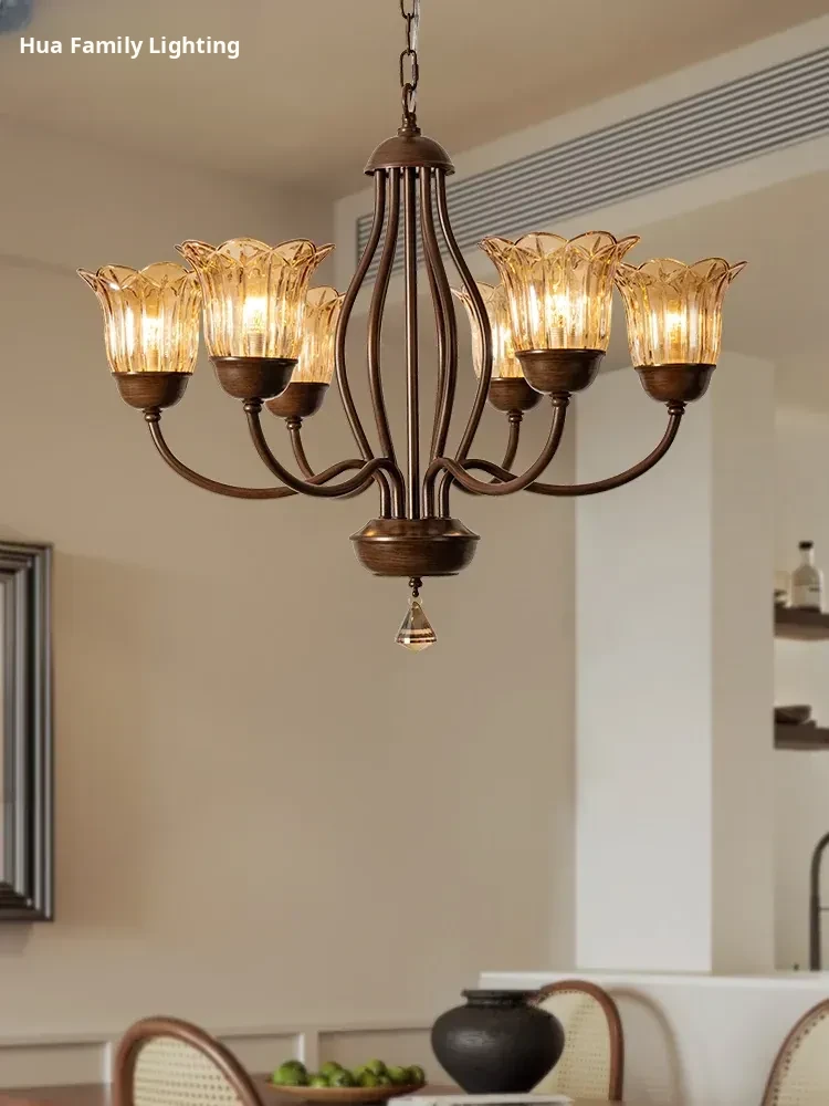 Vintage American Style Chandelier - Elegant Walnut Wood and Glass Lighting for Living Room, Dining Room, and Bedroom - Chic French Antique Design