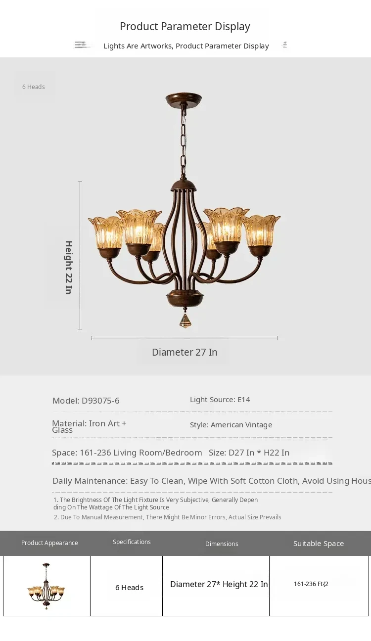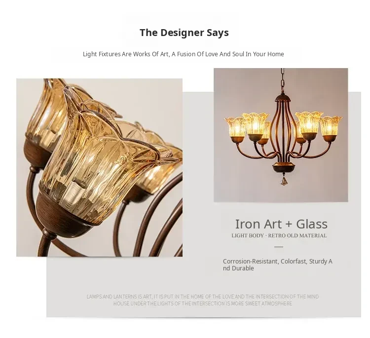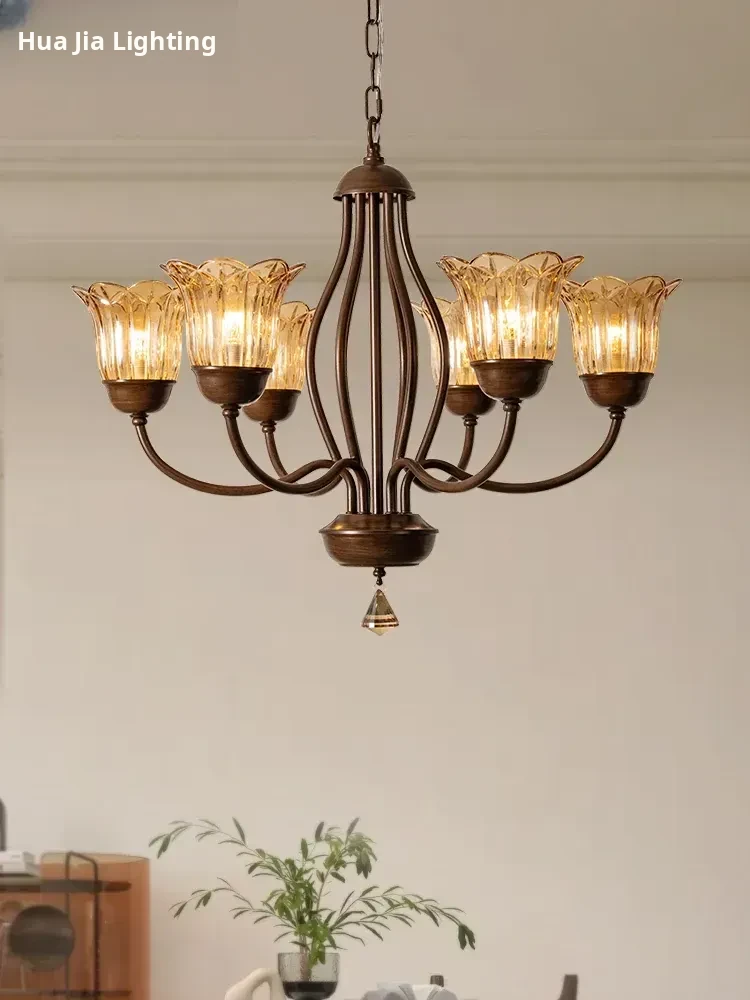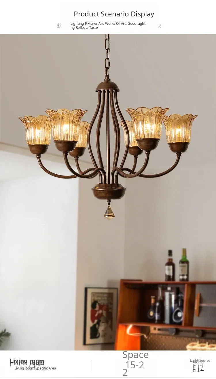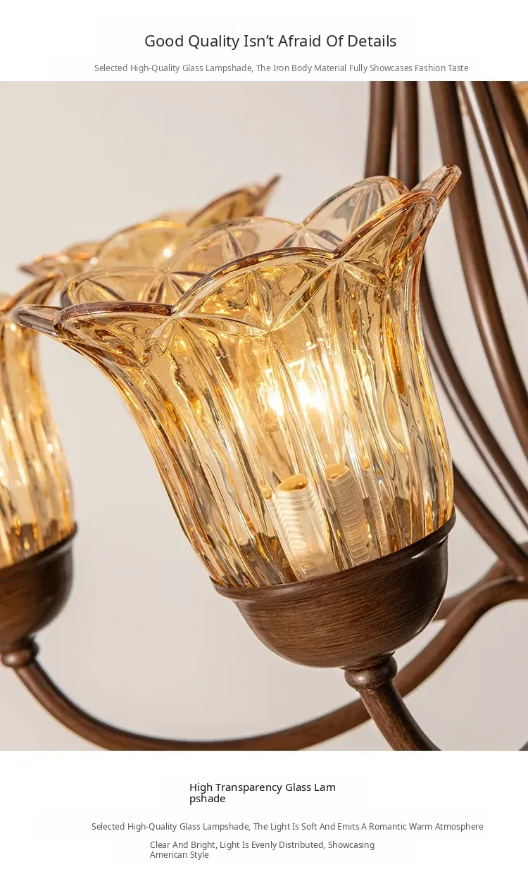 Vintage American Style Chandelier - Elegant Walnut Wood and Glass Lighting for Living Room, Dining Room, and Bedroom - Chic French Antique Design