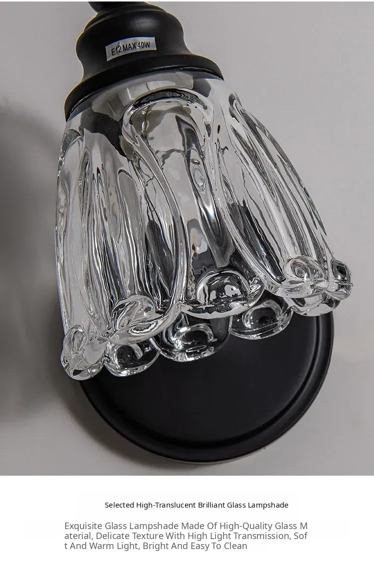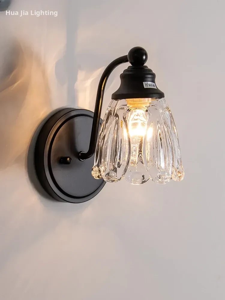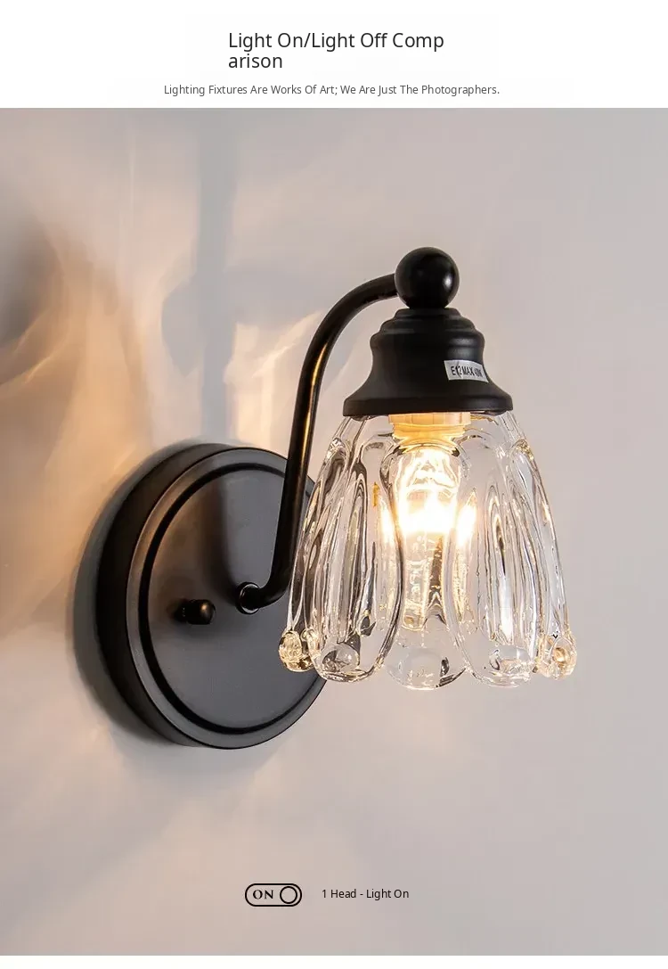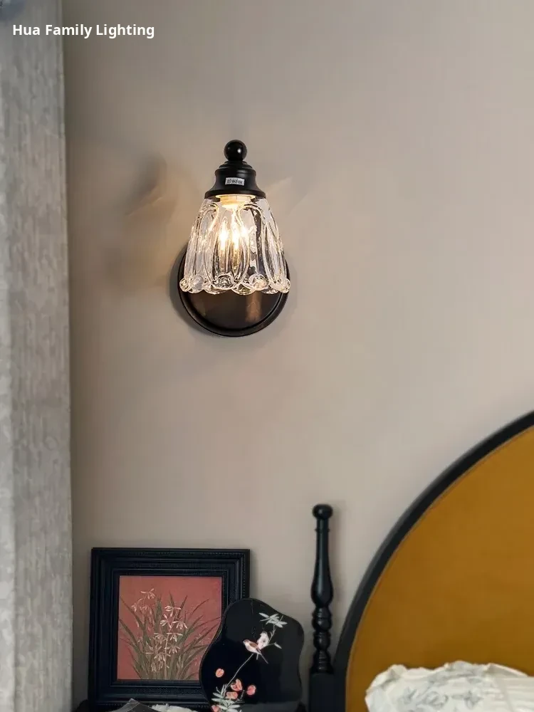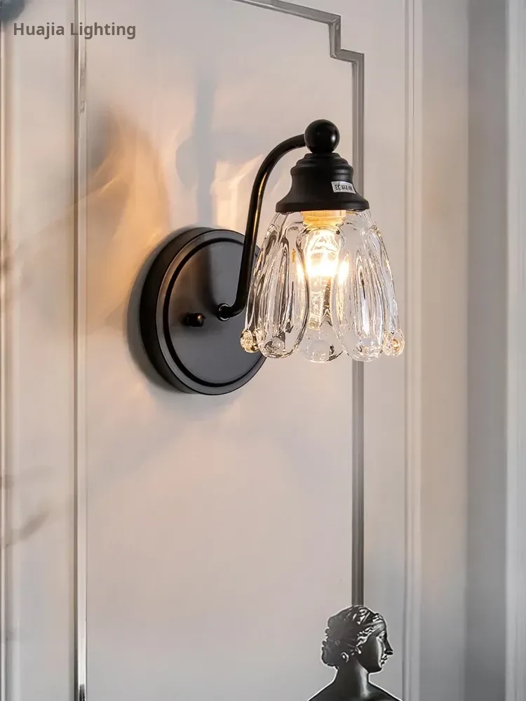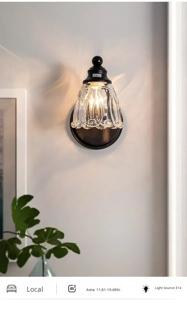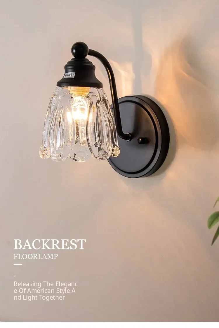 Vintage American Wall Sconce - French Antique Style Bellflower Design, Elegant Black Wall Light for Bedroom, Headboard, Hallway, and Balcony