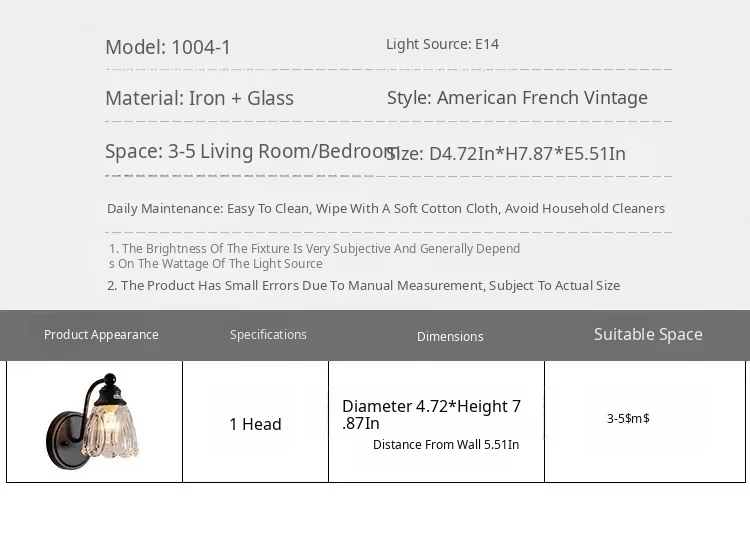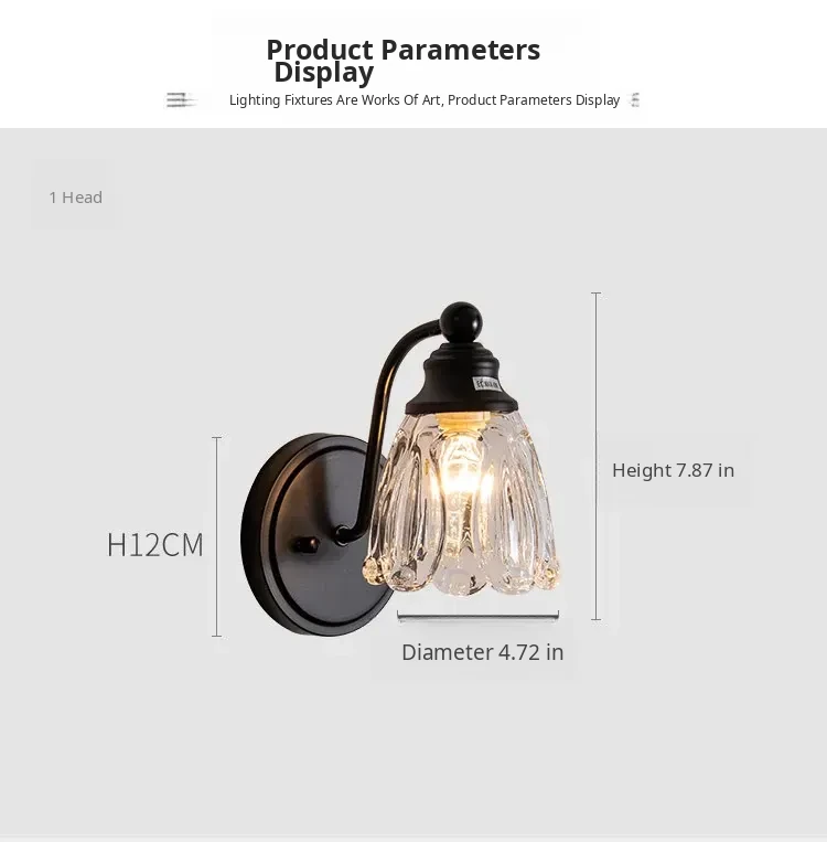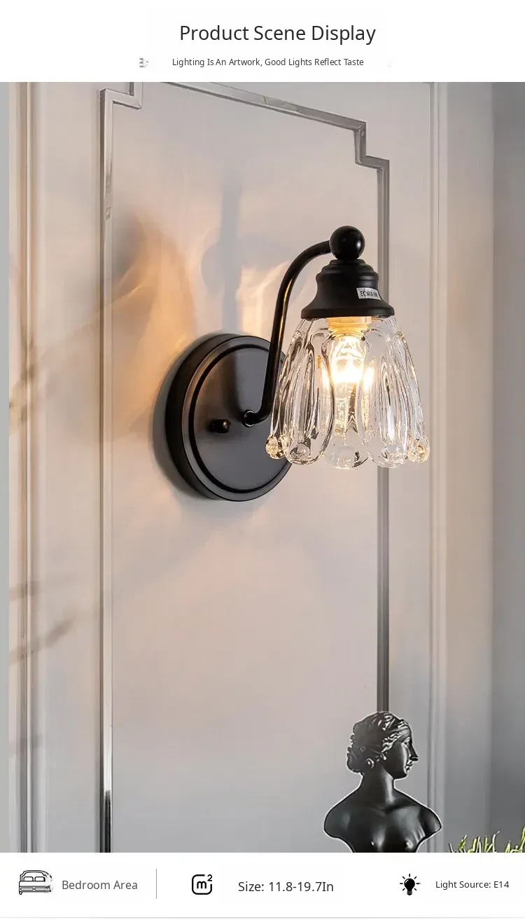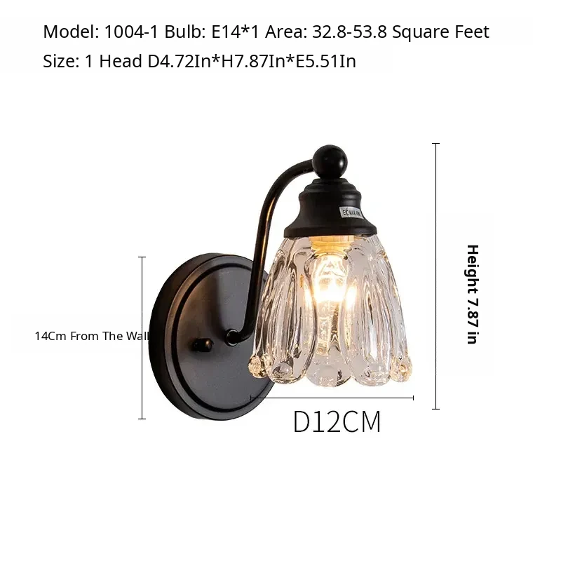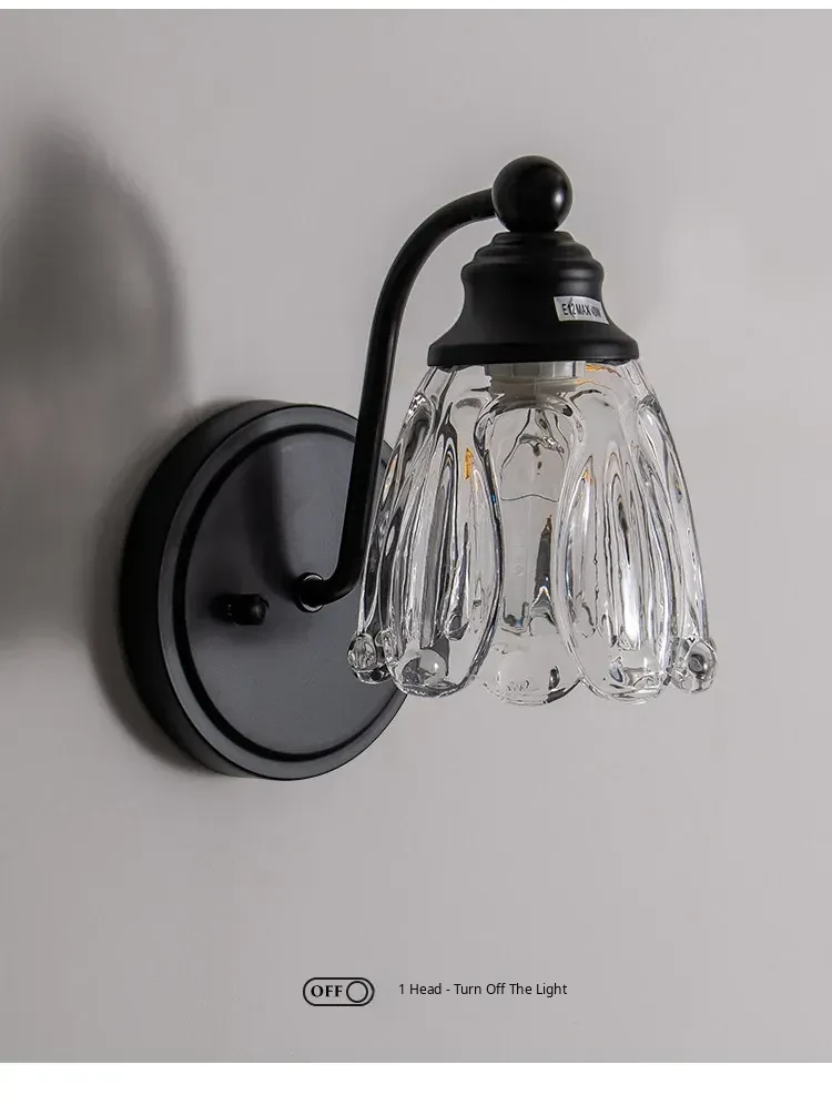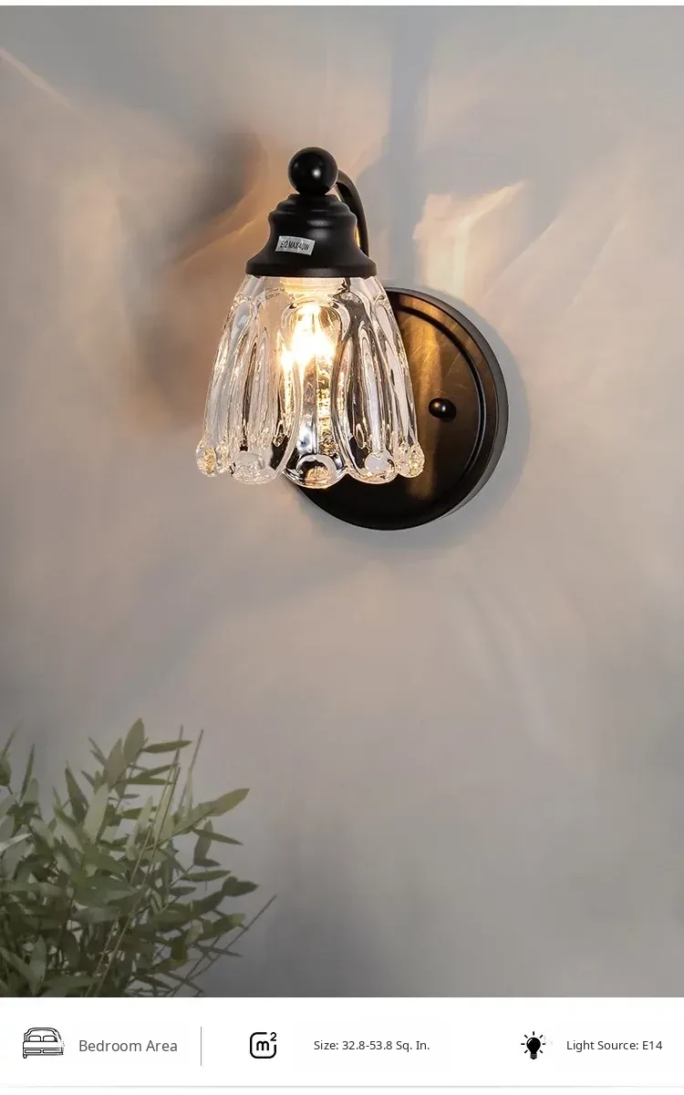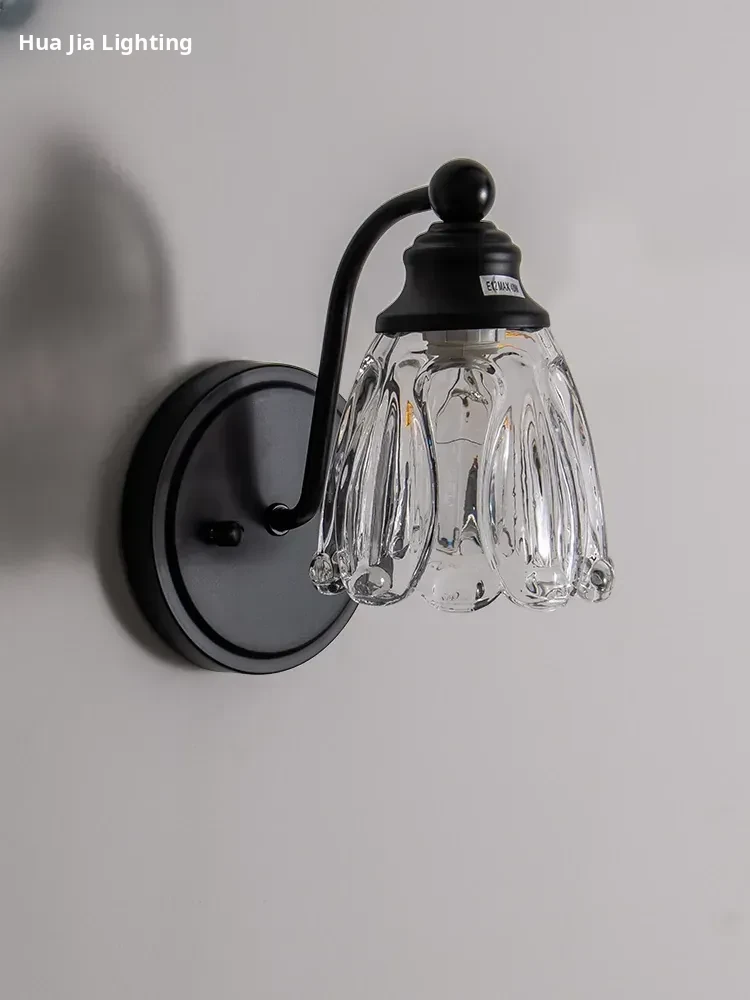 Vintage American Wall Sconce - French Antique Style Bellflower Design, Elegant Black Wall Light for Bedroom, Headboard, Hallway, and Balcony