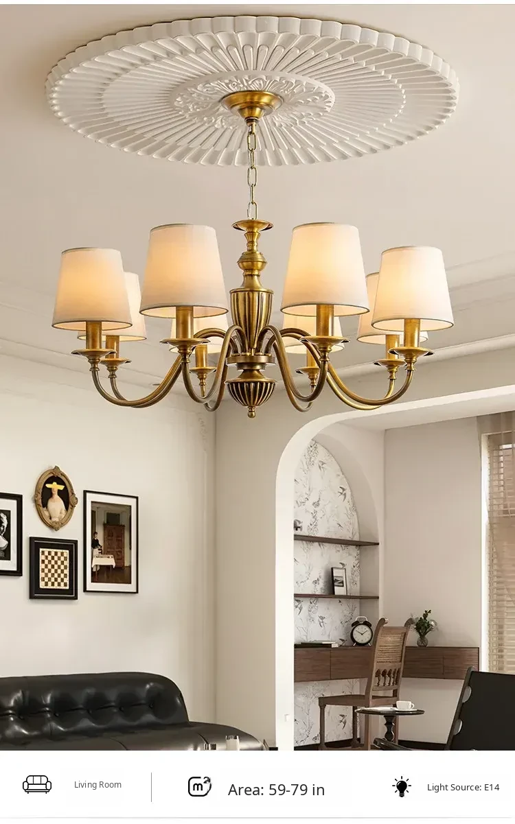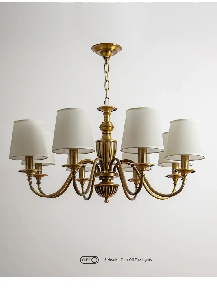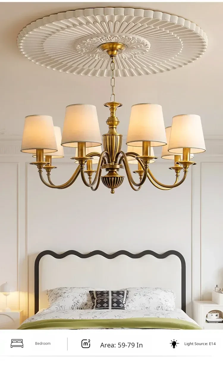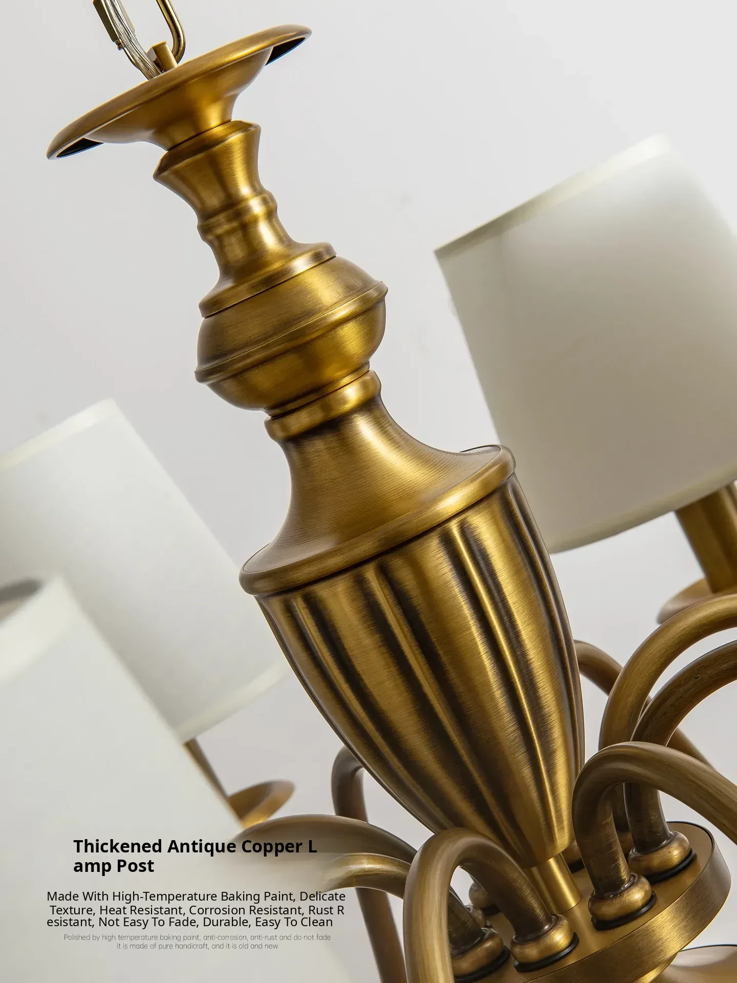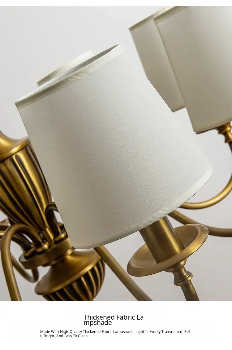 Vintage French Chandelier - Elegant All-Copper Design with American Fabric Shade for Luxurious Atmosphere in Living Room, Bedroom, and Dining Room