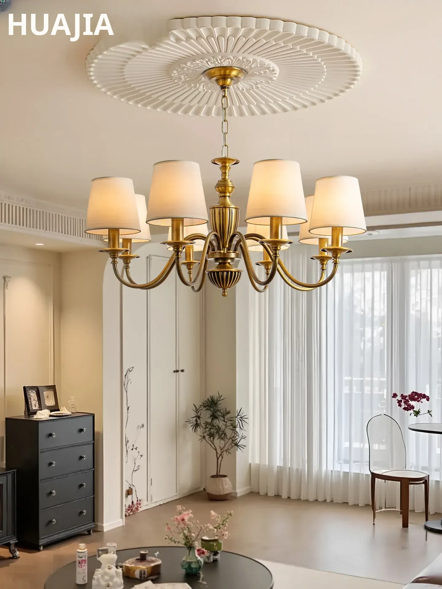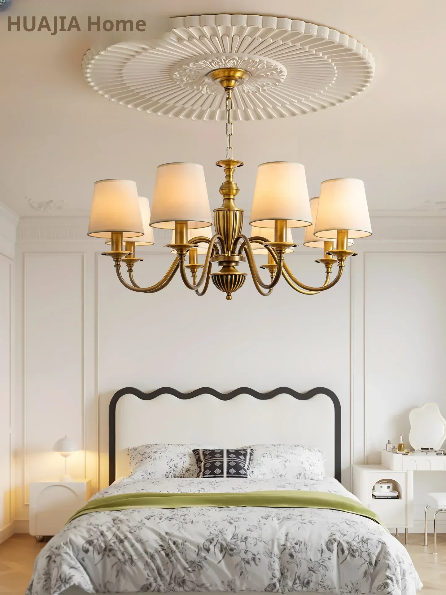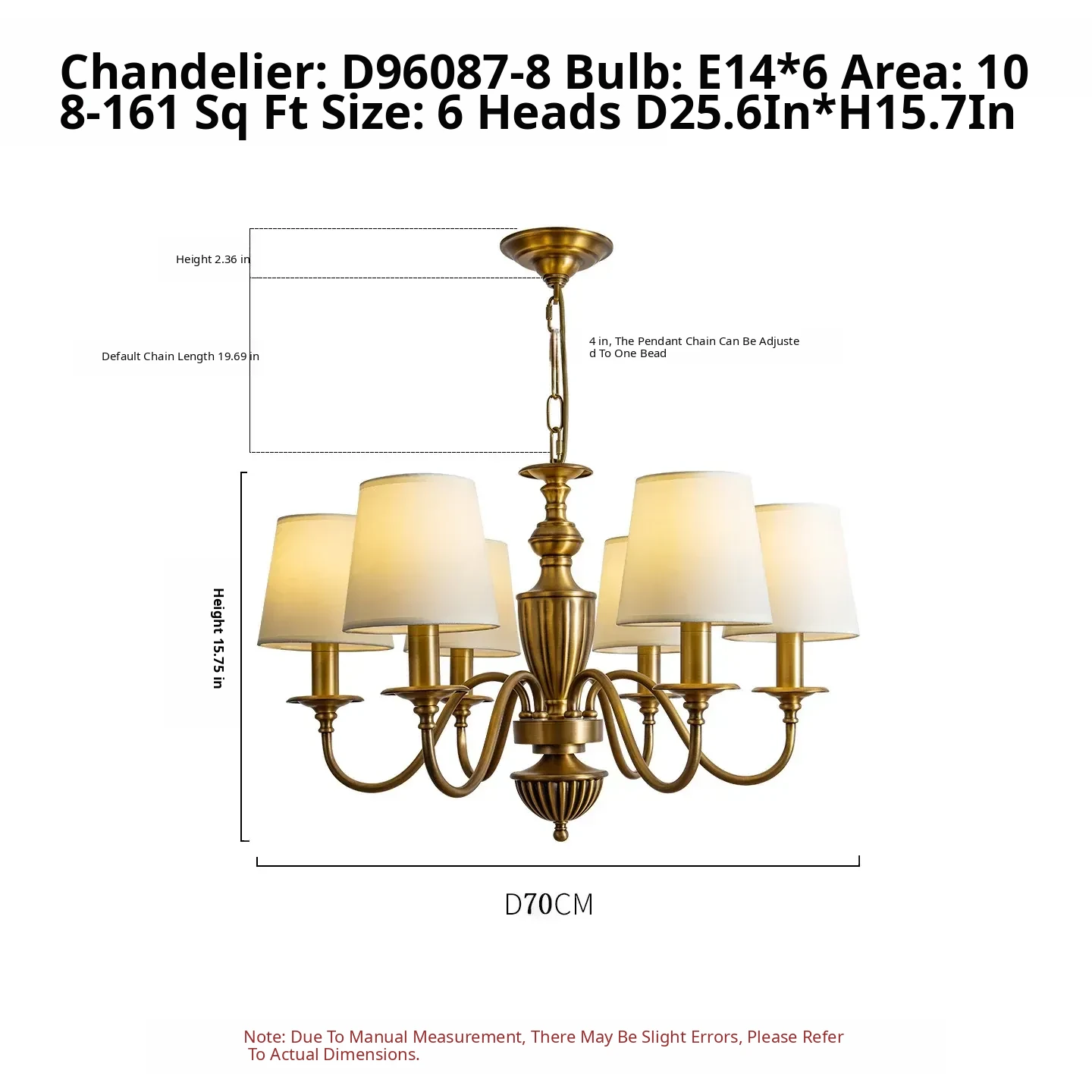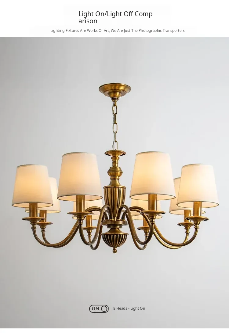Vintage French Chandelier - Elegant All-Copper Design with American Fabric Shade for Luxurious Atmosphere in Living Room, Bedroom, and Dining Room