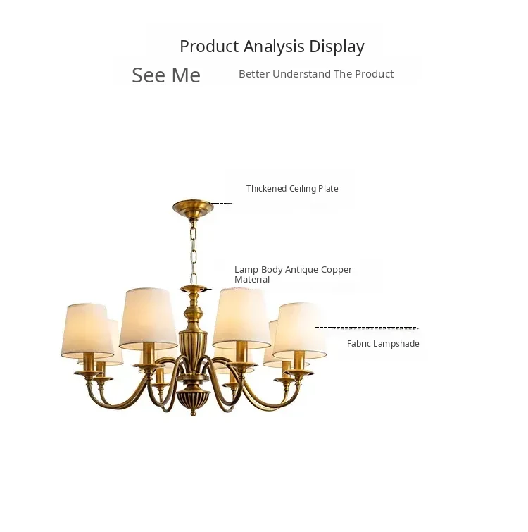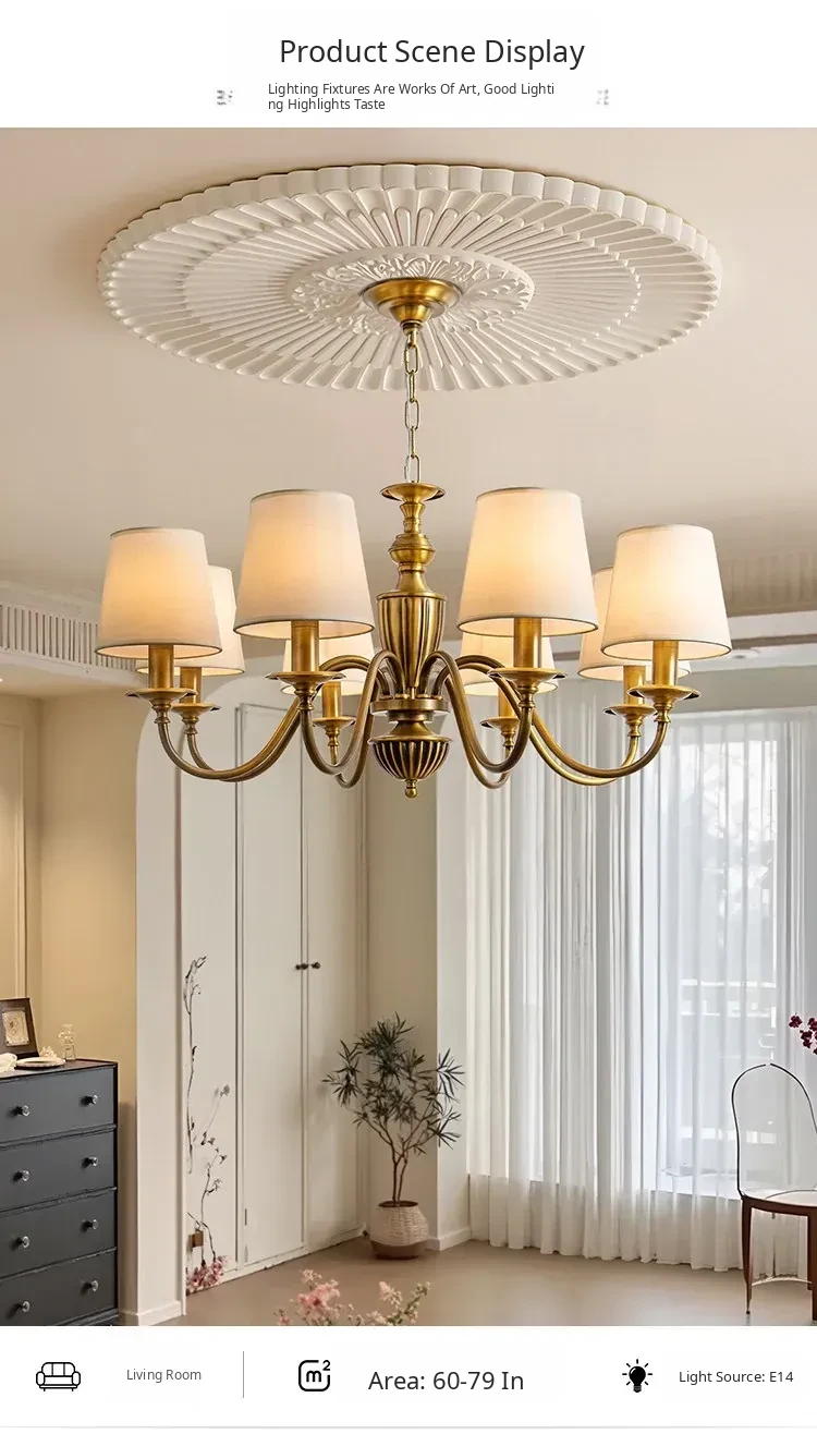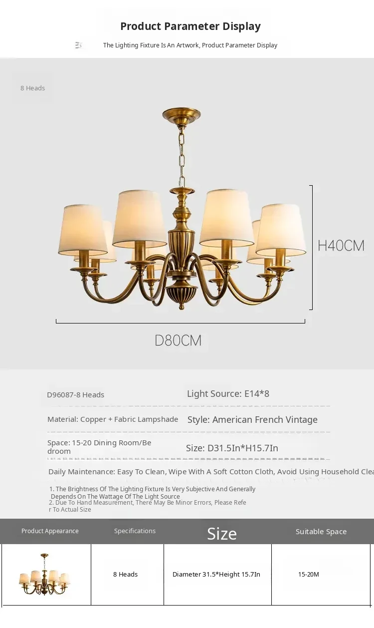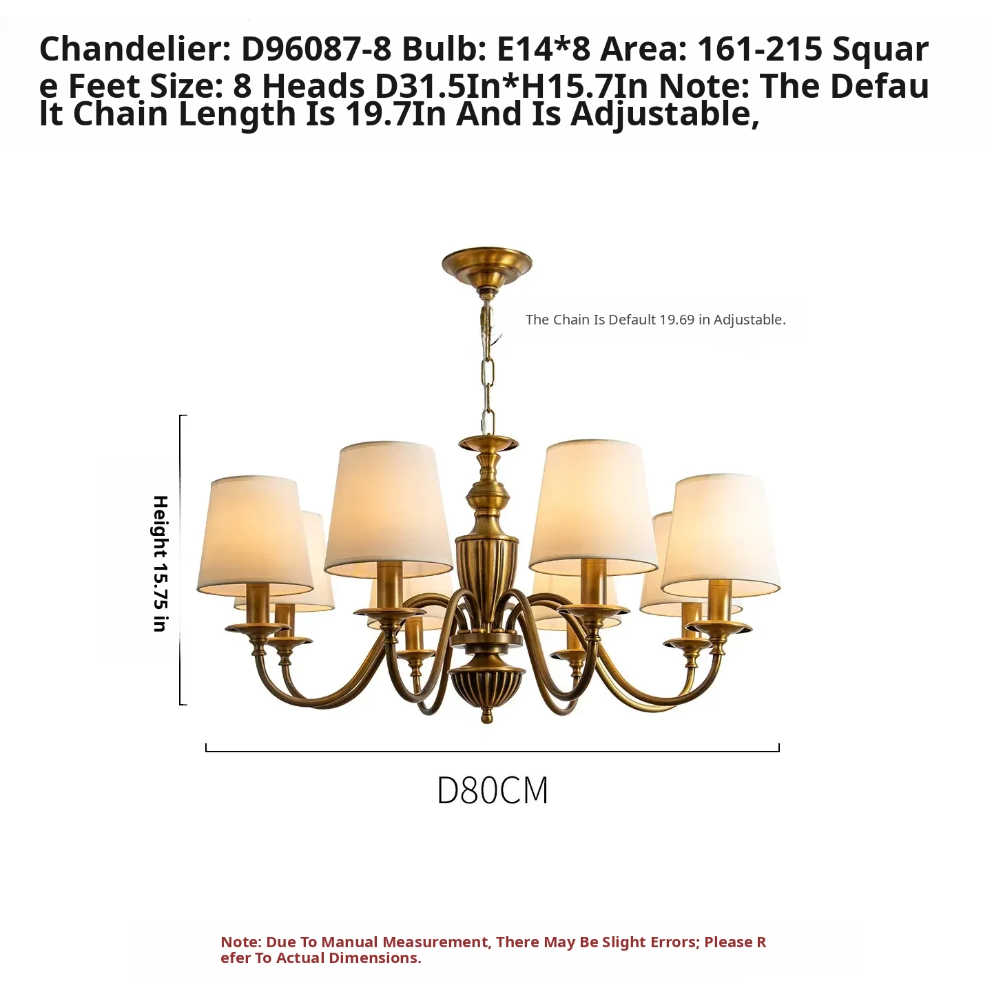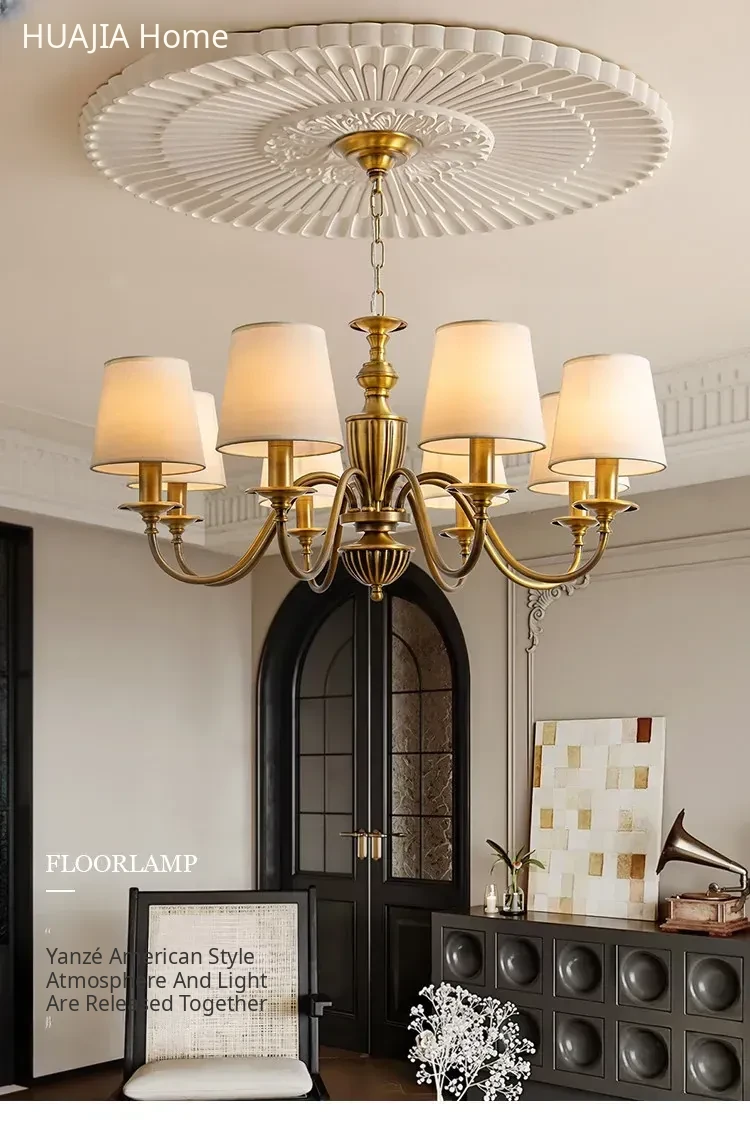 Vintage French Chandelier - Elegant All-Copper Design with American Fabric Shade for Luxurious Atmosphere in Living Room, Bedroom, and Dining Room