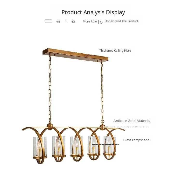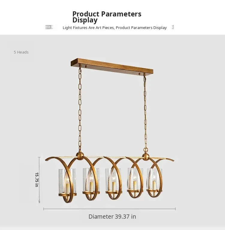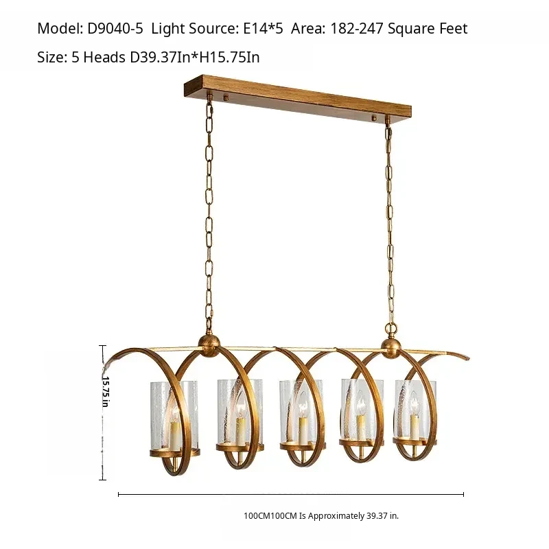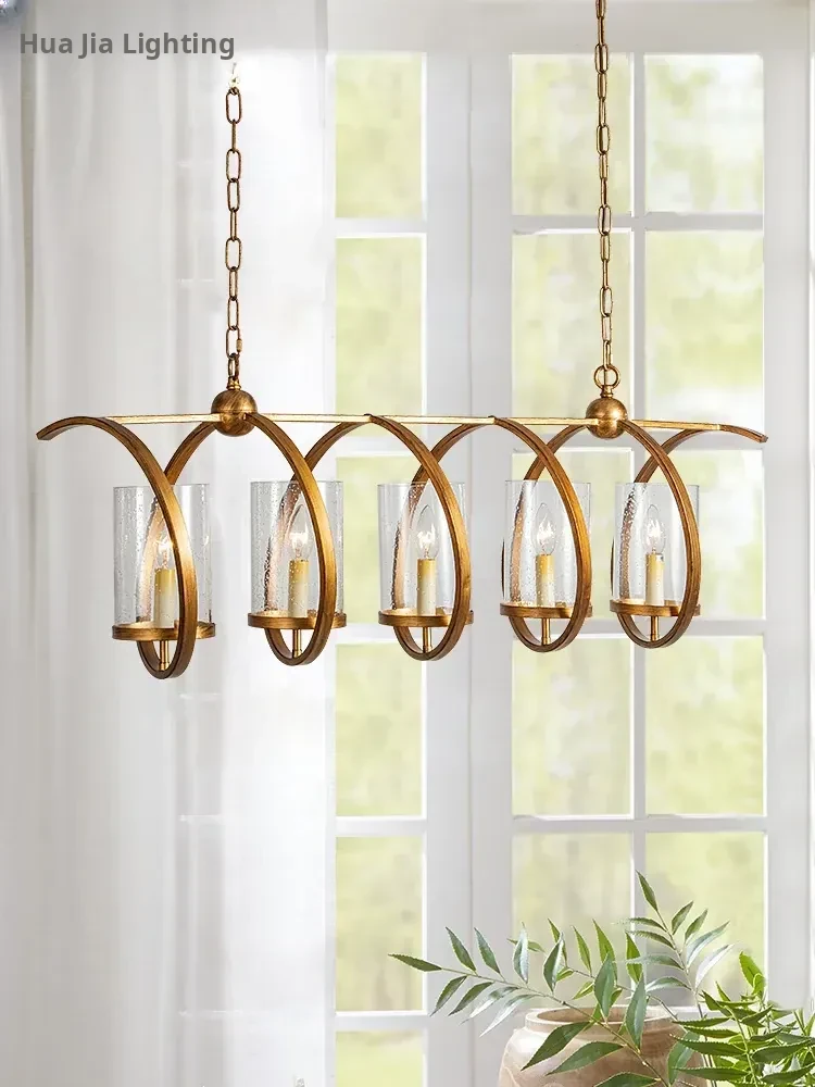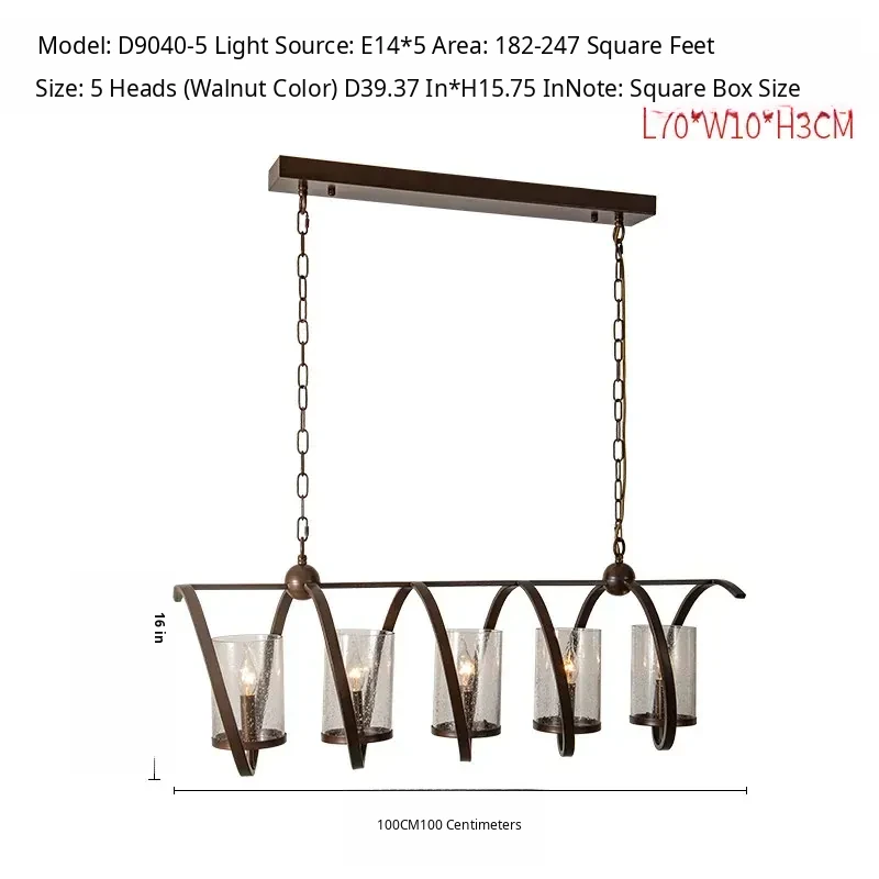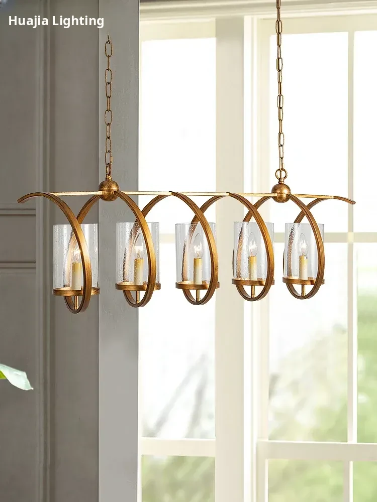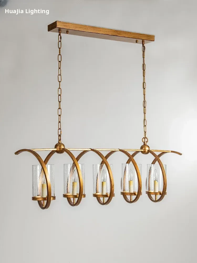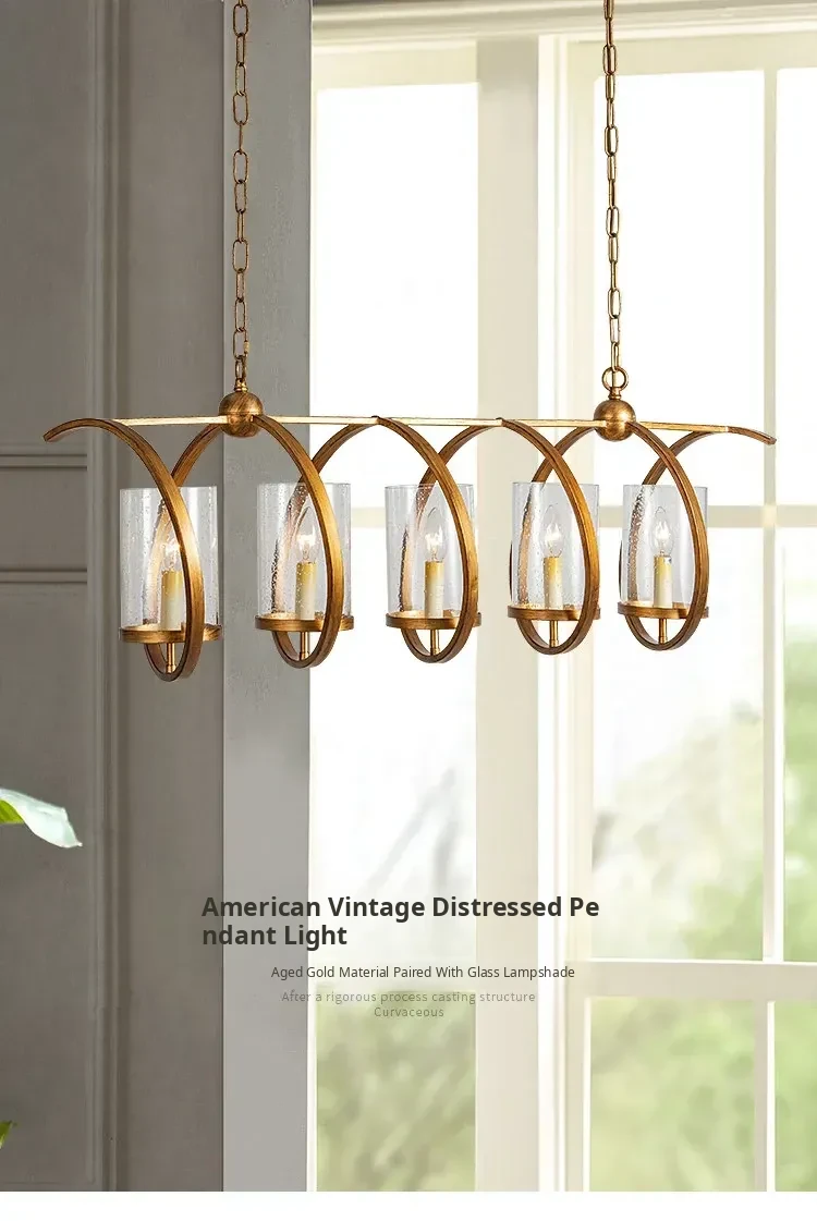 Vintage Rectangular American Restaurant Pendant Light - French Antique Creative Designer Dining Room Fixture for Commercial Use